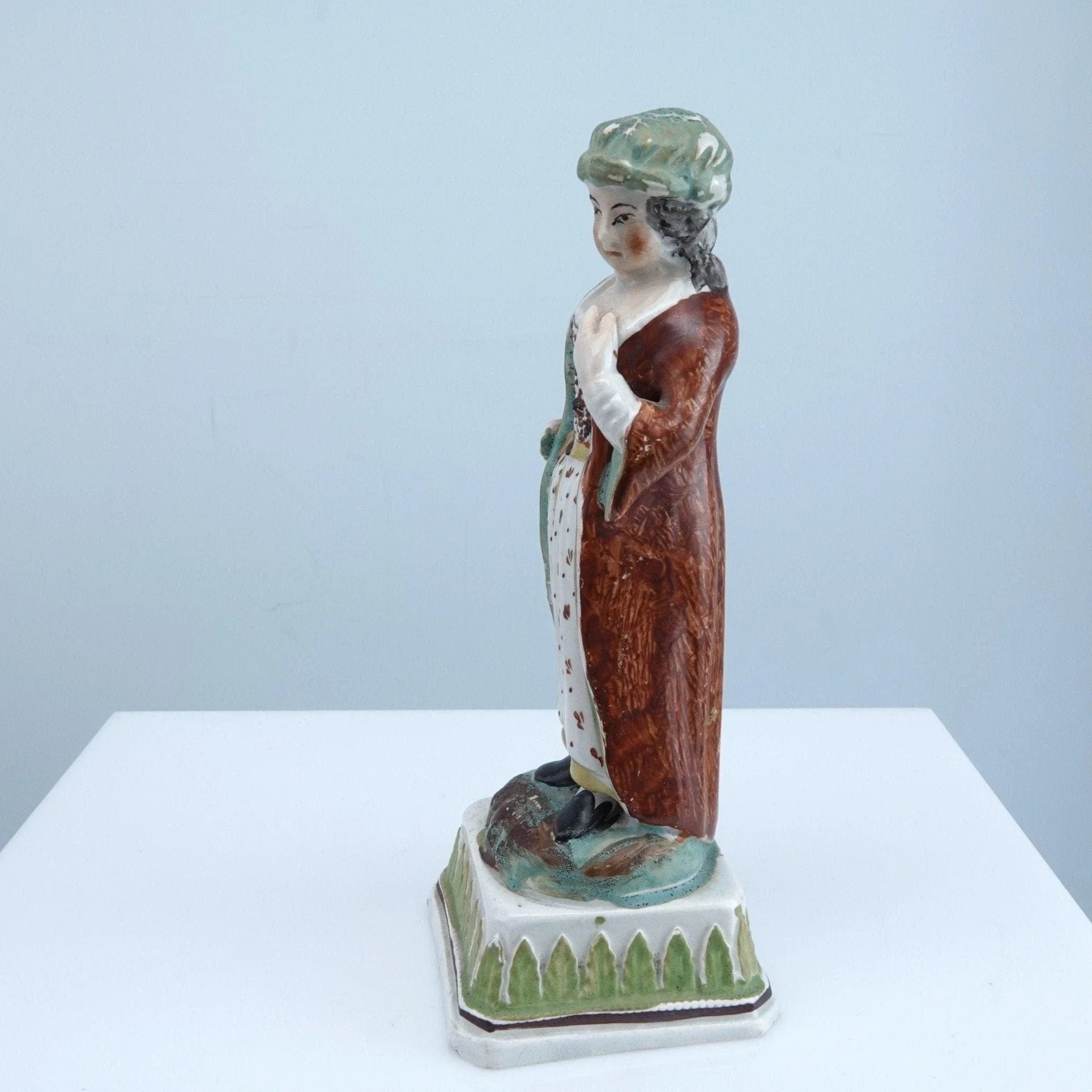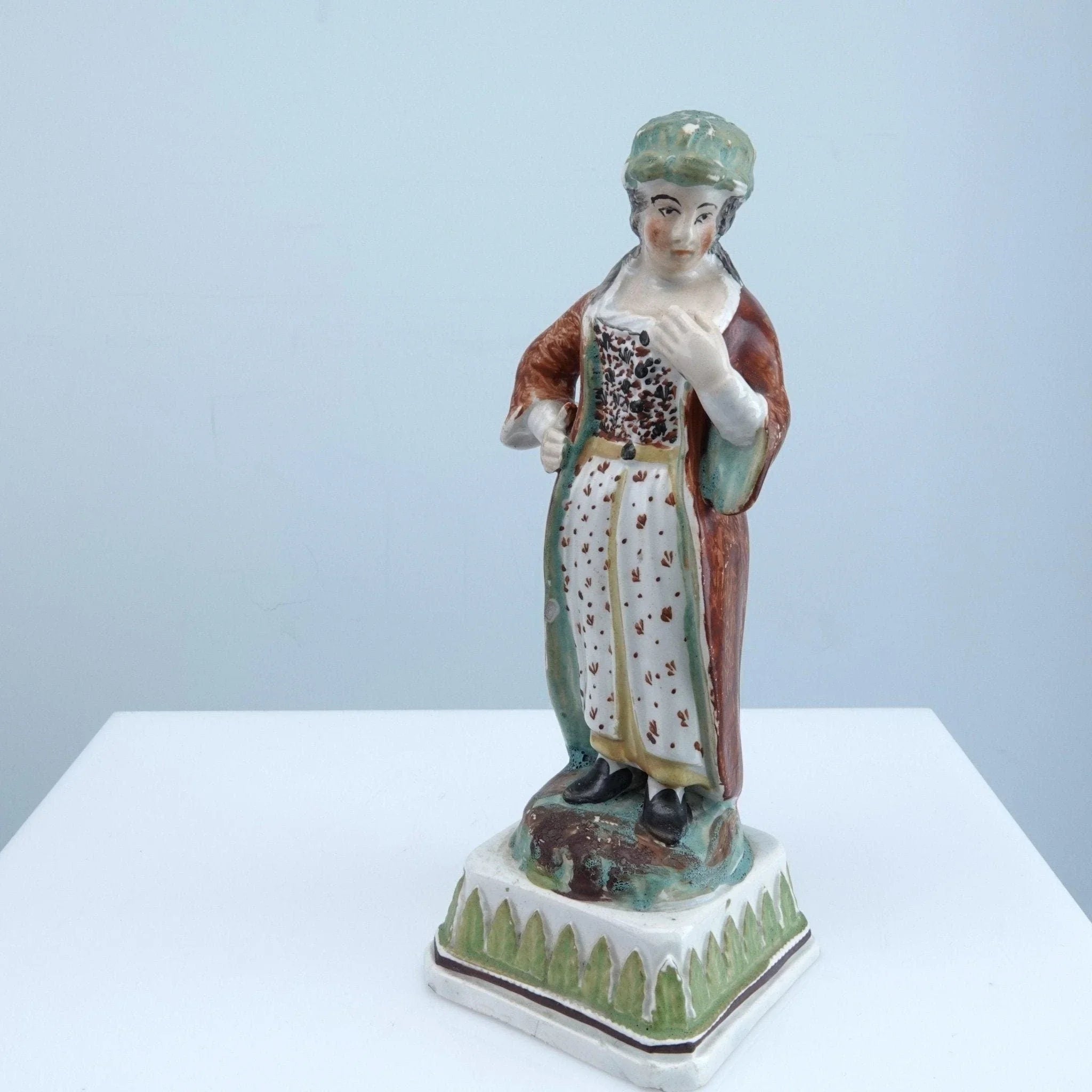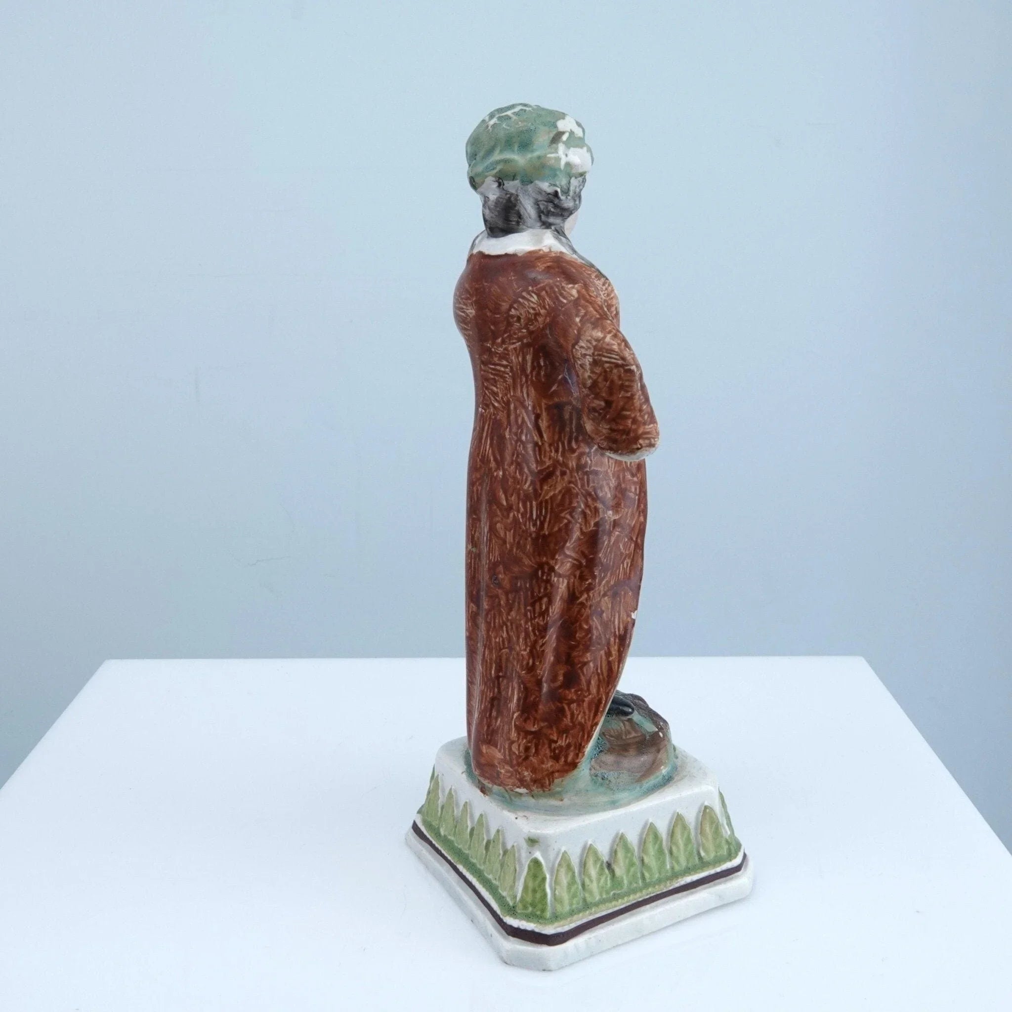 c1820 Staffordshire Pearlware Figure Girl 6.5" tall with 2.5" square base