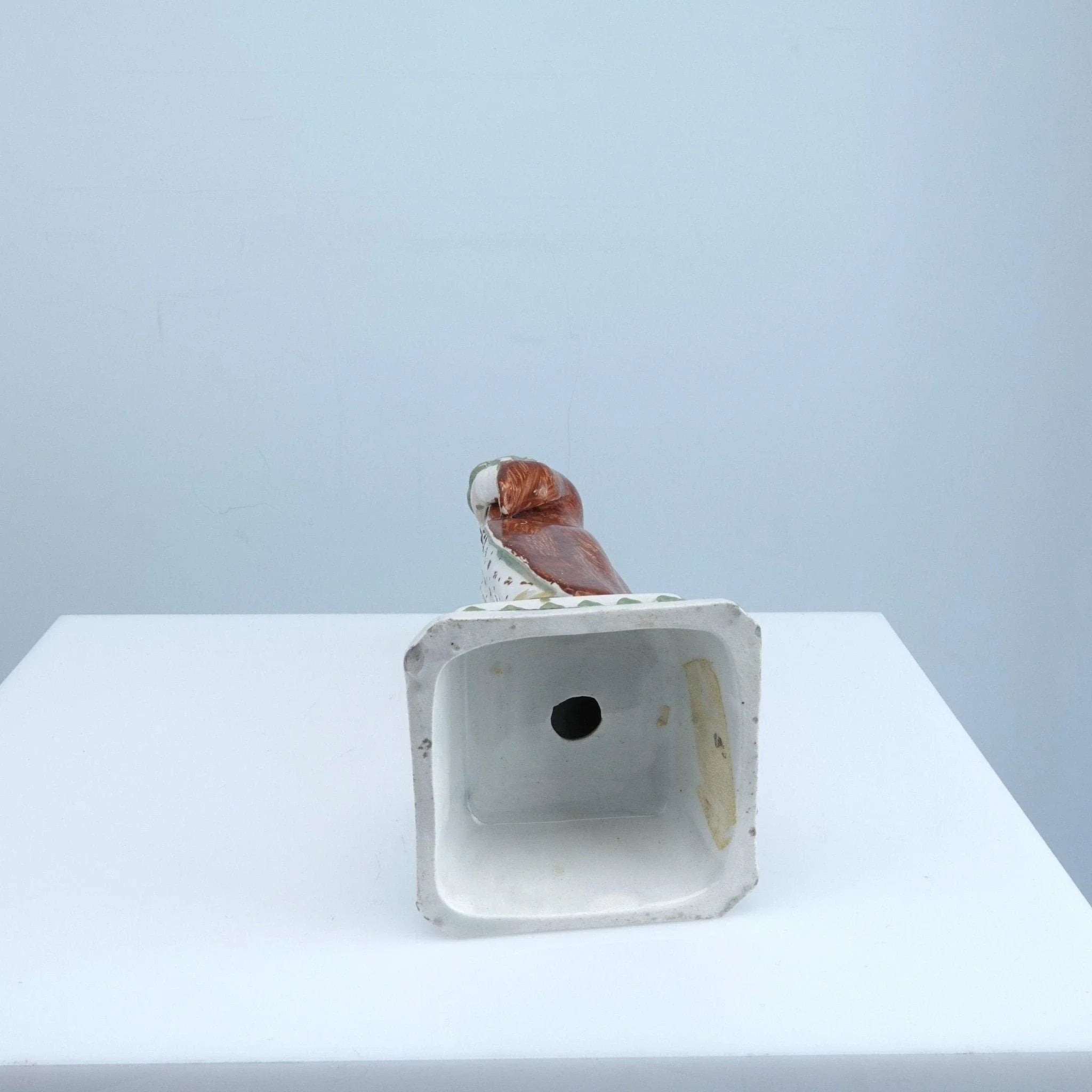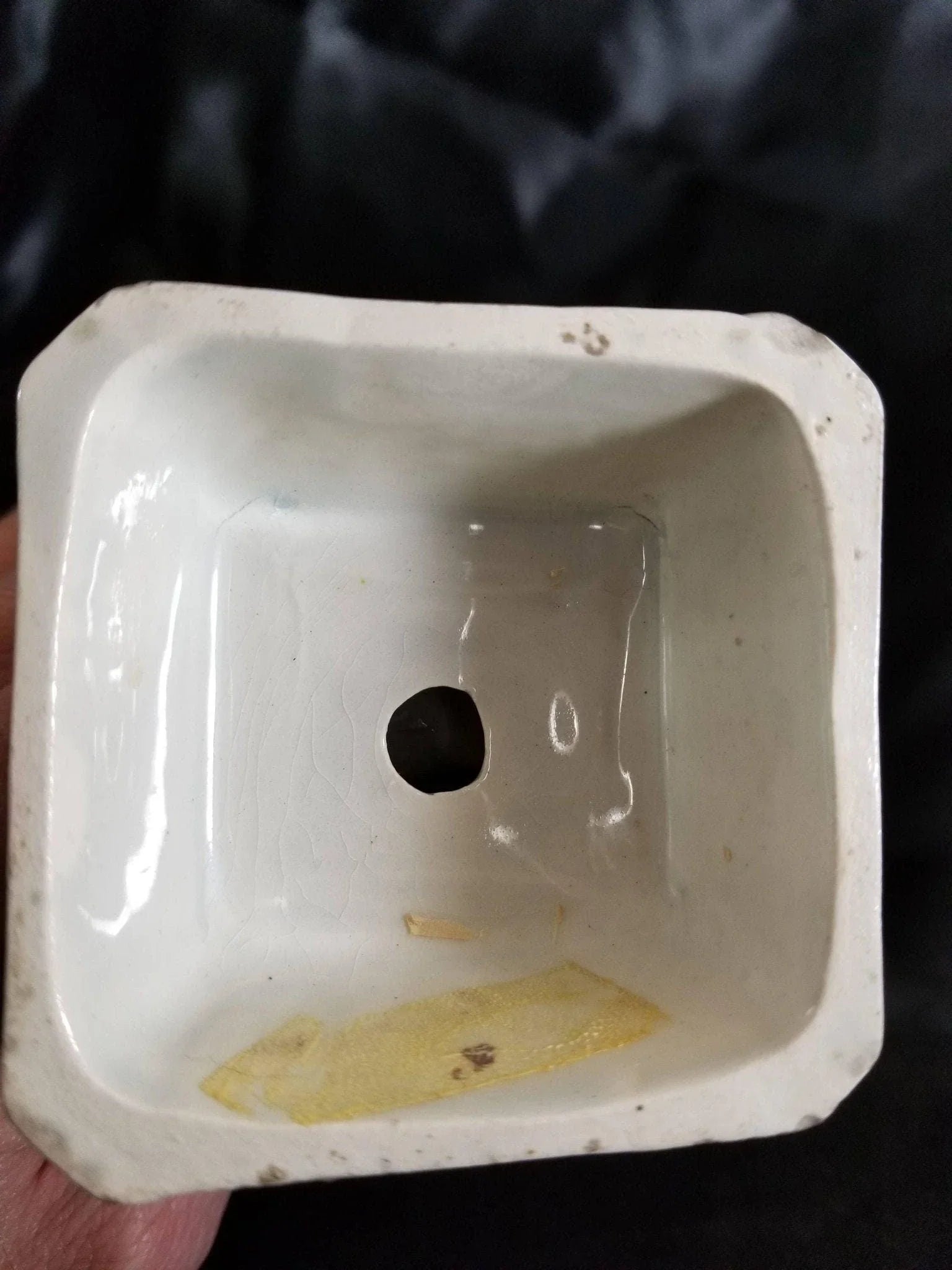 c1820 Staffordshire Pearlware Figure Girl 6.5" tall with 2.5" square base Nice<br>piece with no restorations or major damage. 2 tiny nicks on base, one small chip<br>off her dress, no cracks, some paint wear.<br>TW133