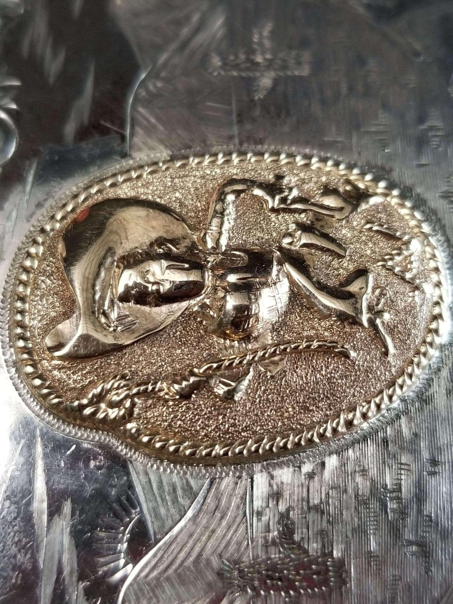 McCabe Belt Buckle Sterling & 10k Gold Cowboy with Lasso "Apple Valley Little Ne
