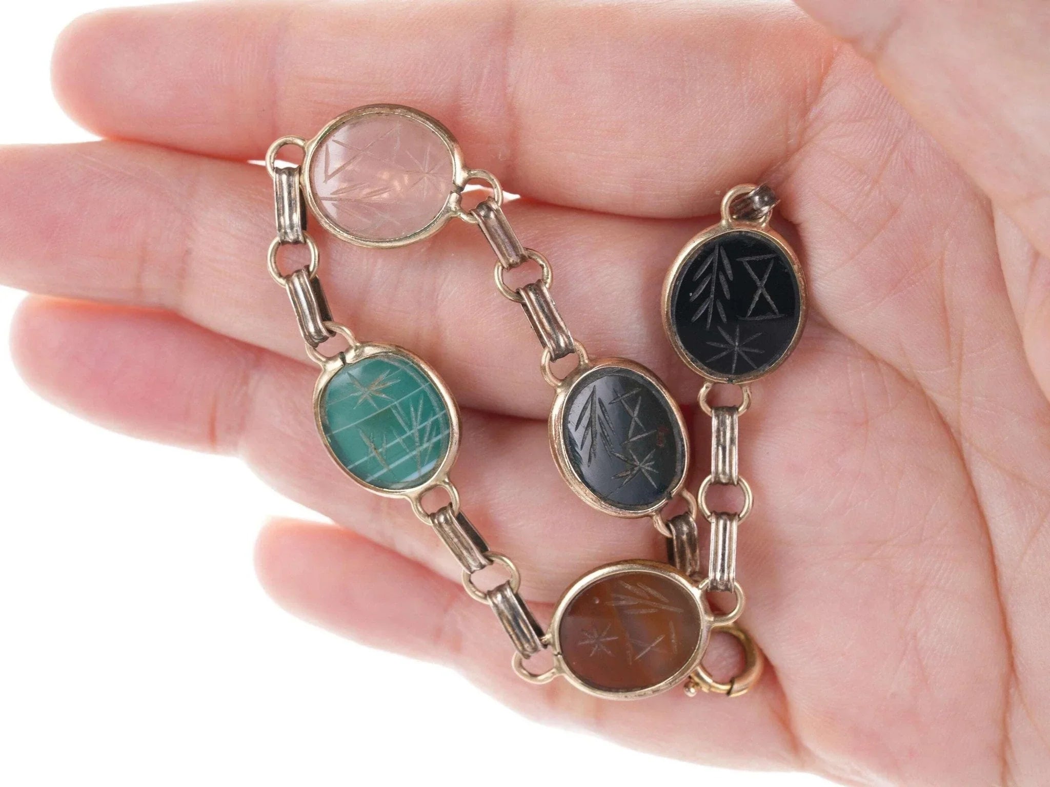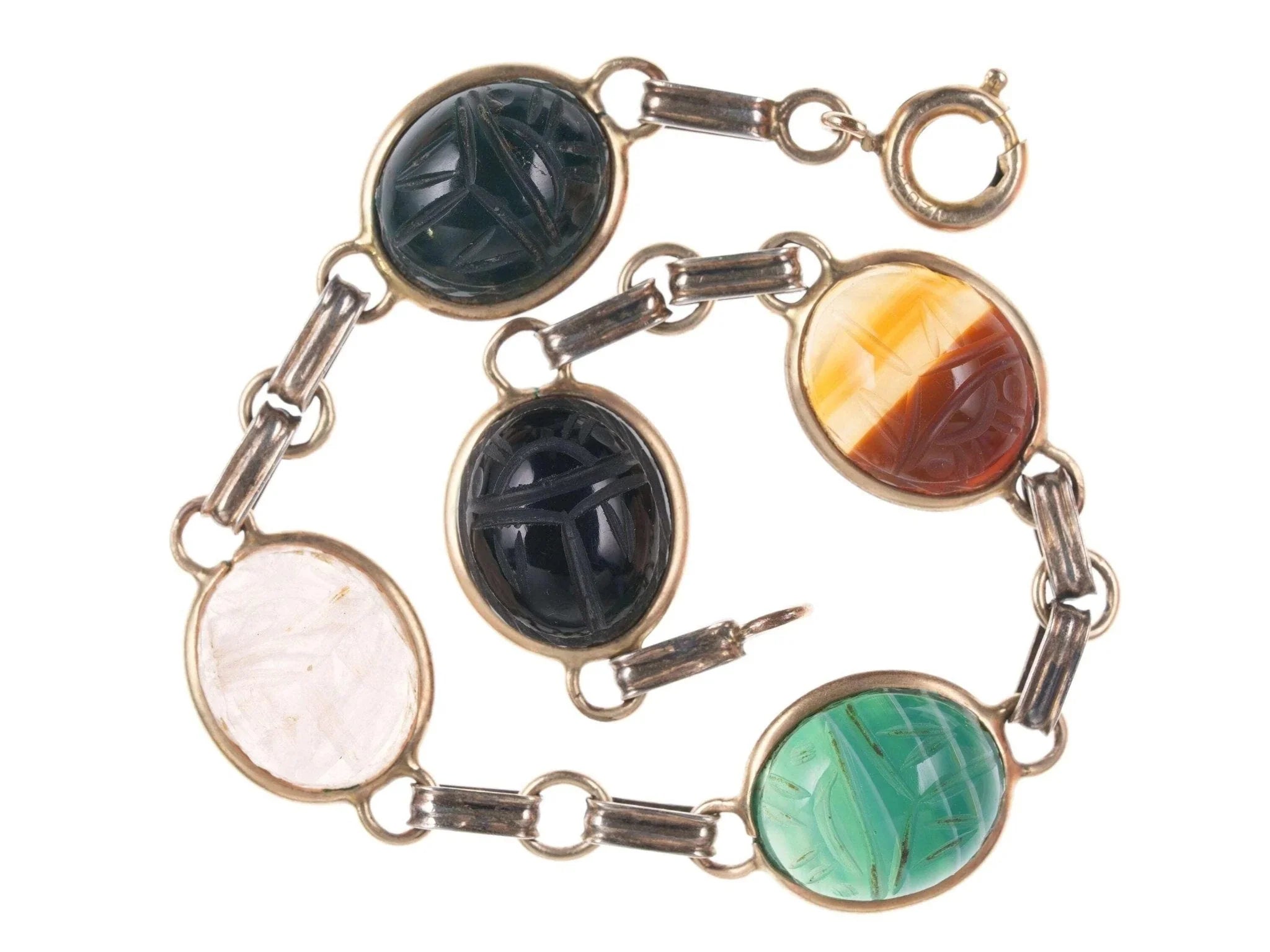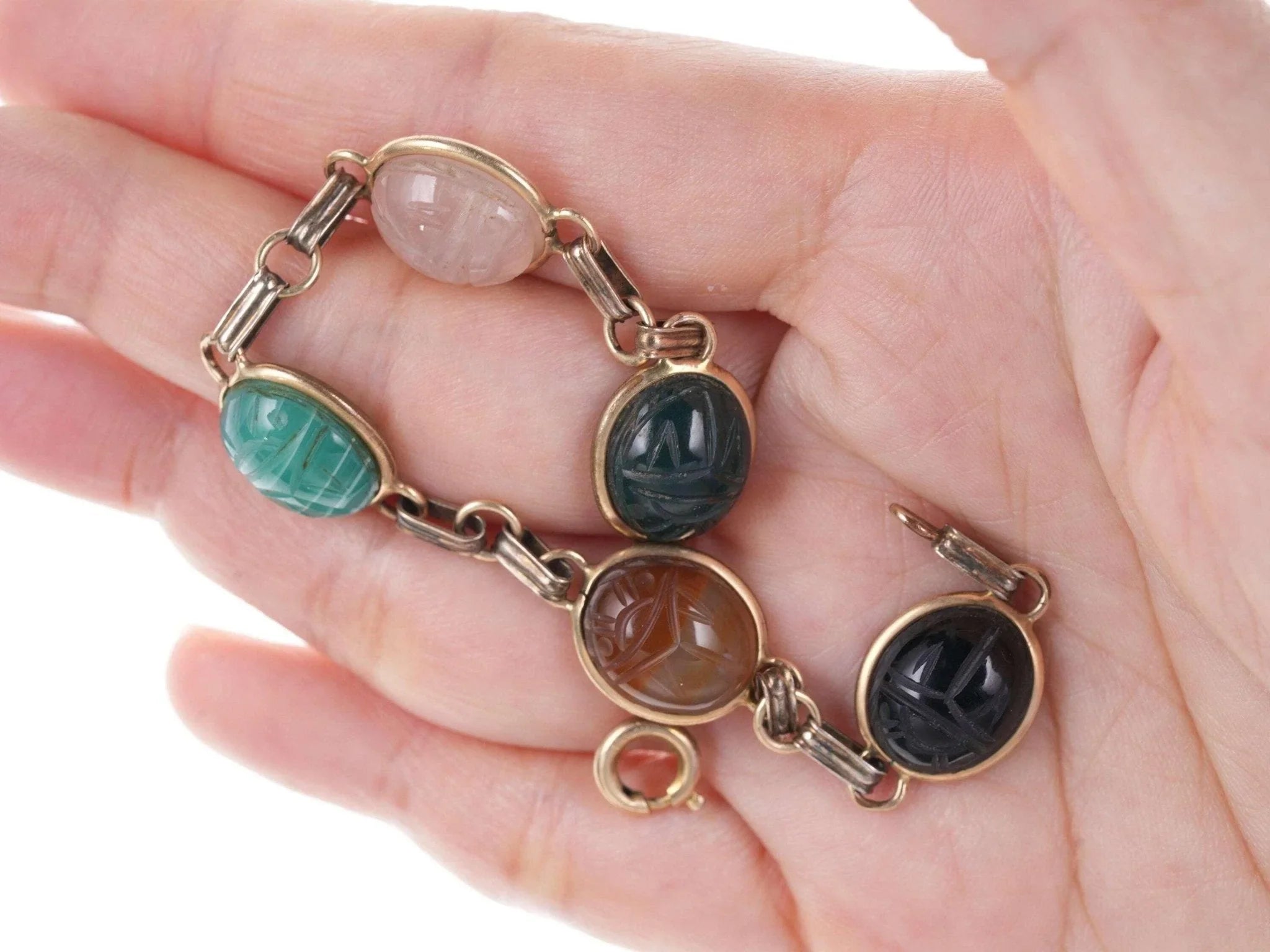 Vintage Egyptian Revival Gold Filled Scarab Bracelet with Semiprecious stones q