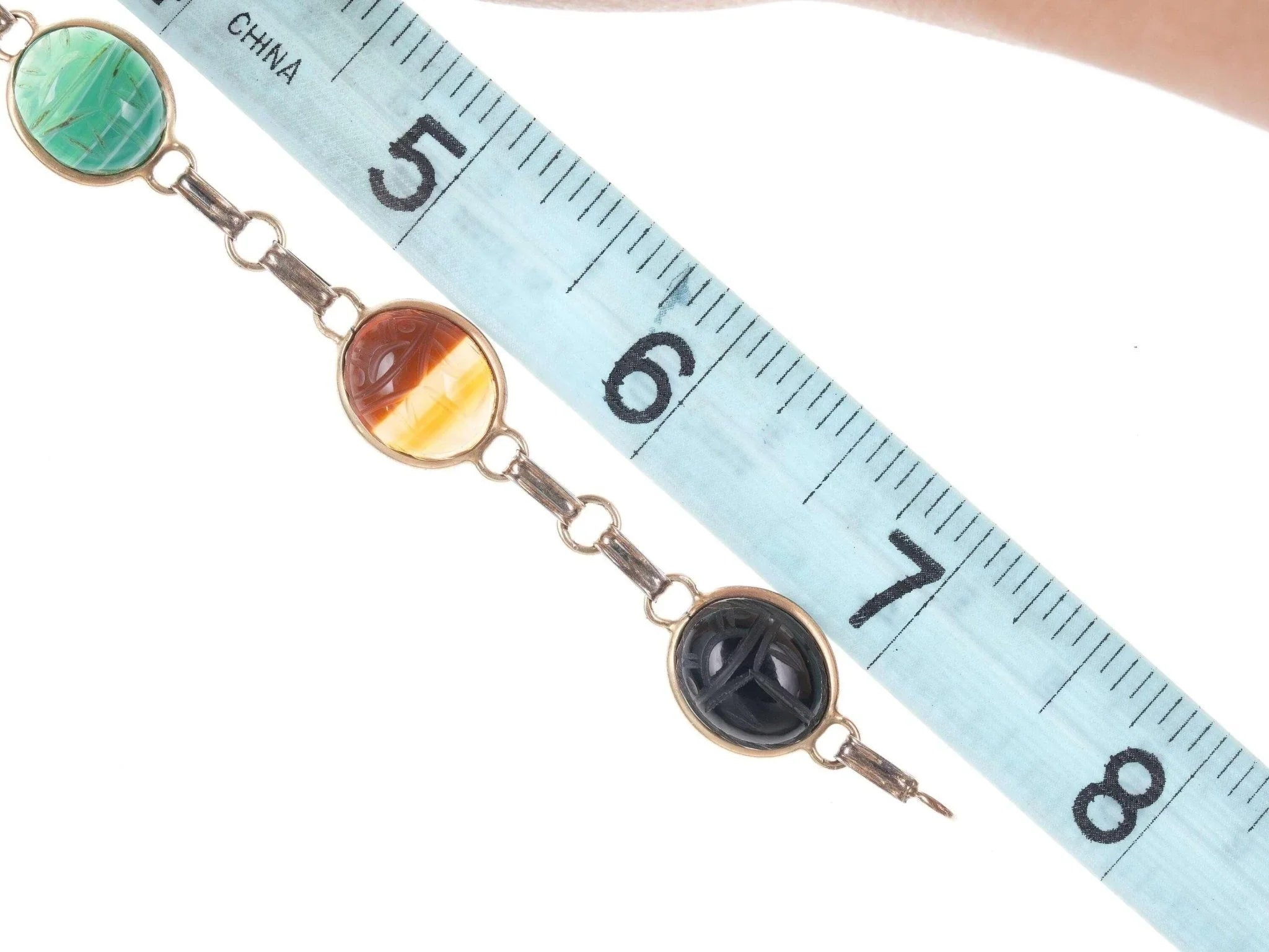 Vintage Egyptian Revival Gold Filled Scarab Bracelet with Semiprecious stones. Great piece mid 20th century with no issues. 10.5 grams