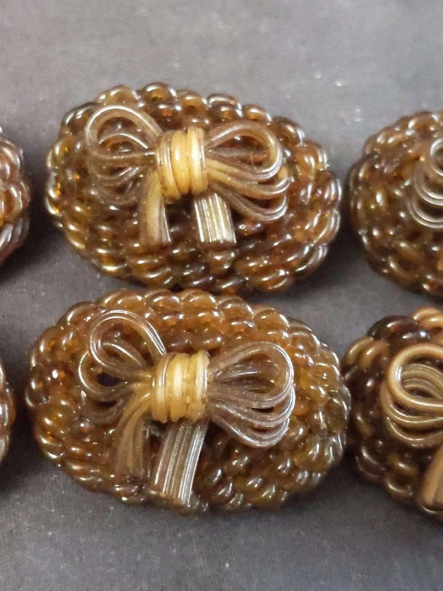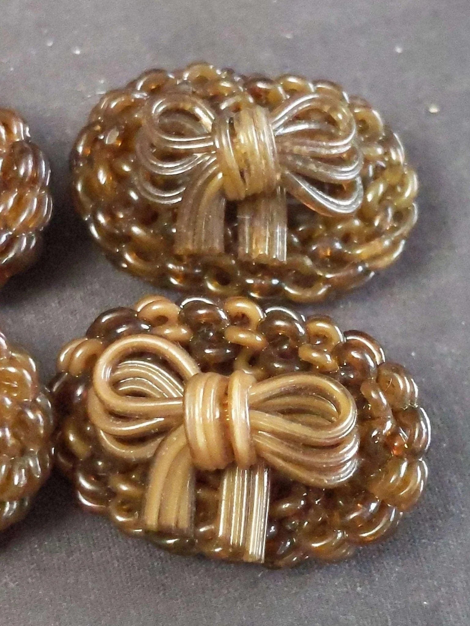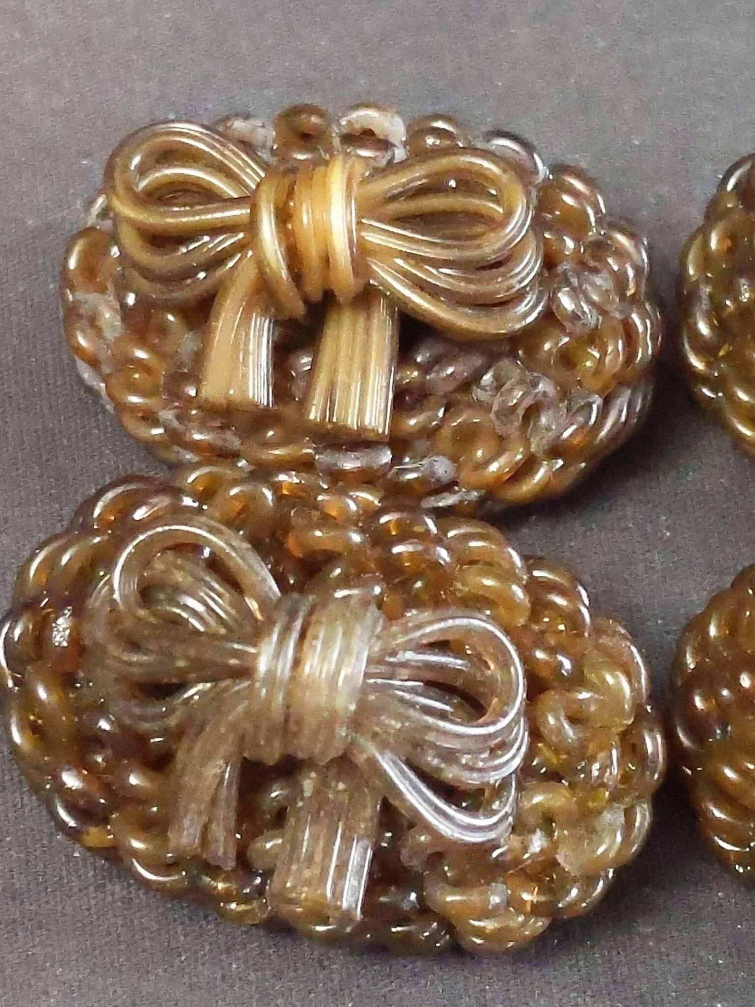 c1950 extruded celluloid Large Hand Made early Plastic Buttons Bows 1 3/8" x 7/8