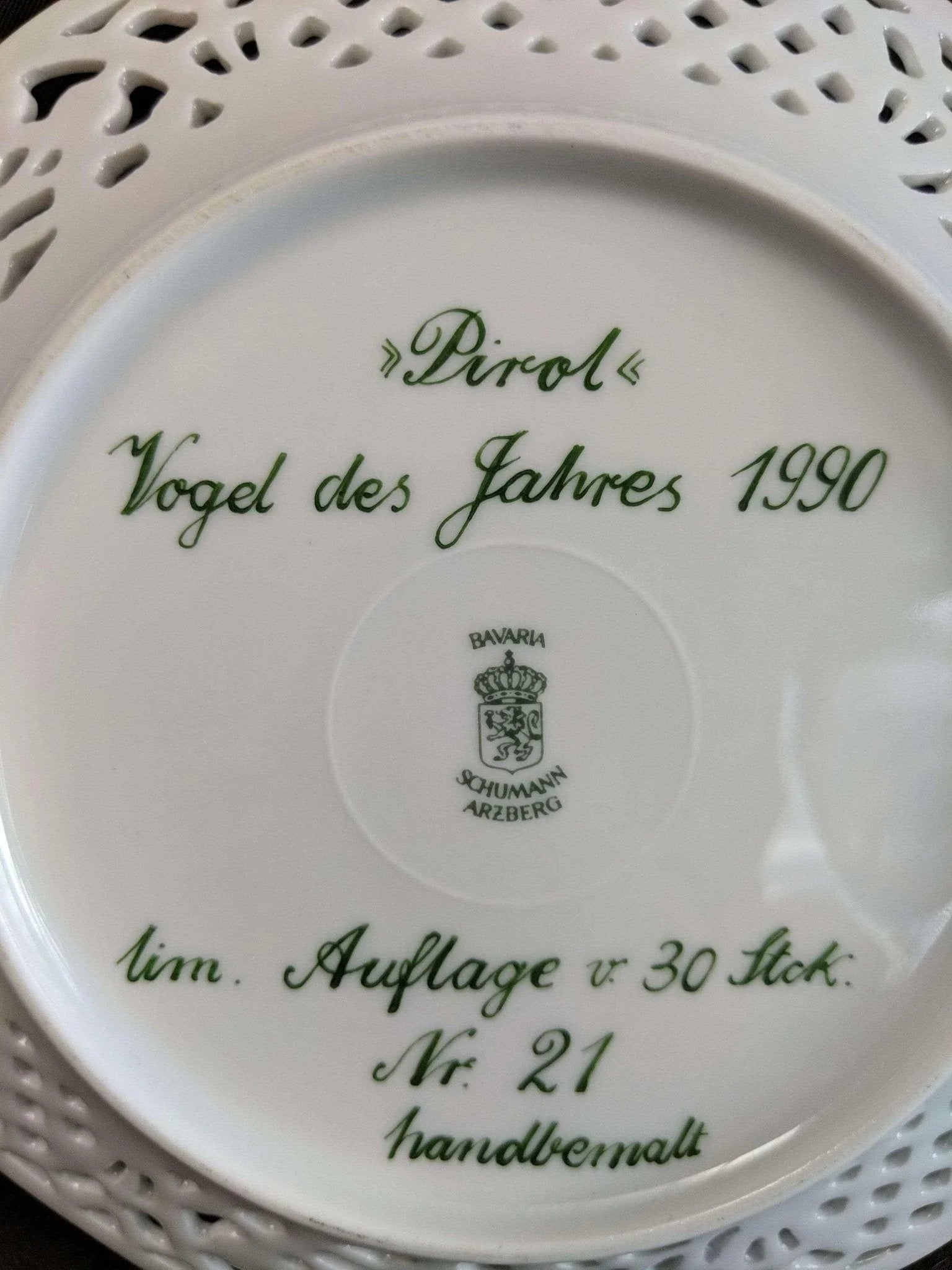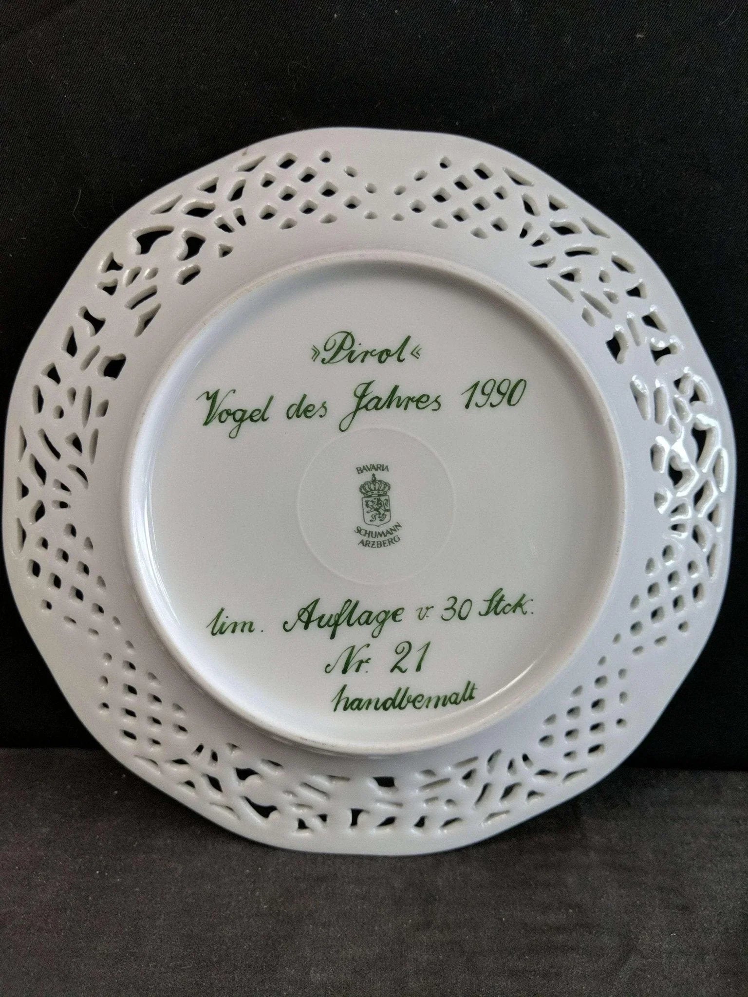 Hand Painted 1990 Bird of the Year Plate 21/30 Oriole Schumann Vogel see jahres Pirol 7.5" no damage or wear. One of 30 produced.