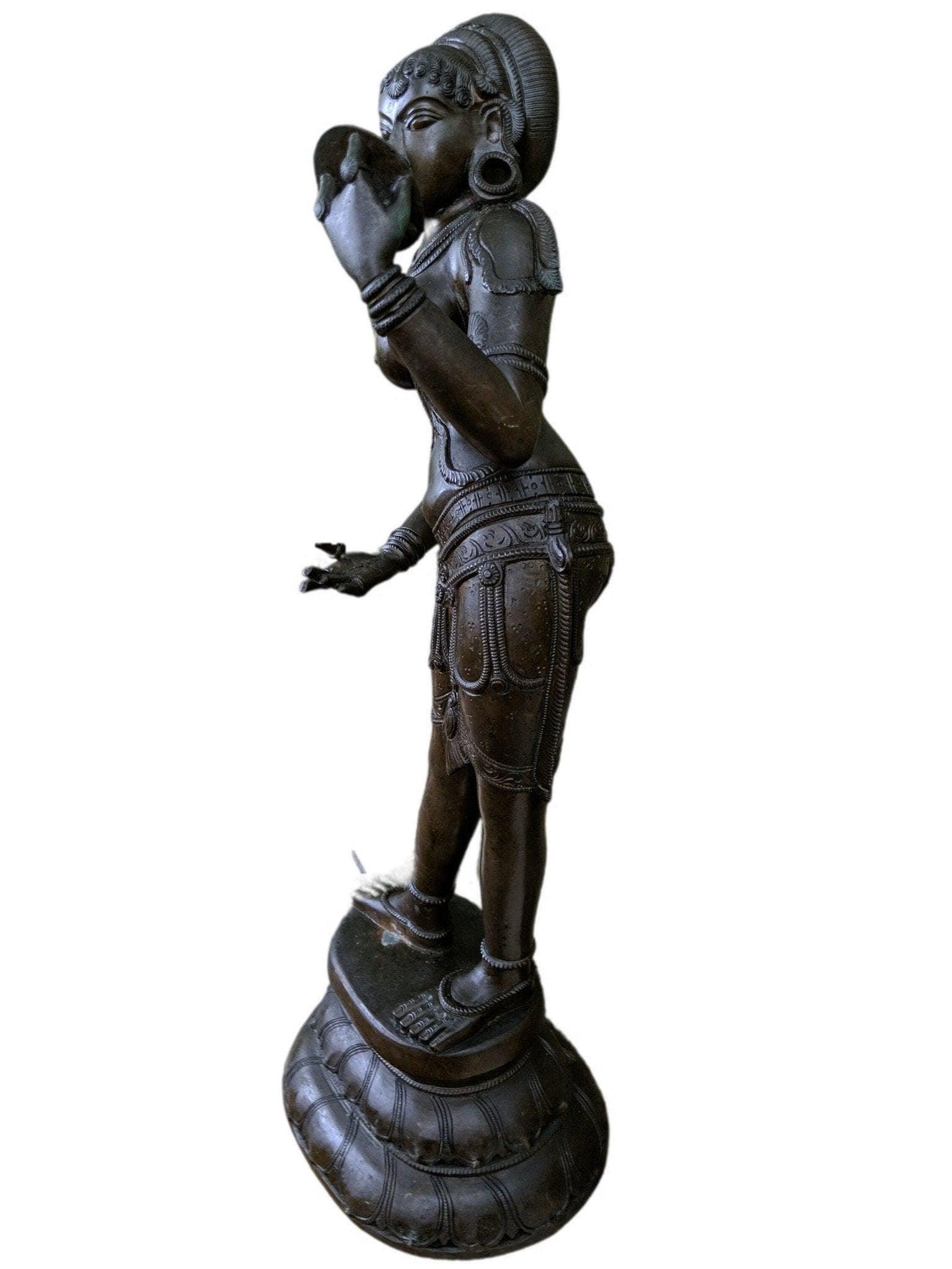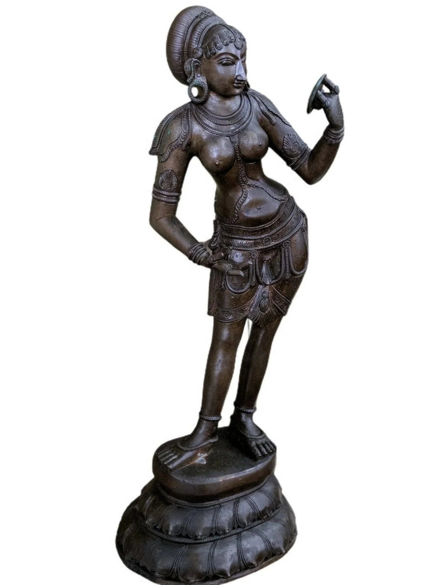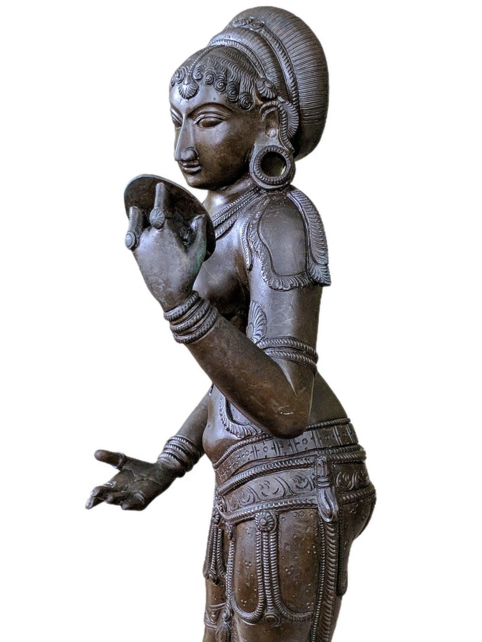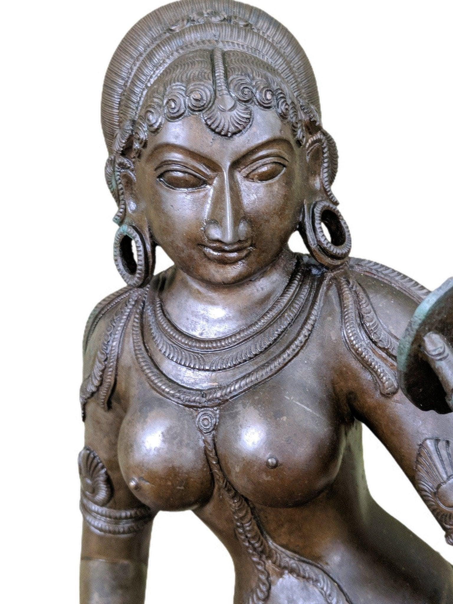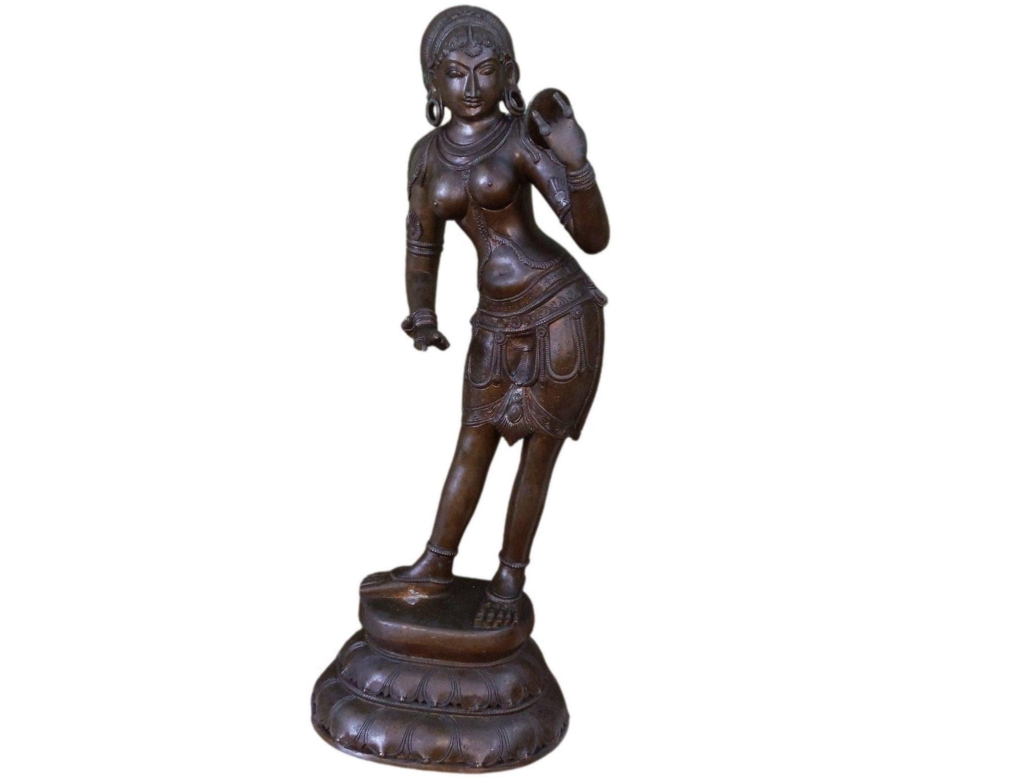 23.5" Antique Shiva Devi Parvati Bronze Statute 29 pounds 9" wide x 7" deep<br>18th/19th century. Extremely good casting. Solid bronze guaranteed. Small area<br>by foot possibly extremely old repair with lead.