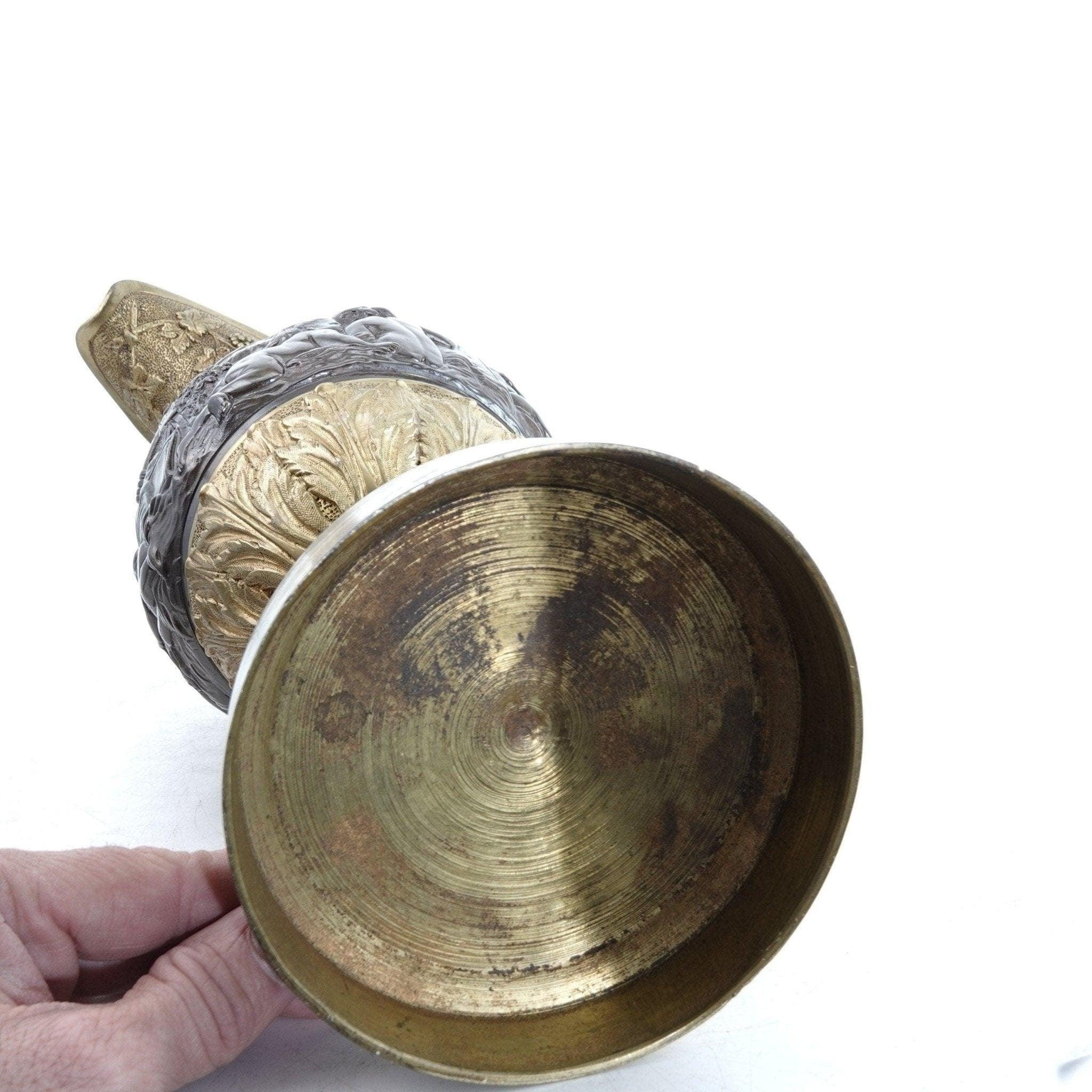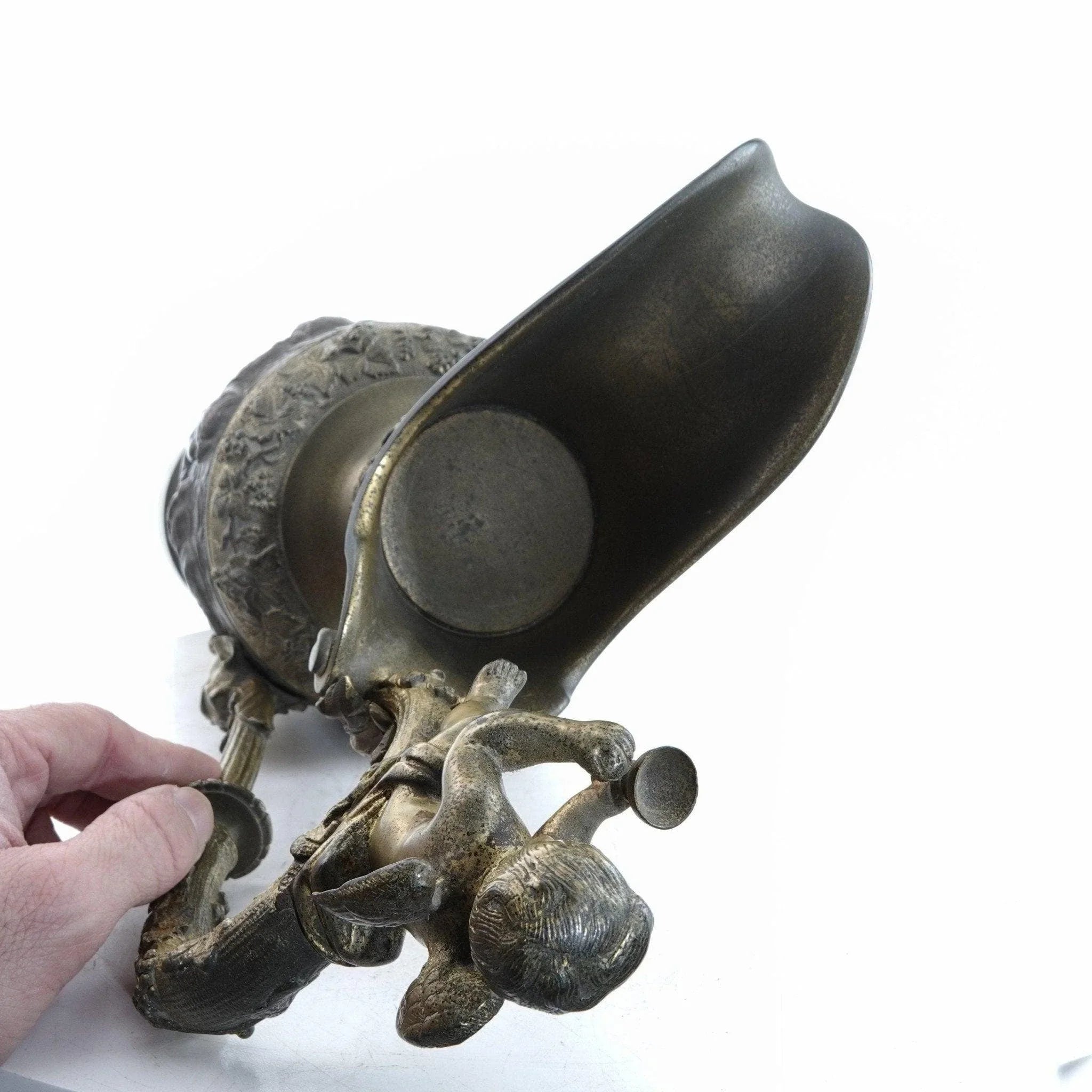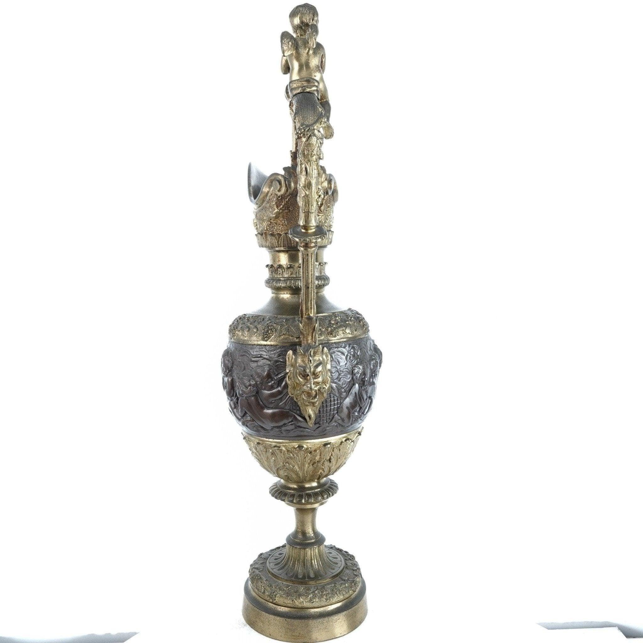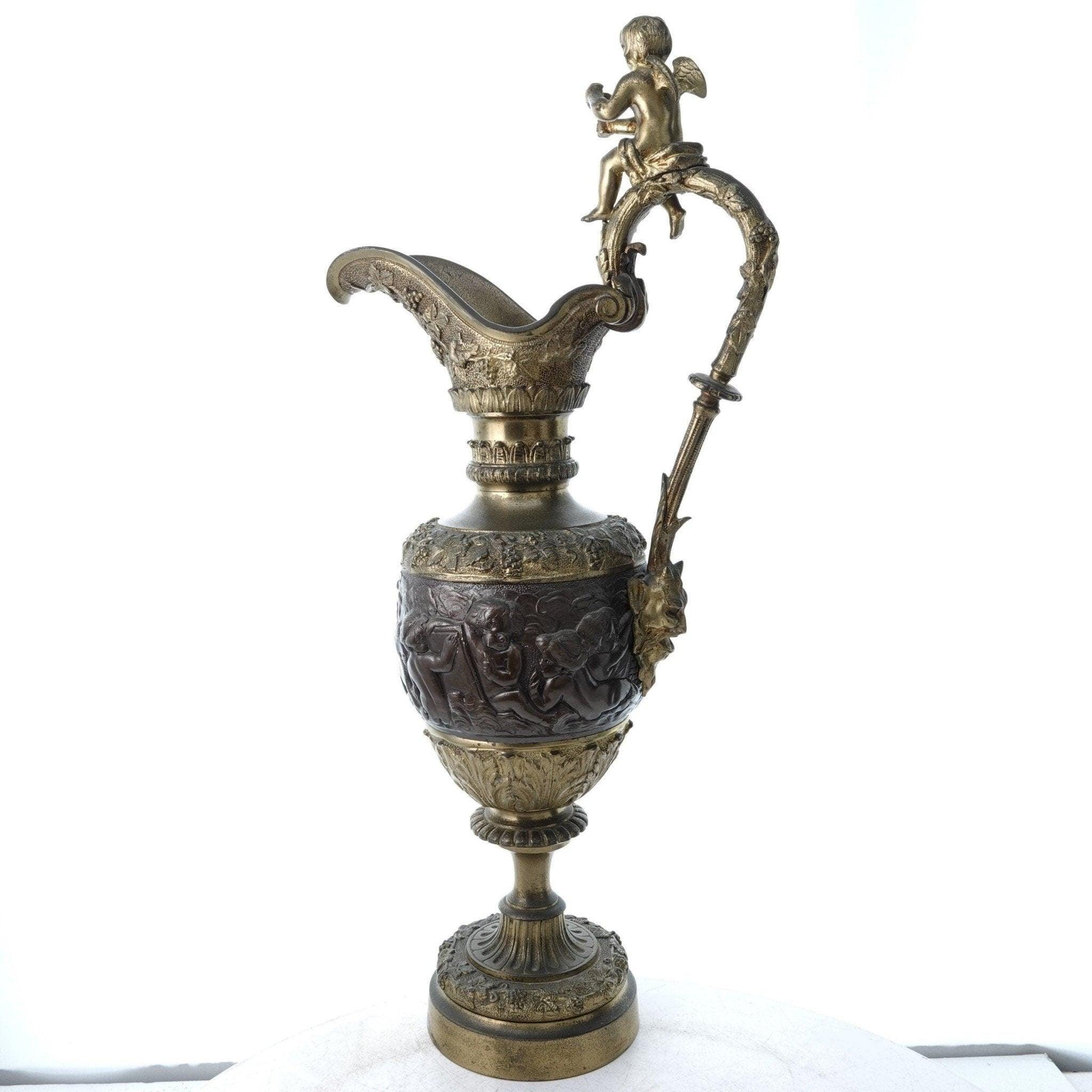 23" c1880 French Renaissance Revival Bronze Ewer Heavily embossed Cherubs, Bacch