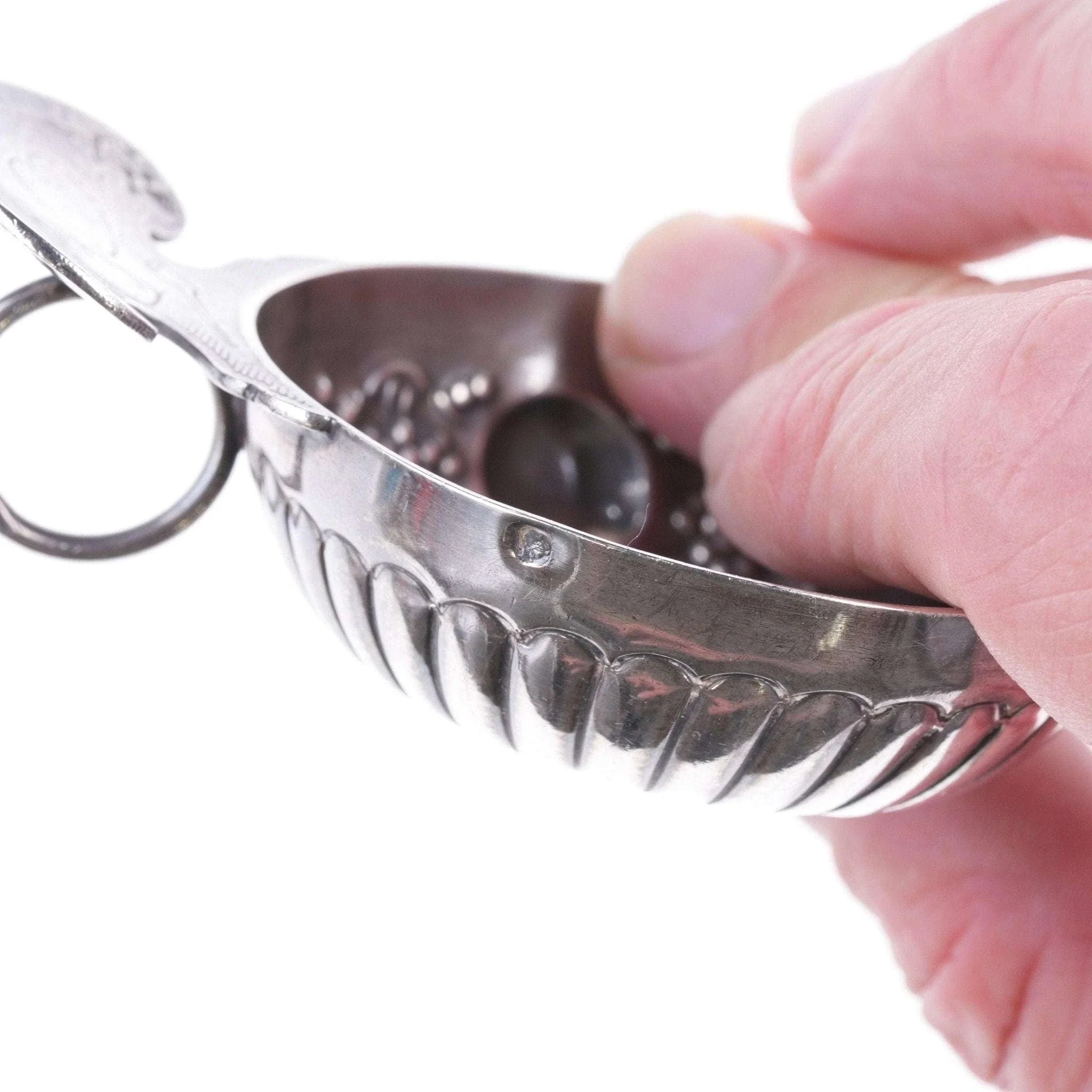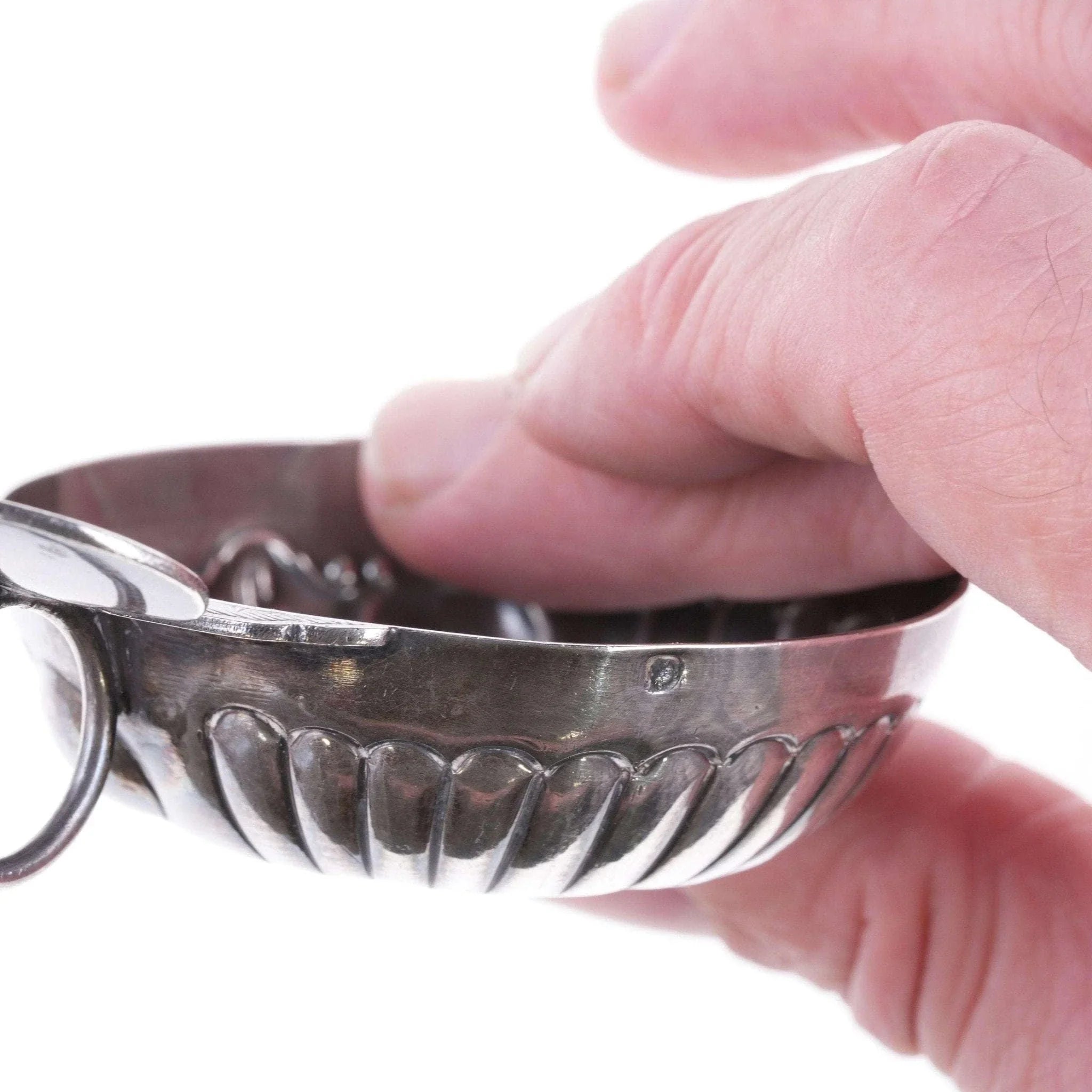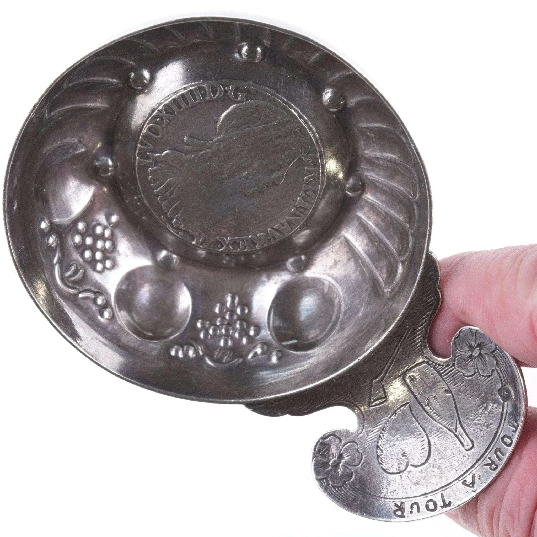 法國 18-19 世紀銀質品酒杯,附 1658 枚硬幣。標記如圖所示,3 5/8" x 2 5/8" 寬 x 13/16" 深。高含量實心銀。