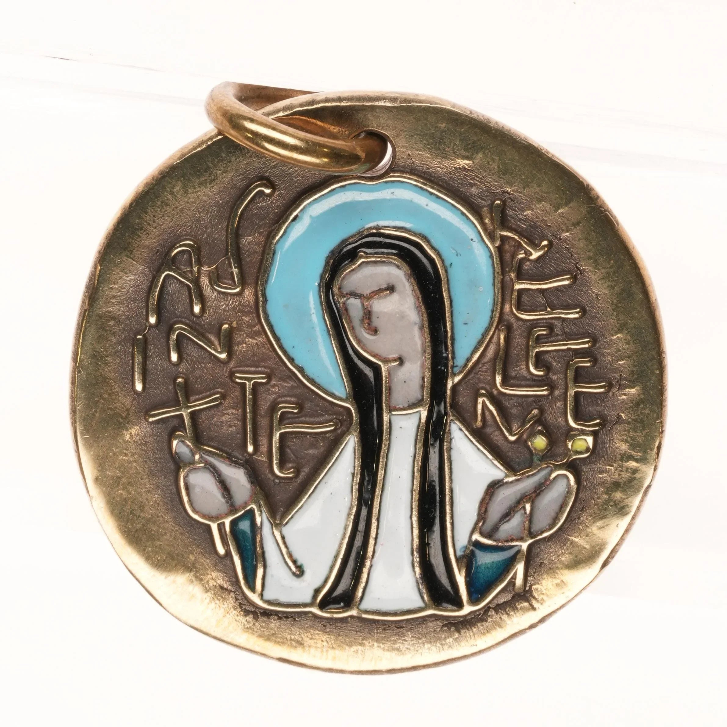 French c1970 Elie Pellegrin St Helena Bronze Enamel pendant