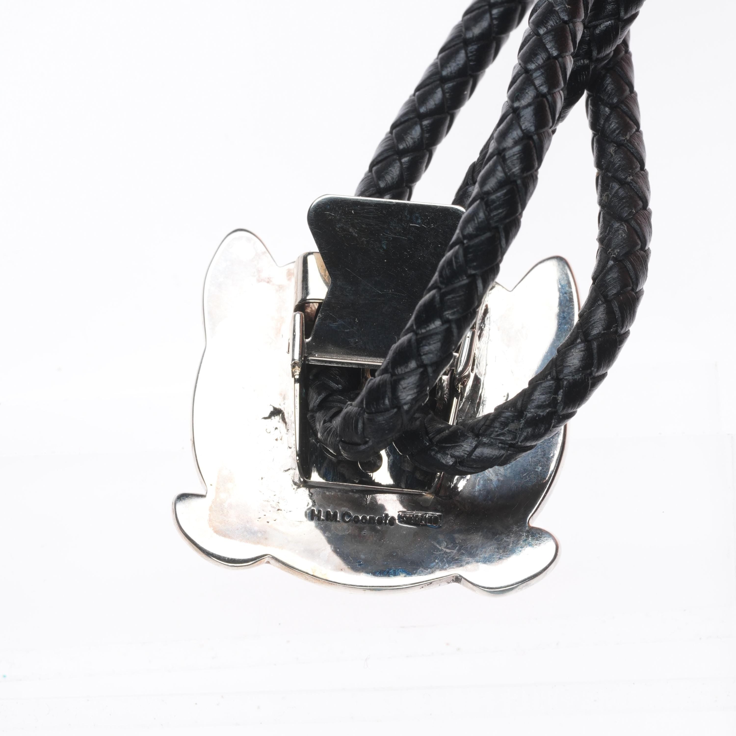 H.M. Coonsis Zuni sterling silver turquoise/coral inlay knifewing bolo tie