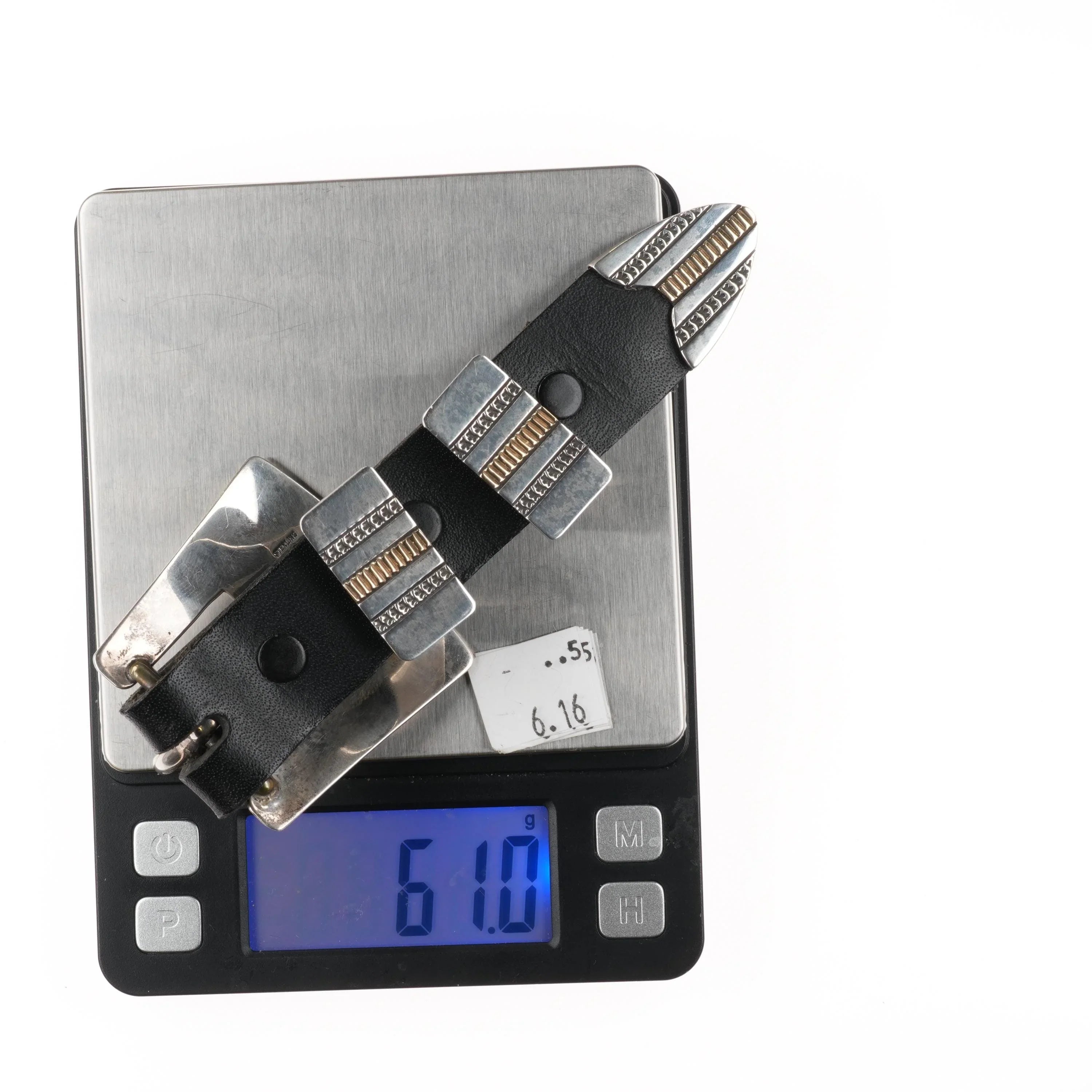 Harris Joe Navajo sterling silver 14k gold ranger belt buckle set 1"