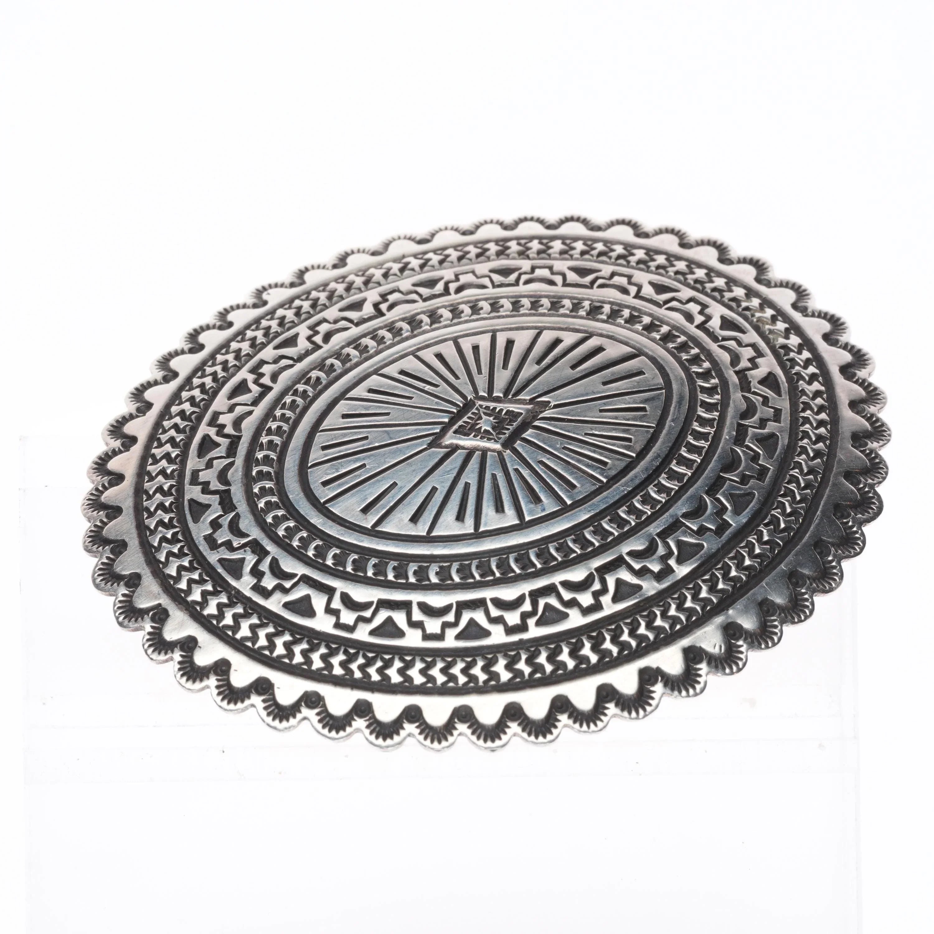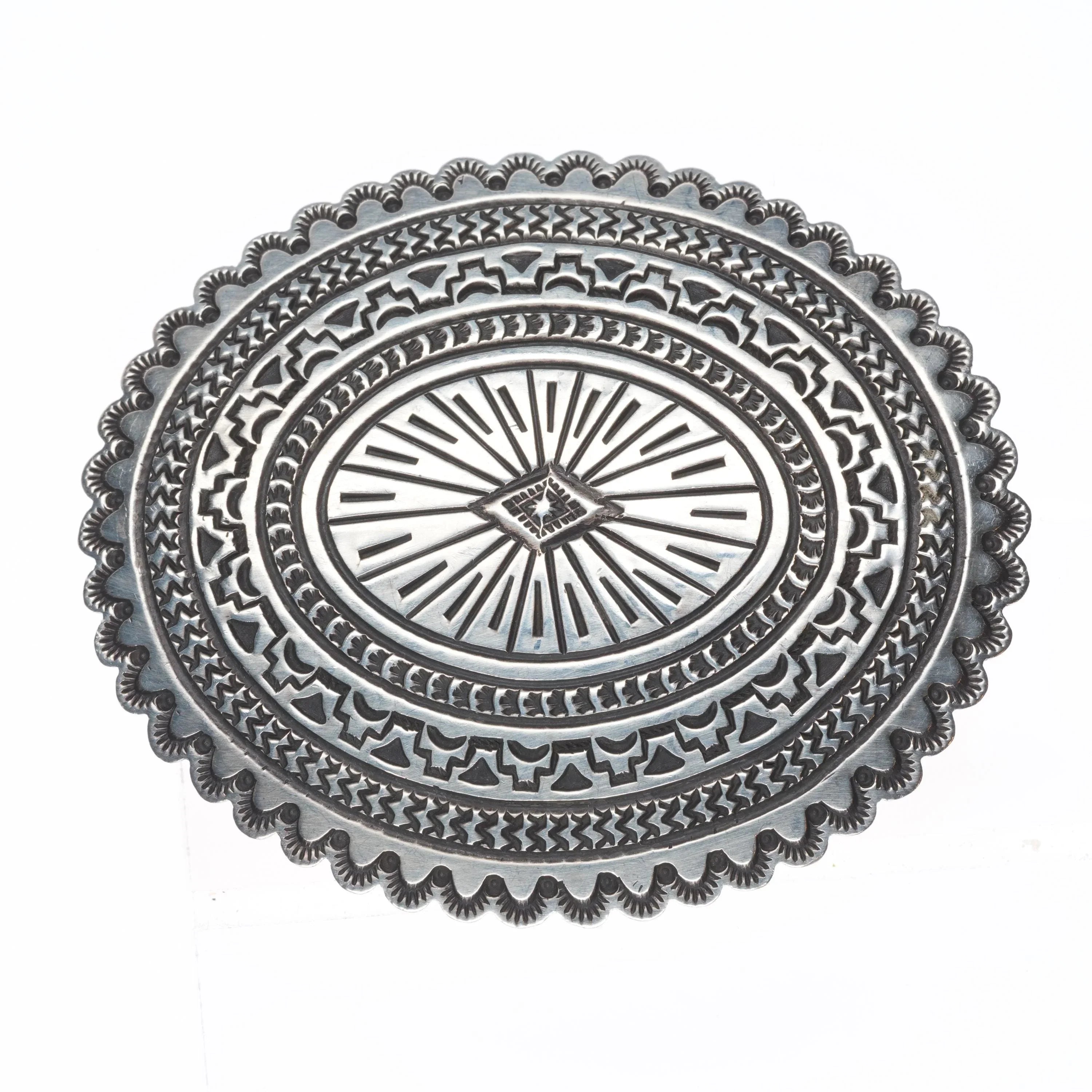 Harris Joe Navajo vintage sterling silver intricately stamped concho belt buckle