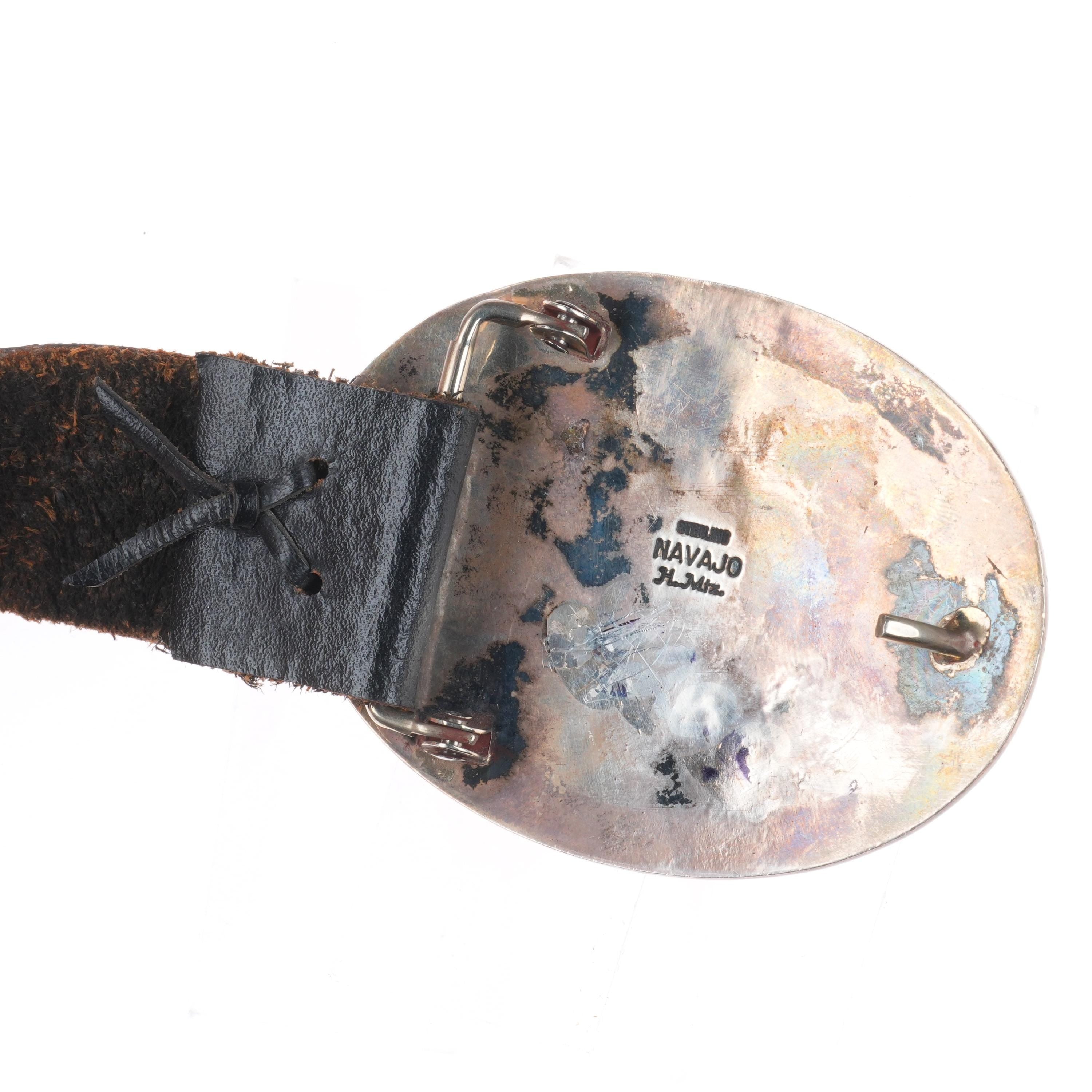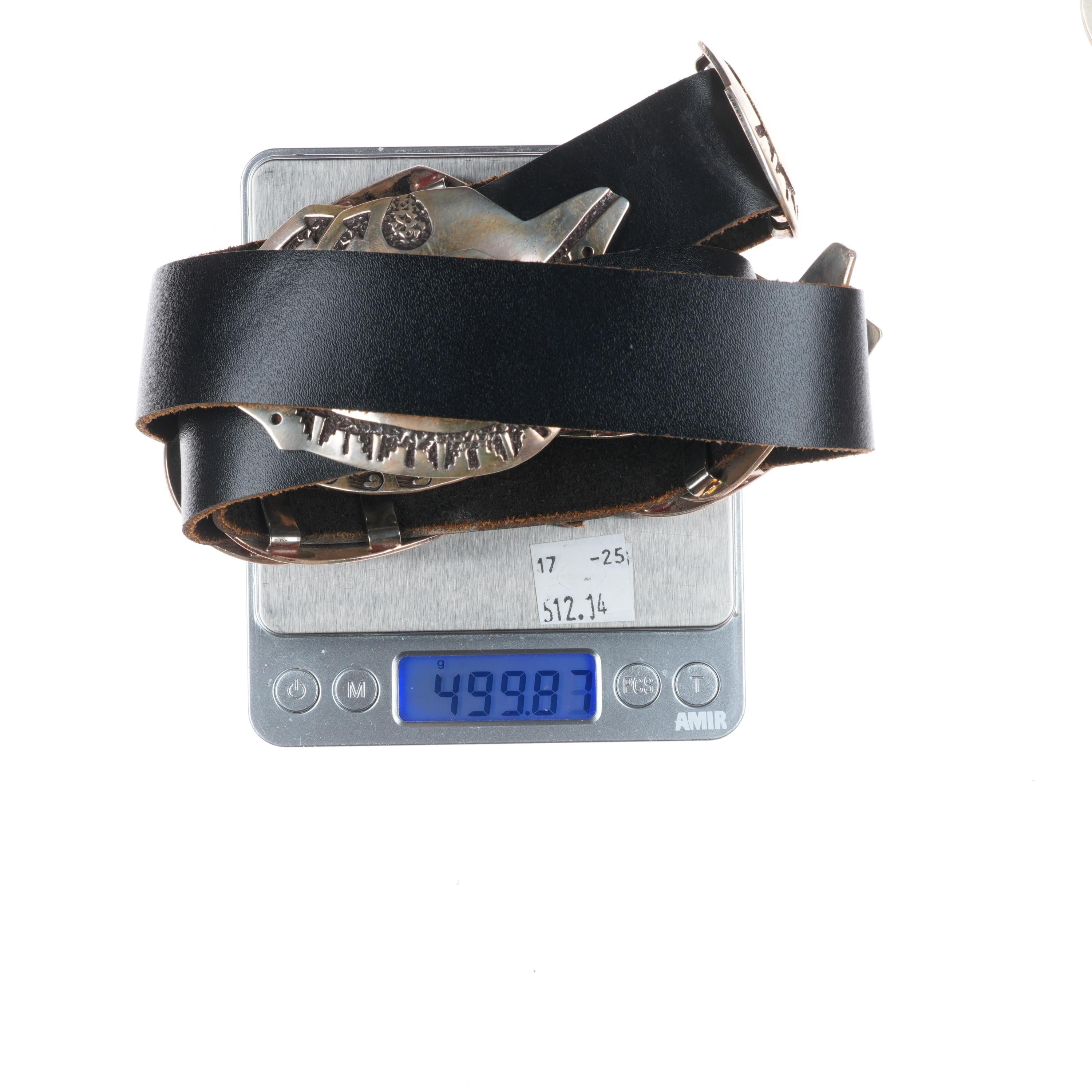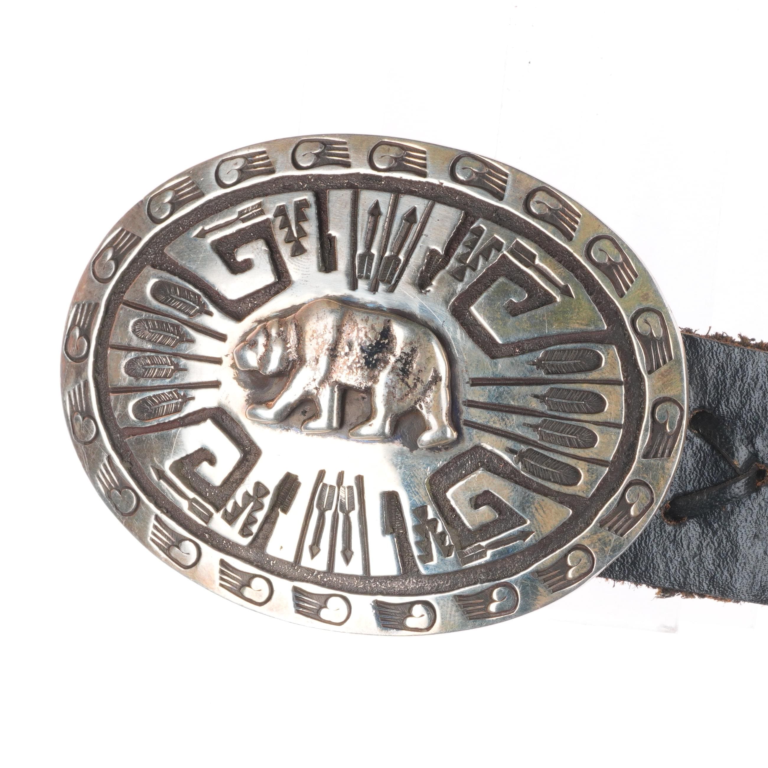 Harry Martinez Navajo sterling silver bear form concho belt. Tested and guaranteed solid sterling silver with weight and measurements in pictures. Fully functional. Fits up to a 49" waist but can be hooked shorter, great condition, circa last quarter of the 20th century. I do not believe there are any holes, so unworn. I can put holes where you like upon request. 10 conchos and 1 buckle