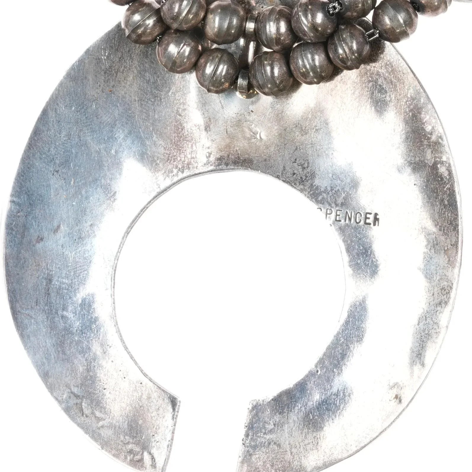 Harry Spencer Navajo sterling silver cardinal squash blossom necklace Redbirds. No damage or issues. 27" long, very substantial necklace with weight and measurements in picstures.
