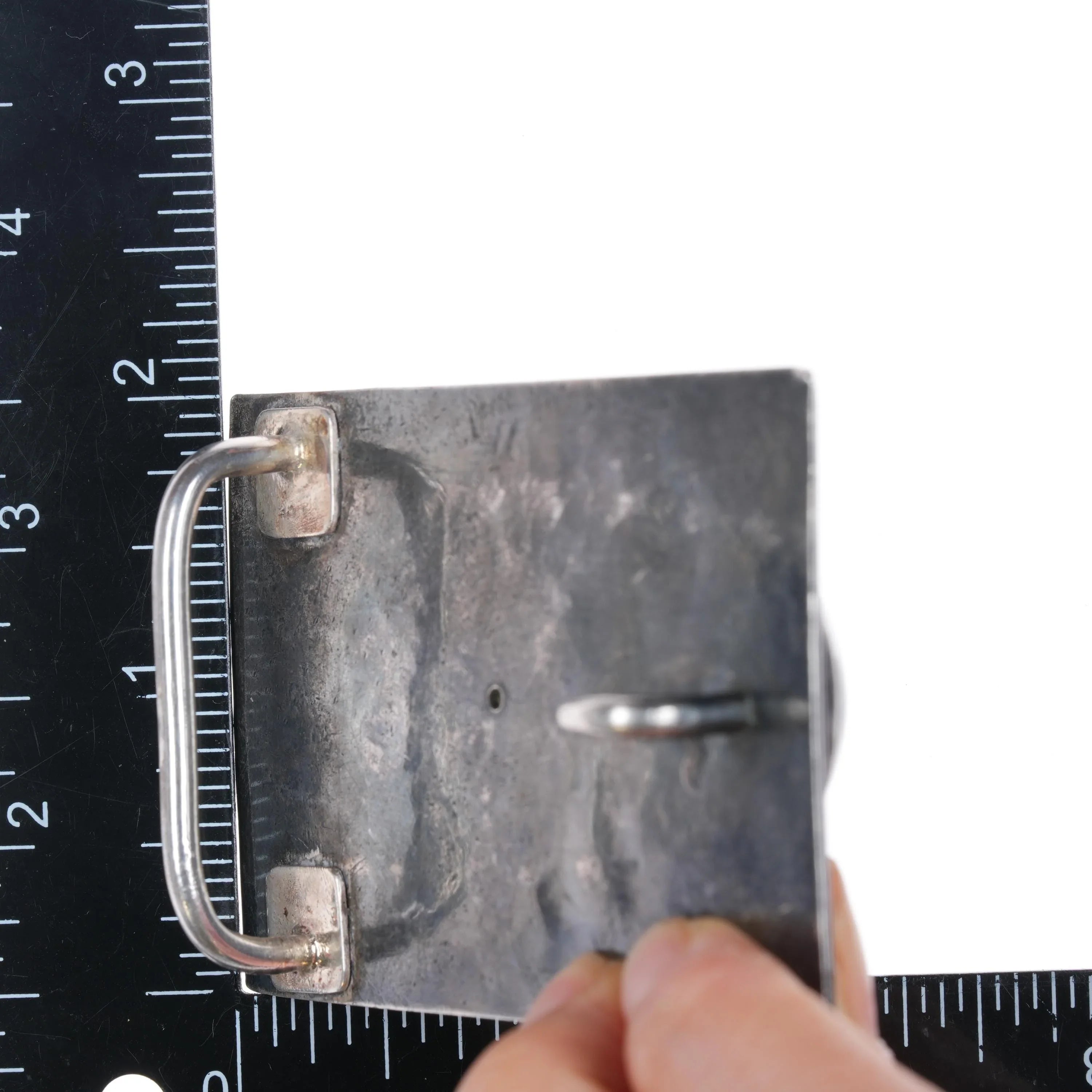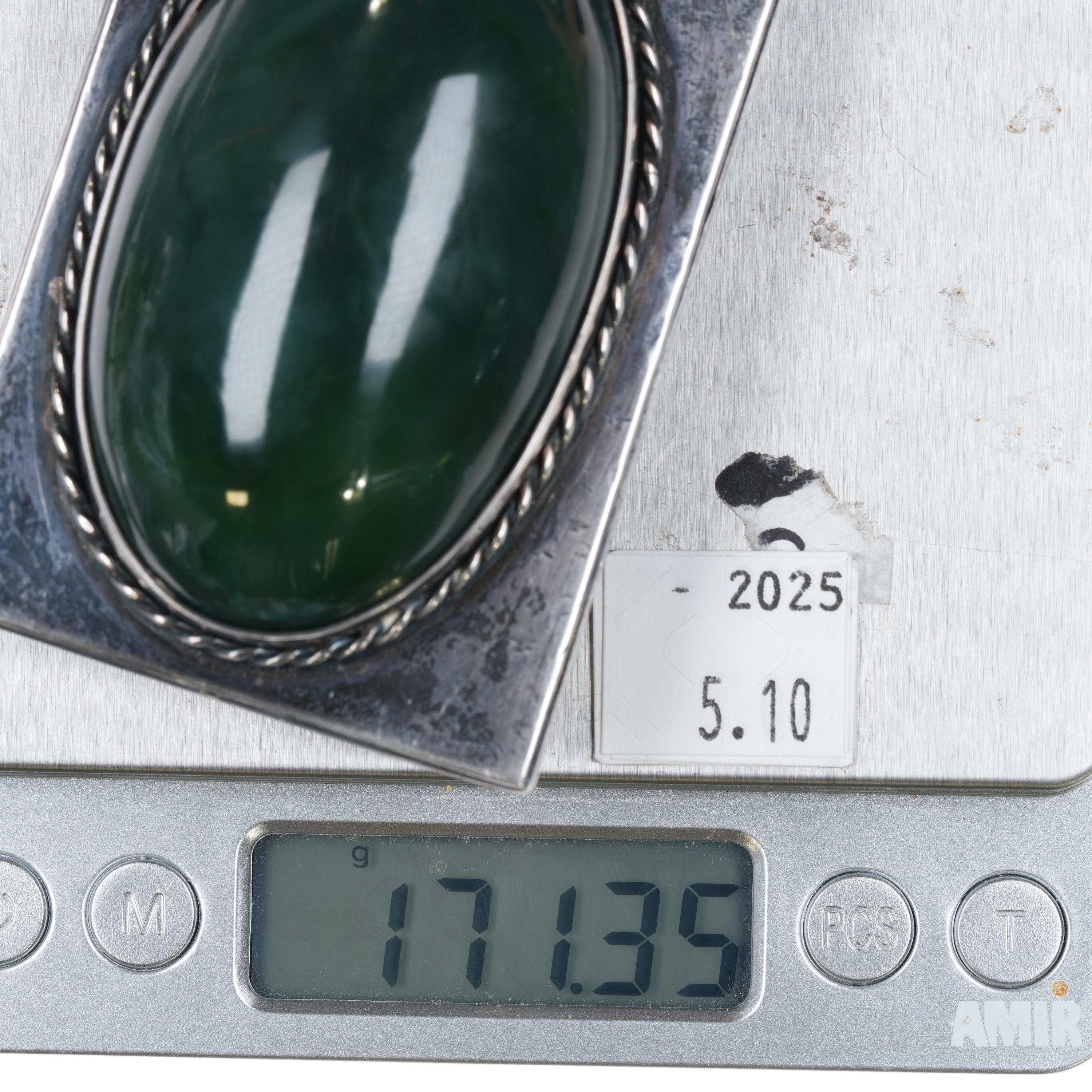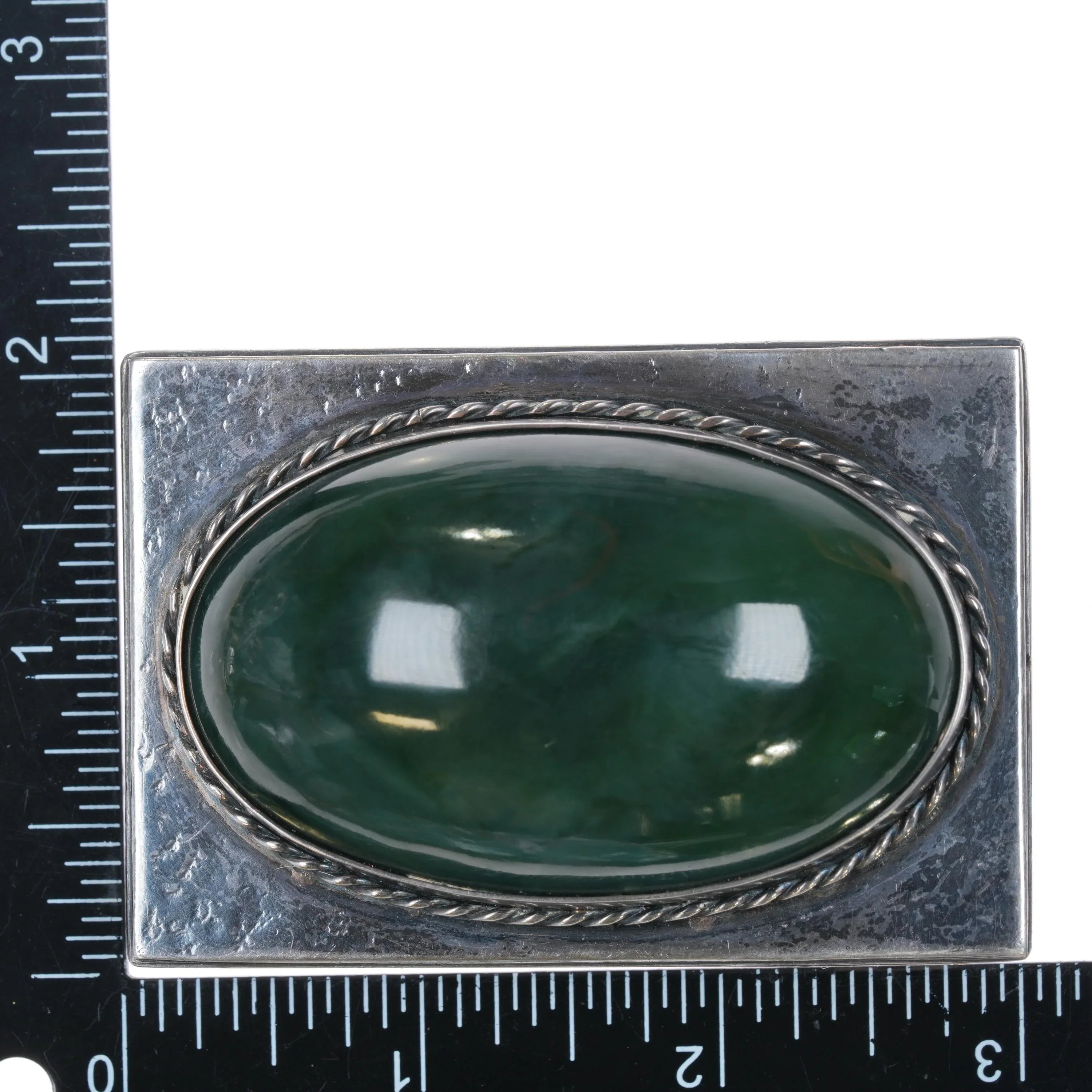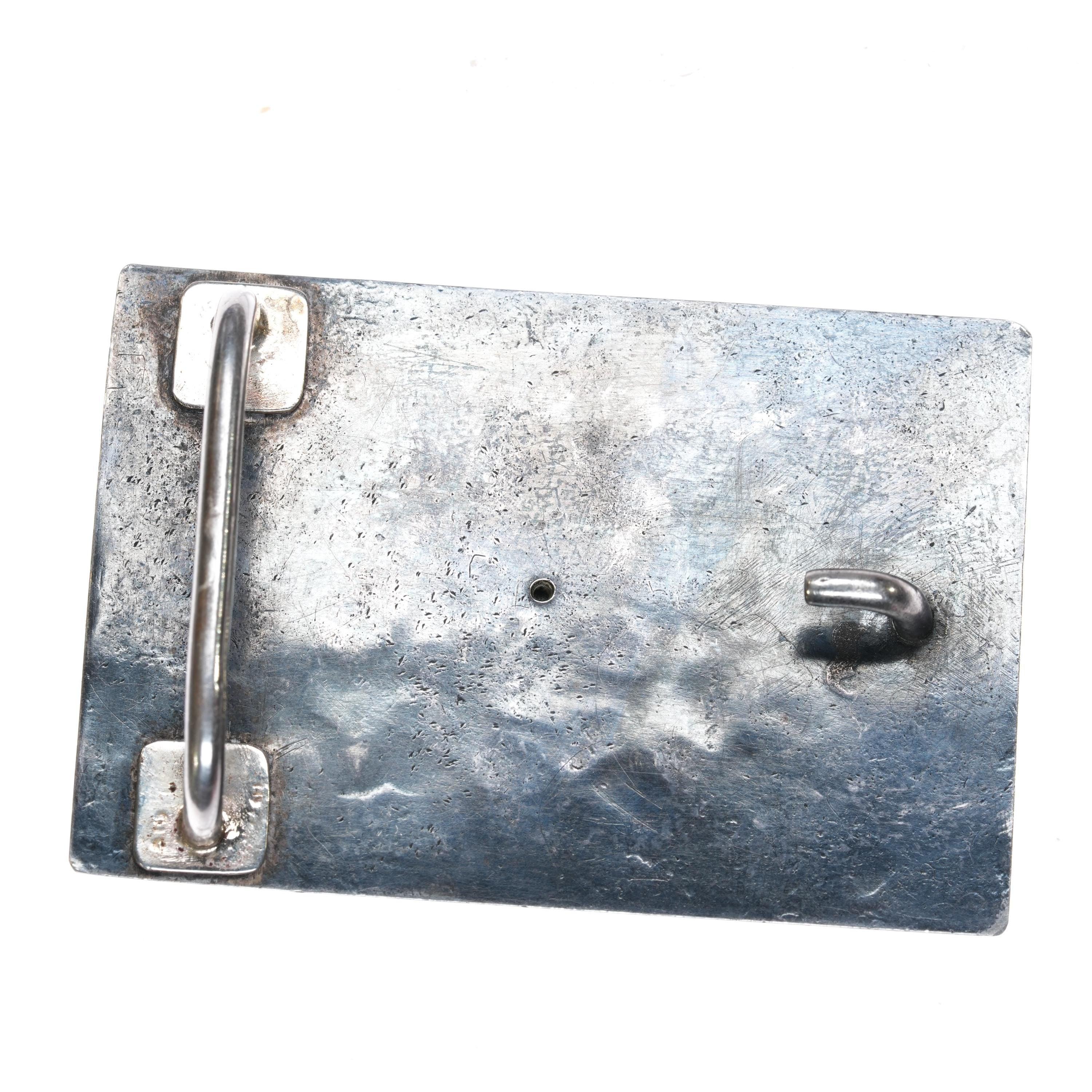 Heavy Hammered Sterling silver Nephrite Jade belt buckle. Solid sterling silver and with weight and measurements in the pictures. Fully functional with age appropriate wear, no damage unless noted. Marked as shown, fits up to a 1.5" belt. The stone is a really gorgeous dark green that shows well in person but not so well in these pics. Unmarked.