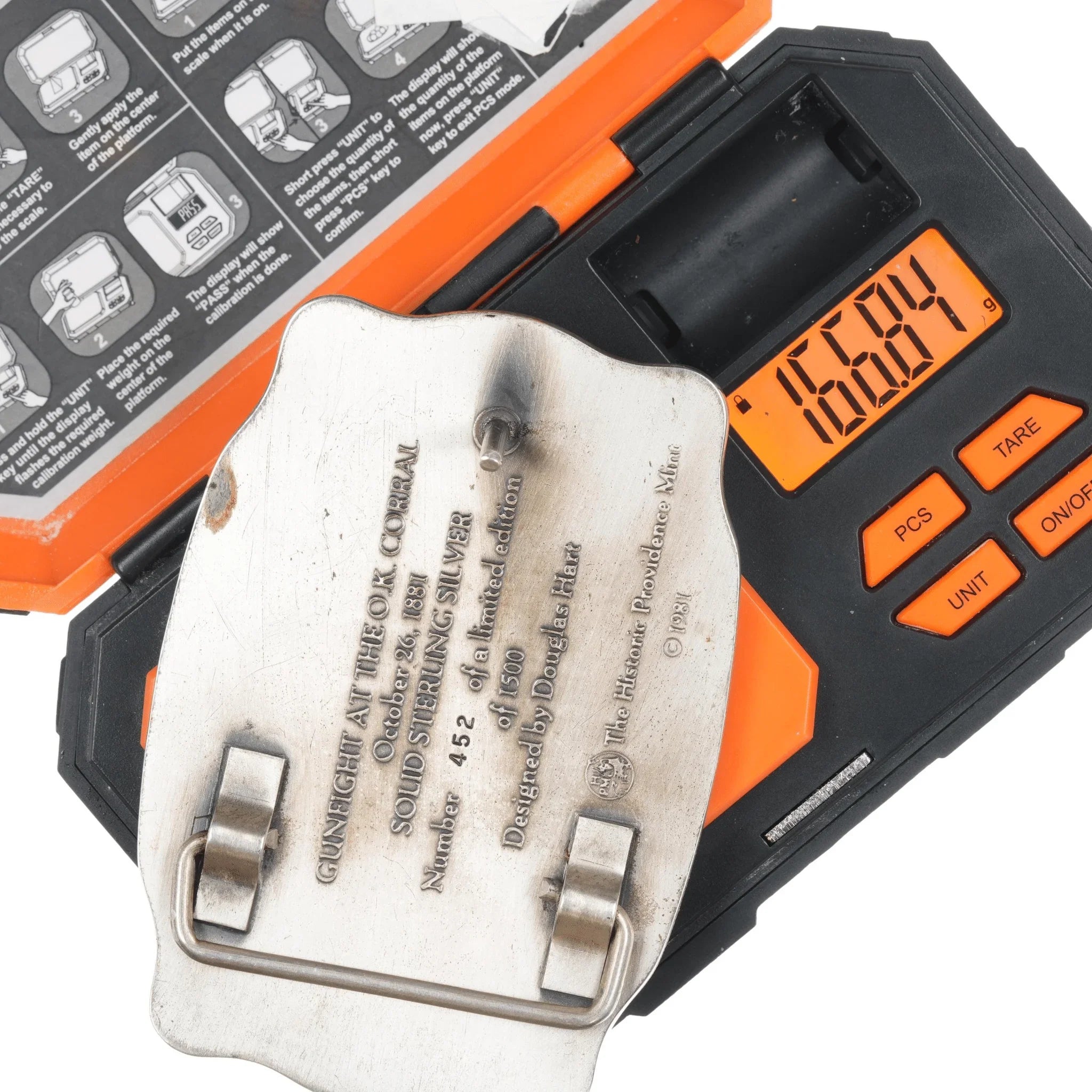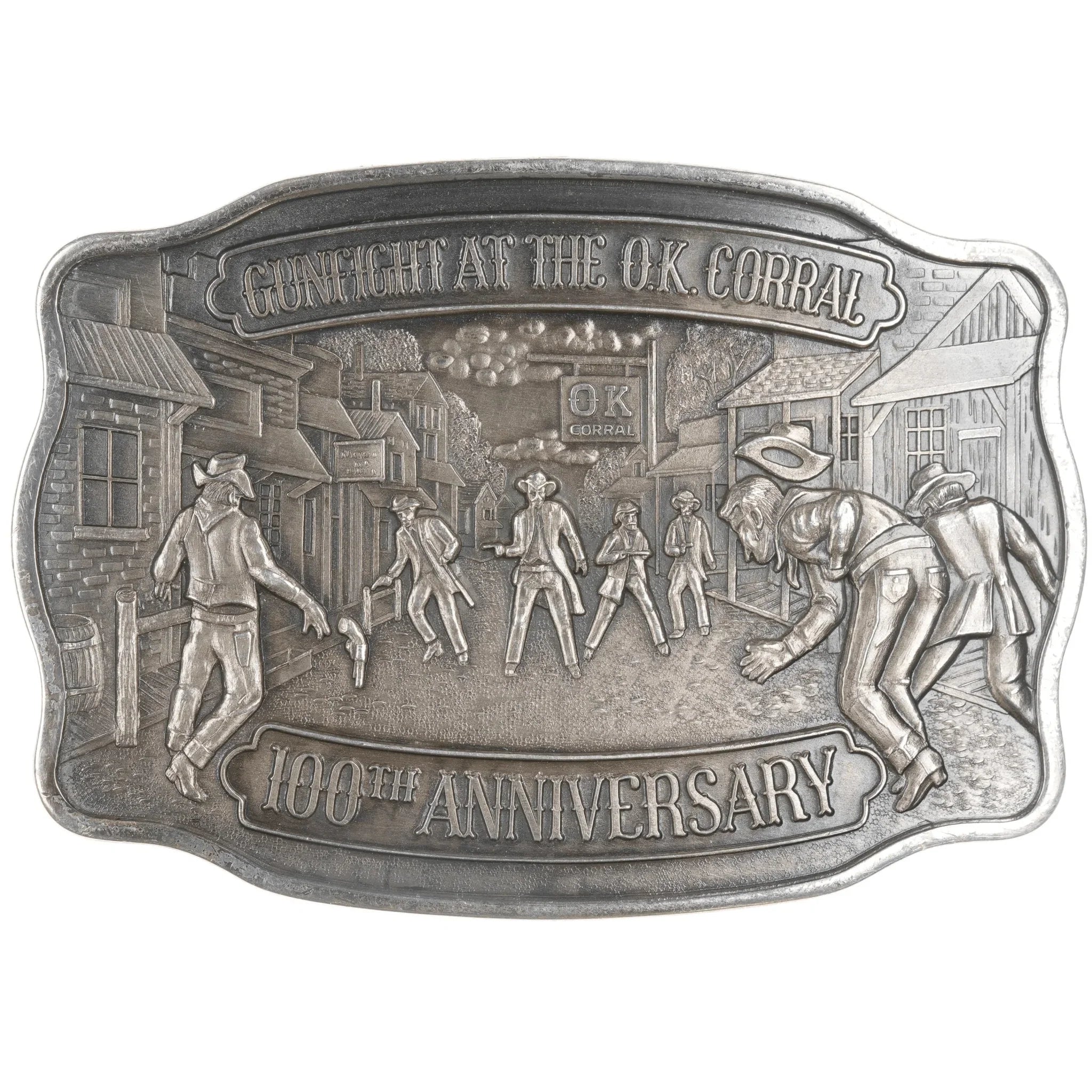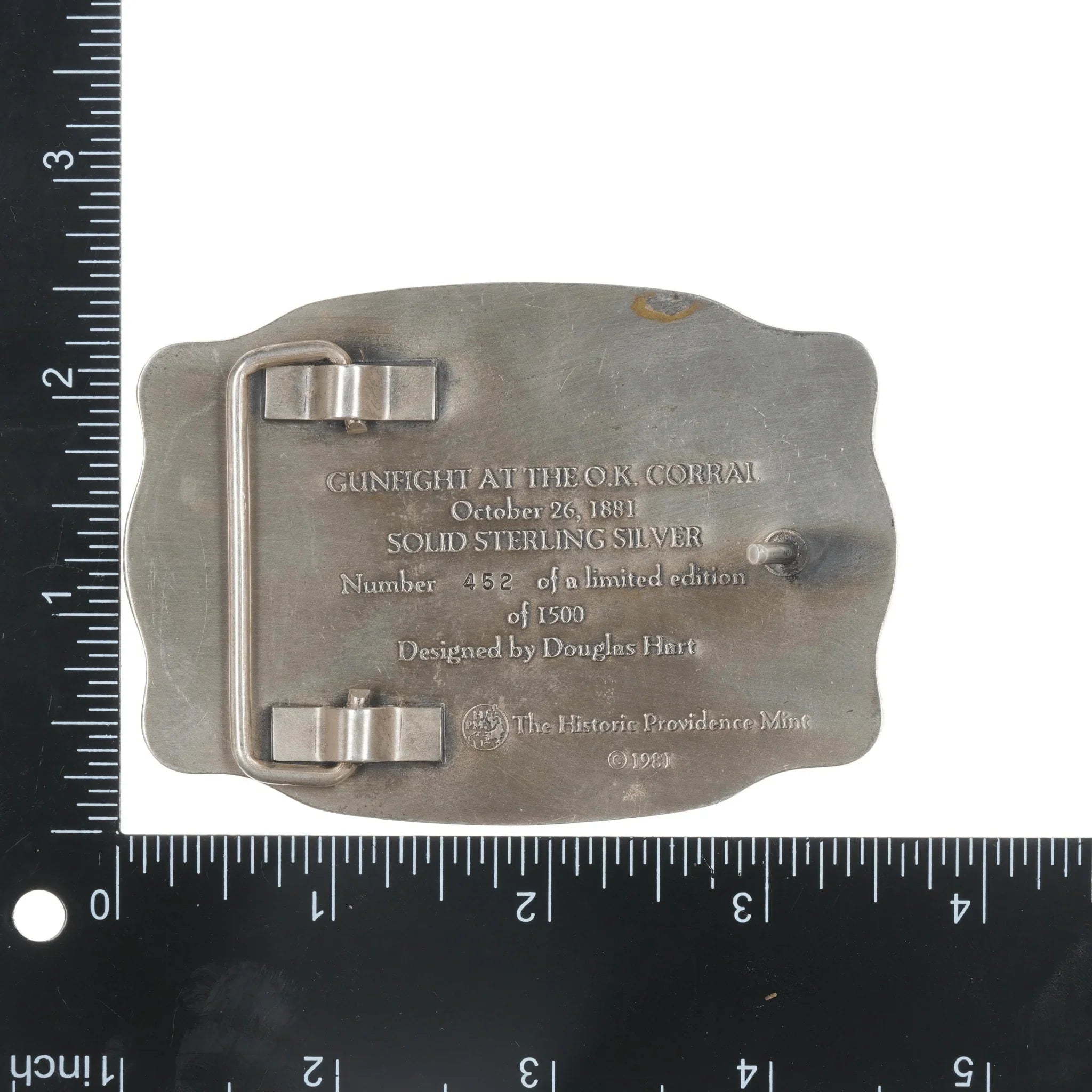 Heavy Sterling Belt buckle Gunfight at the OK Corral 100 Anniversary, solid sterling with no issues.