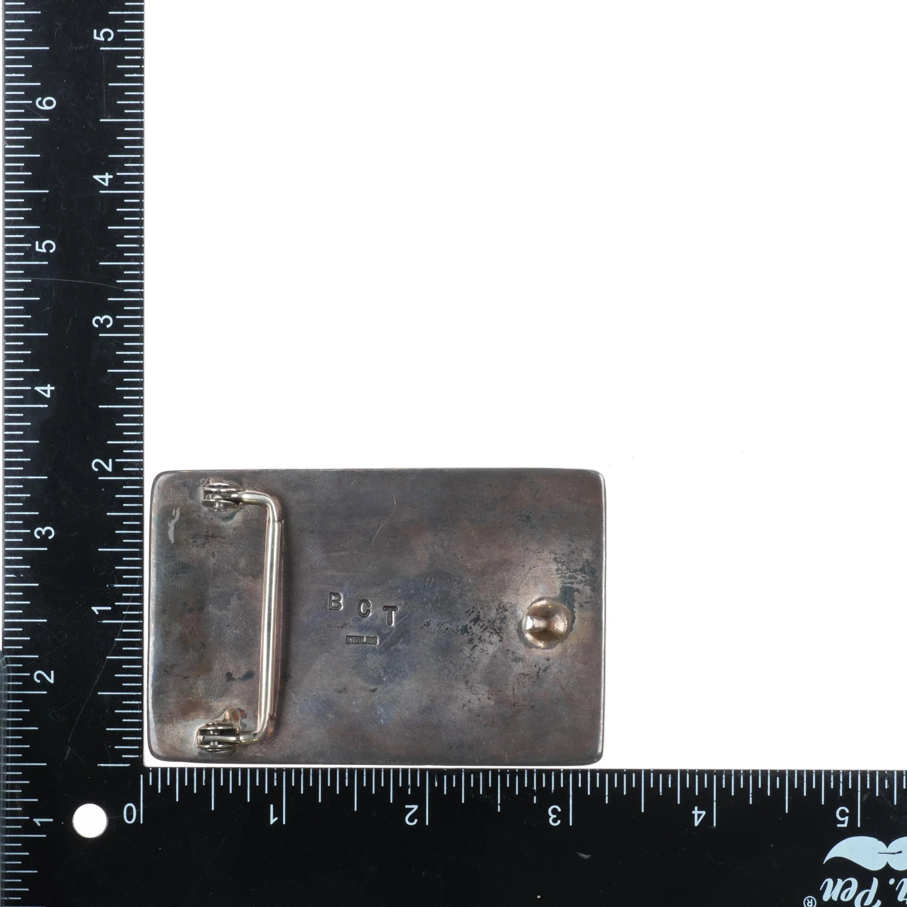 Heavy Vintage Becenti Navajo square sterling silver turquoise belt buckle
