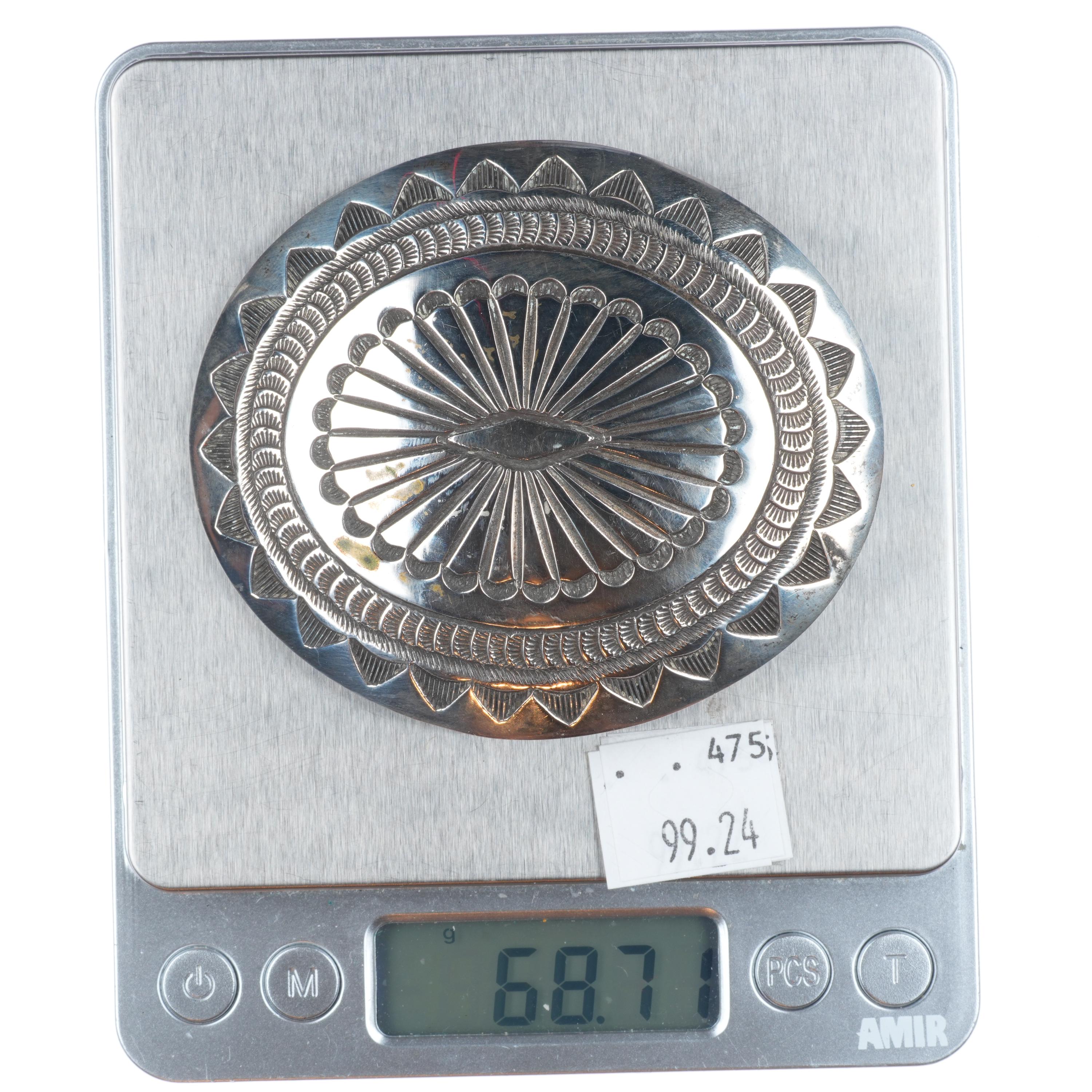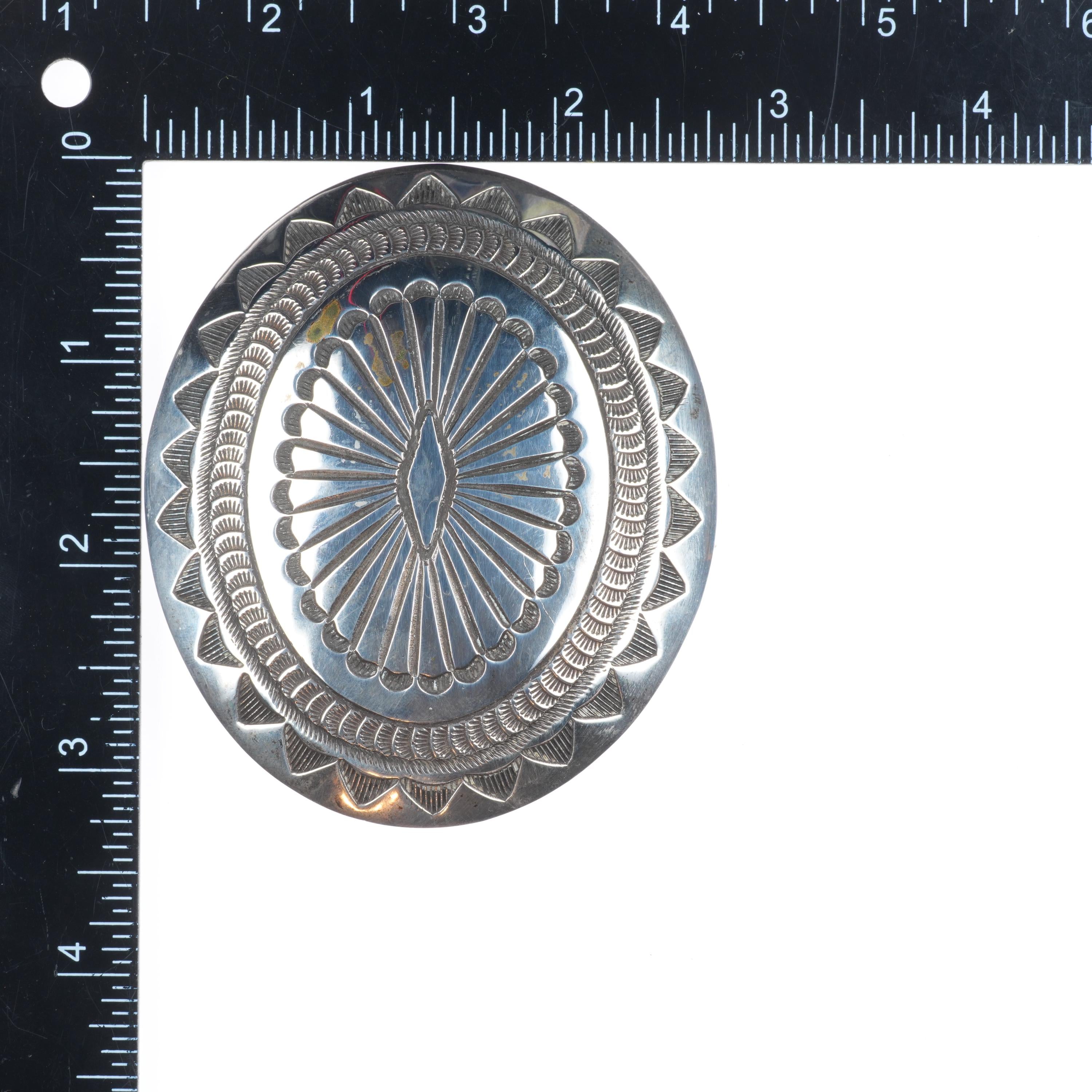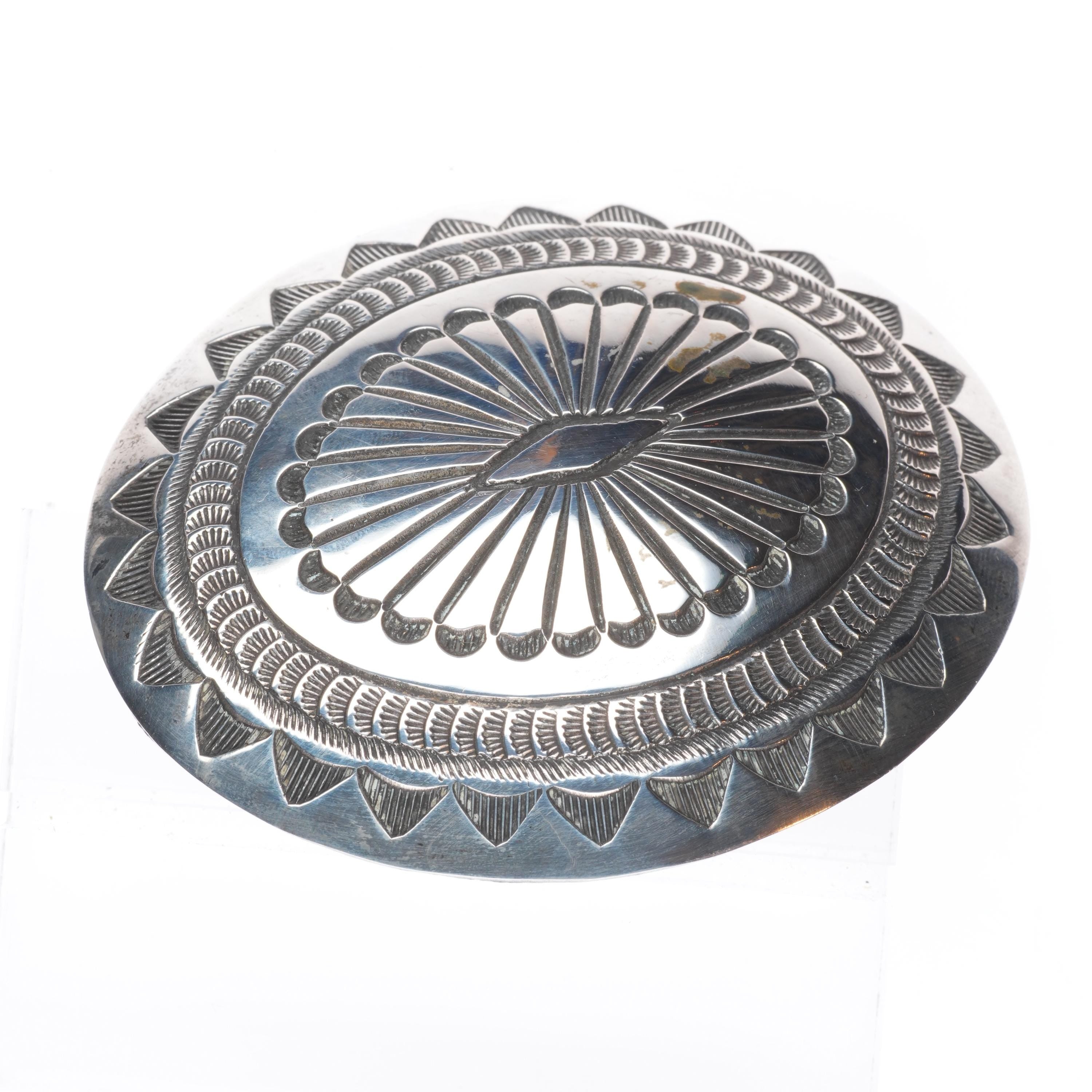 Henry Morgan Navajo deep stamped sterling silver concho style belt buckle