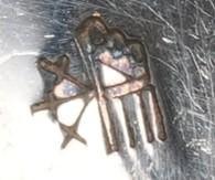 Hopi Overlay Mediterranean coral bib necklace in sterling. Hallmarked as shown, I don't recognize the hallmark. High quality workmanship and design. Approx 24" with chain and curve of bar. No issues.