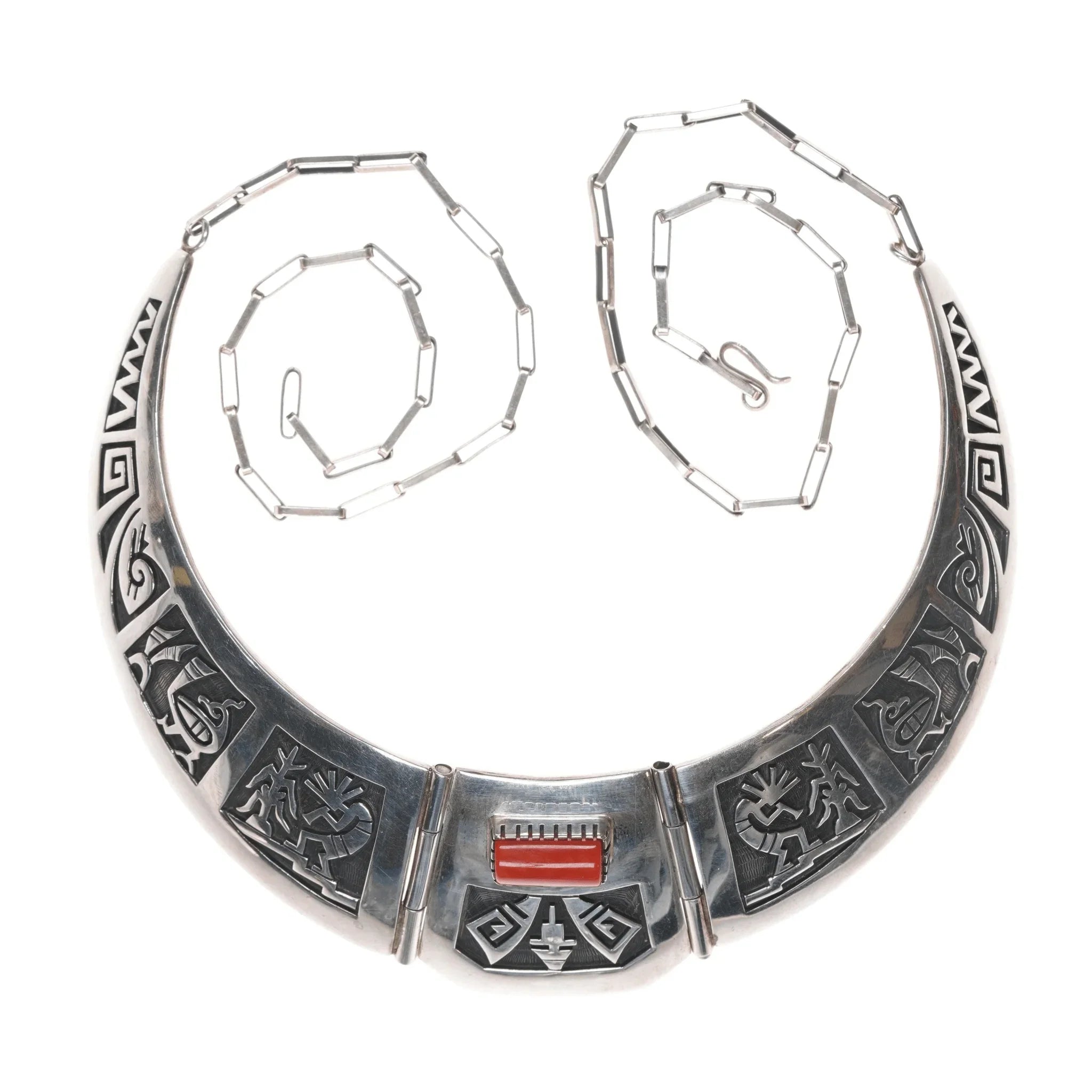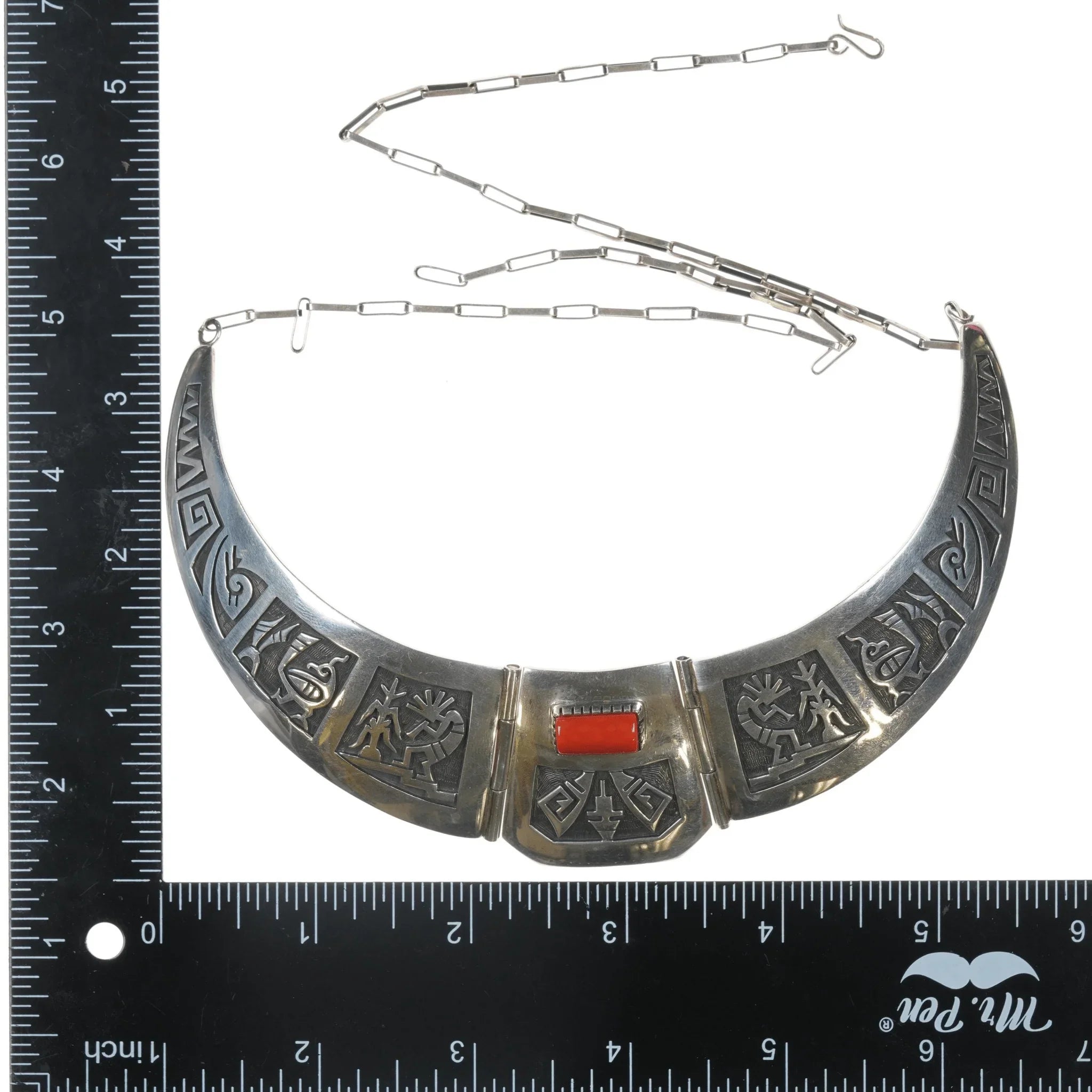 Hopi Overlay Mediterranean coral bib necklace in sterling