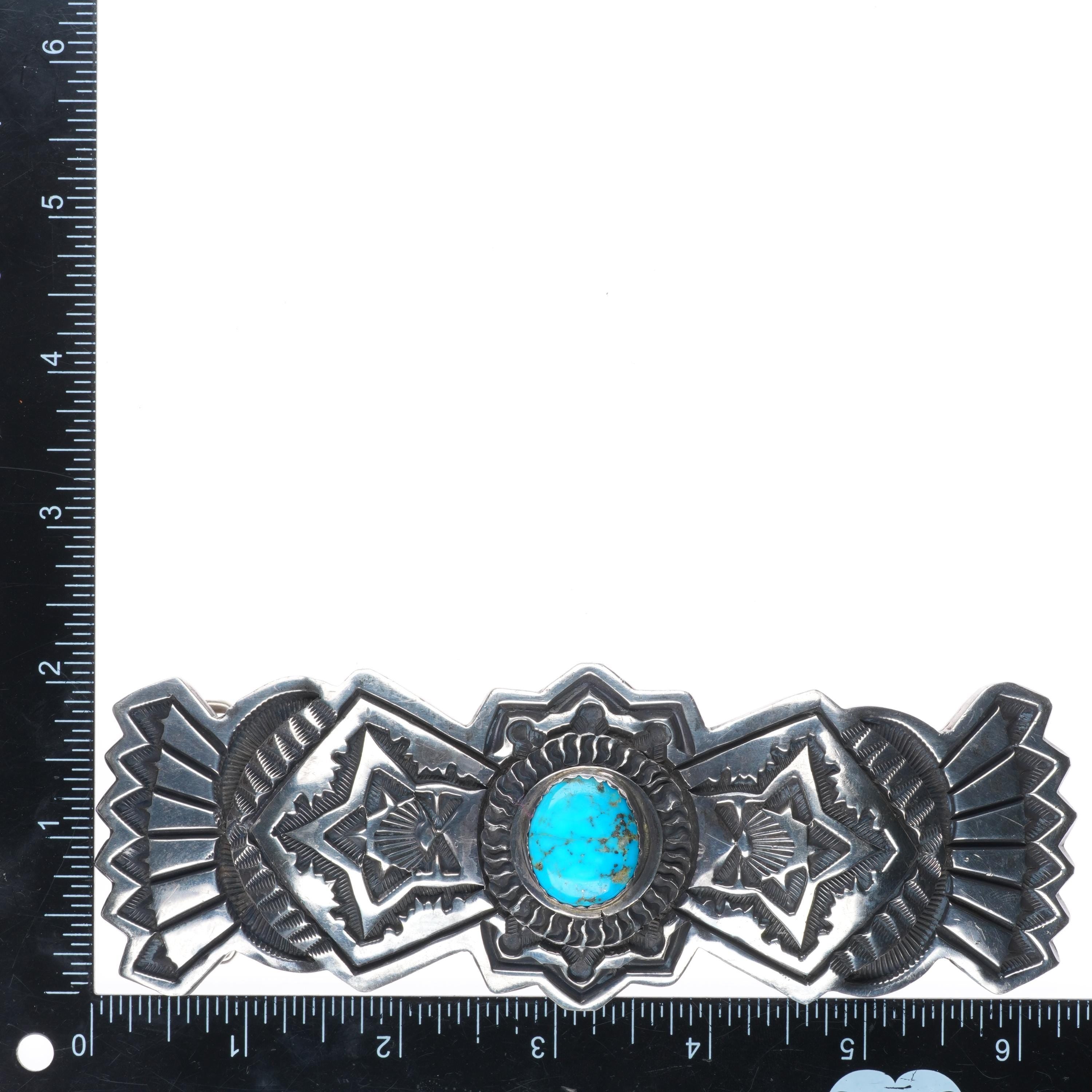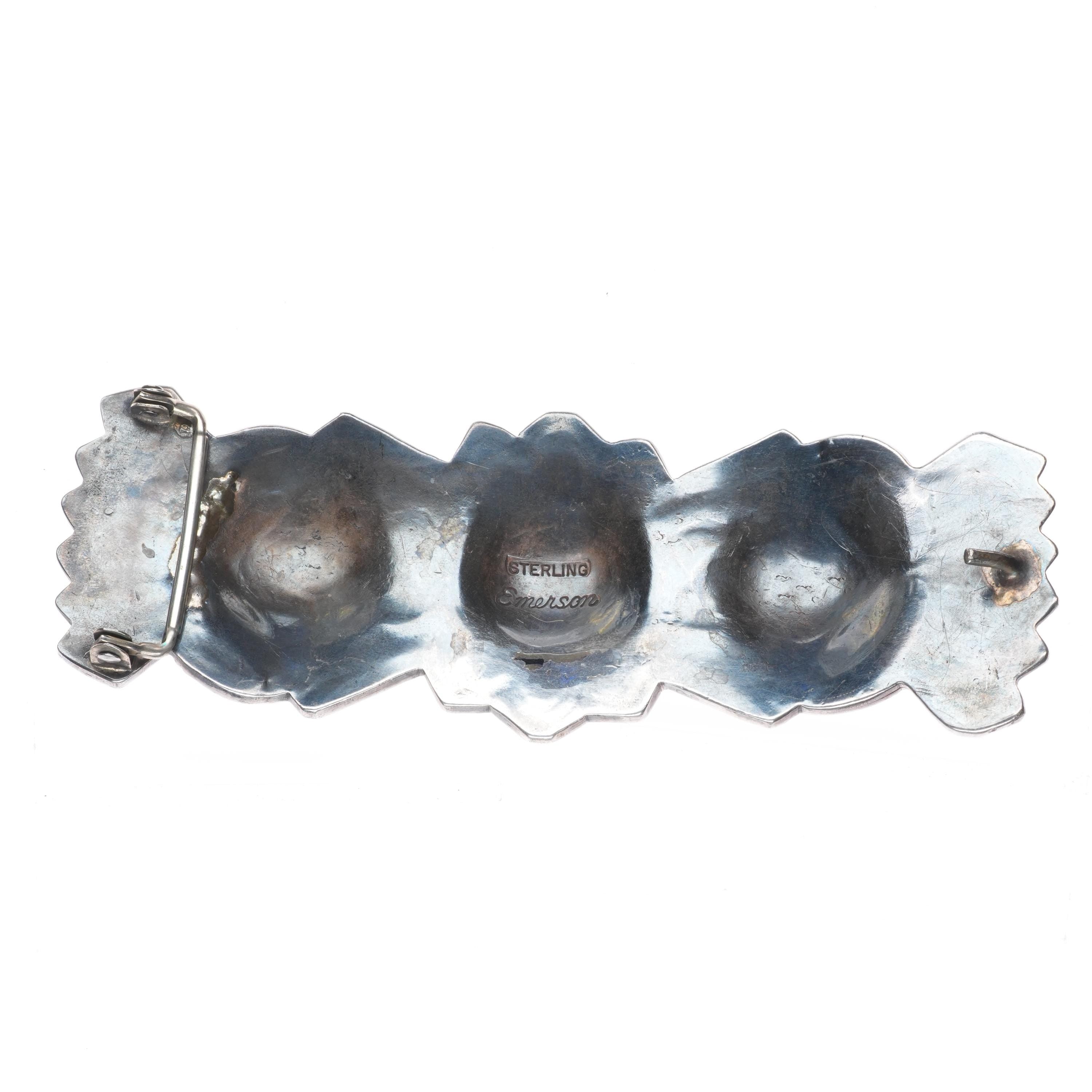 Huge Emerson Bill Navajo sterling silver heavy deep stamped belt buckle. Fits up to a 1.5" belt, fully functional with age appropriate wear. Please look at pictures. Tested and guaranteed solid sterling silver.