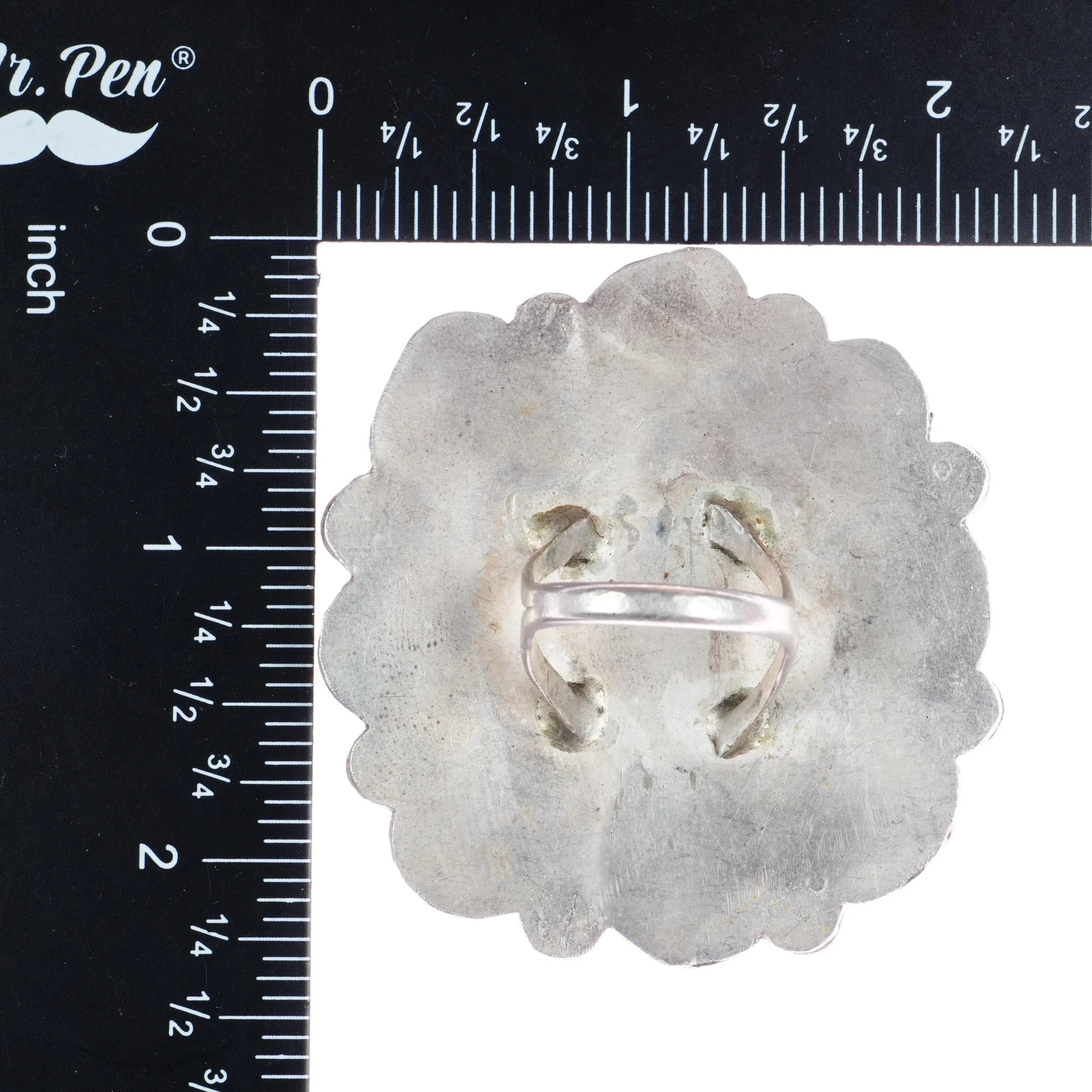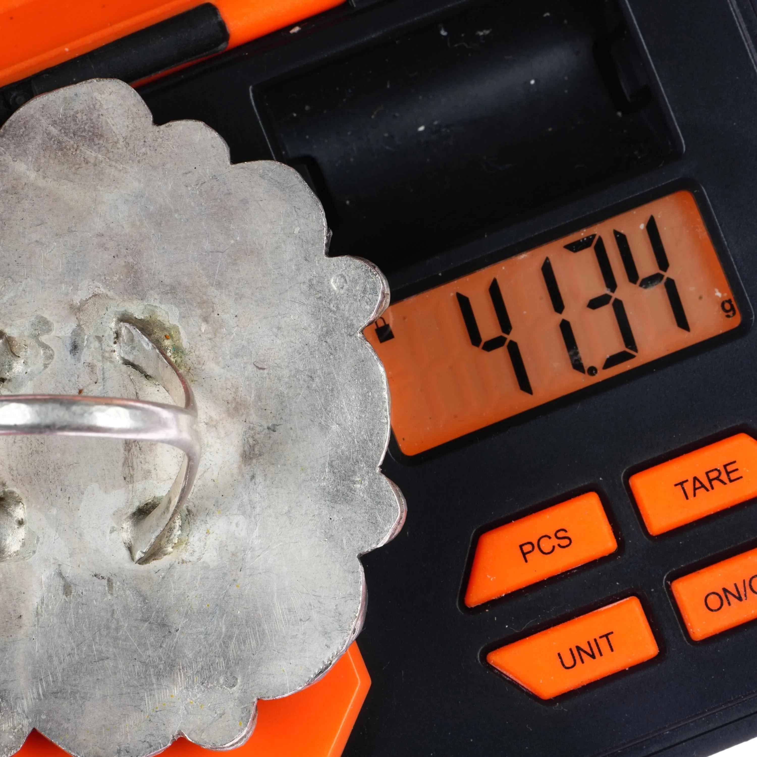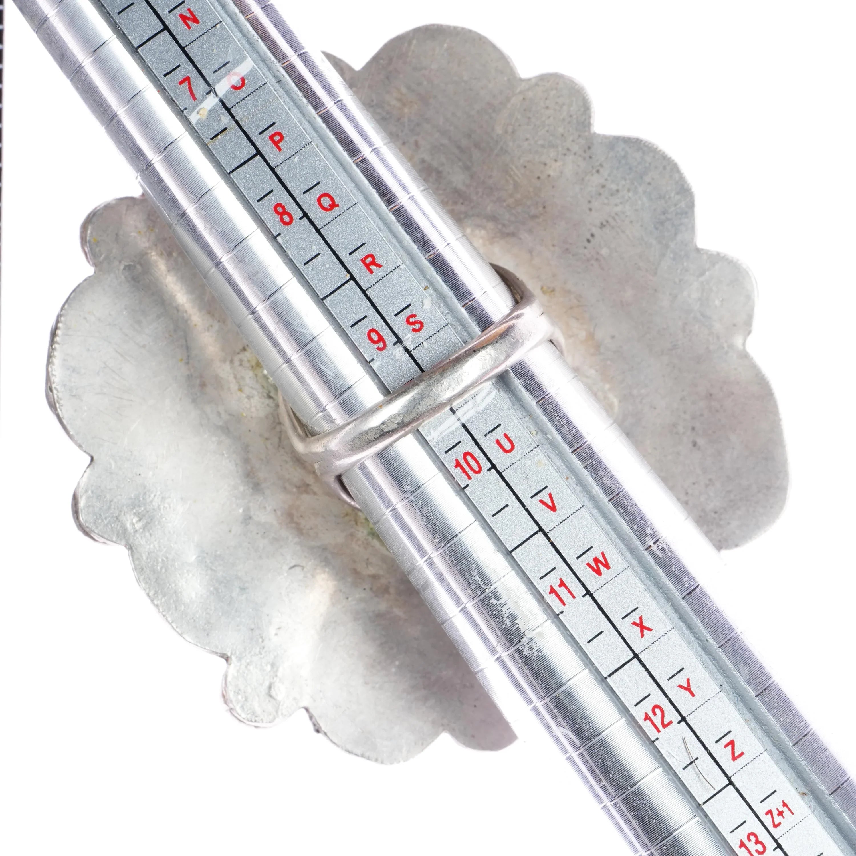 Huge sz9.5 Vintage Navajo silver turquoise cluster ring. Solid sterling silver, weight and measurements in pictures. No markings. Nice old ring from the third quarter of the 20th century.
