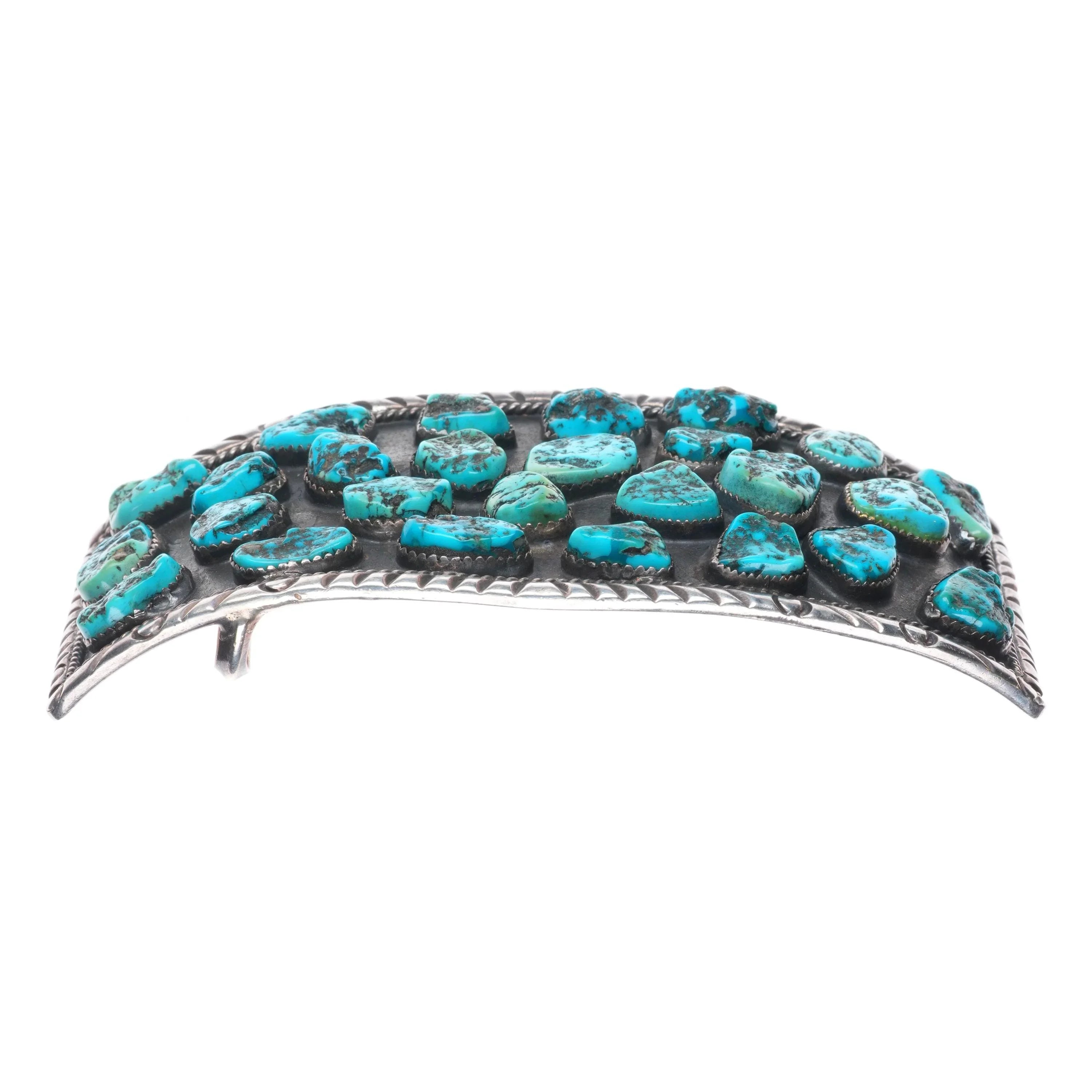 Huge vintage Navajo sterling silver turquoise nugget cluster belt buckle