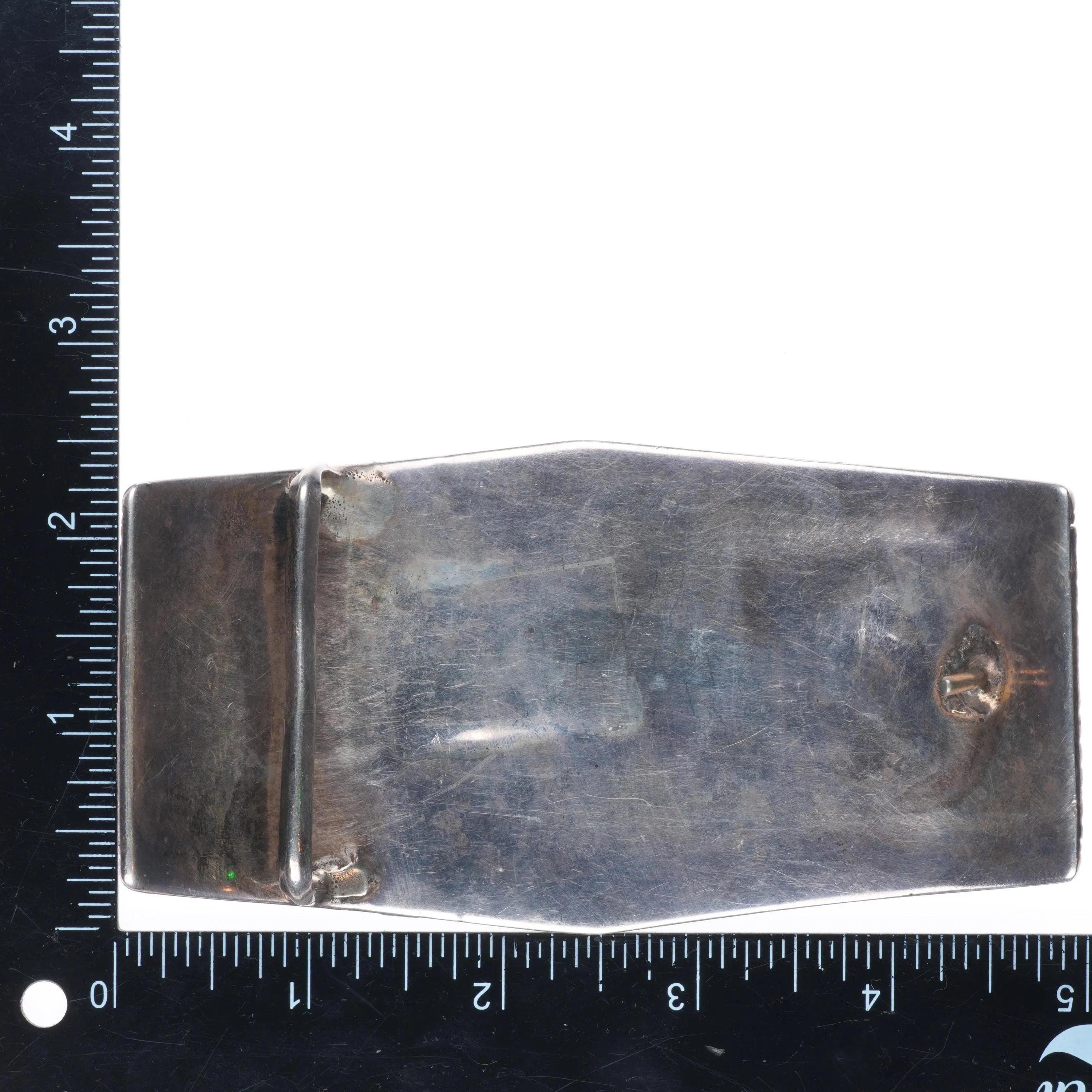Huge vintage Navajo sterling silver turquoise nugget cluster belt buckle. Tested and guaranteed solid sterling silver, fits a 2" wide belt. No issues, some expected wear. Circa 1960‘s-1970‘s. Weight and measurements in pictures.
