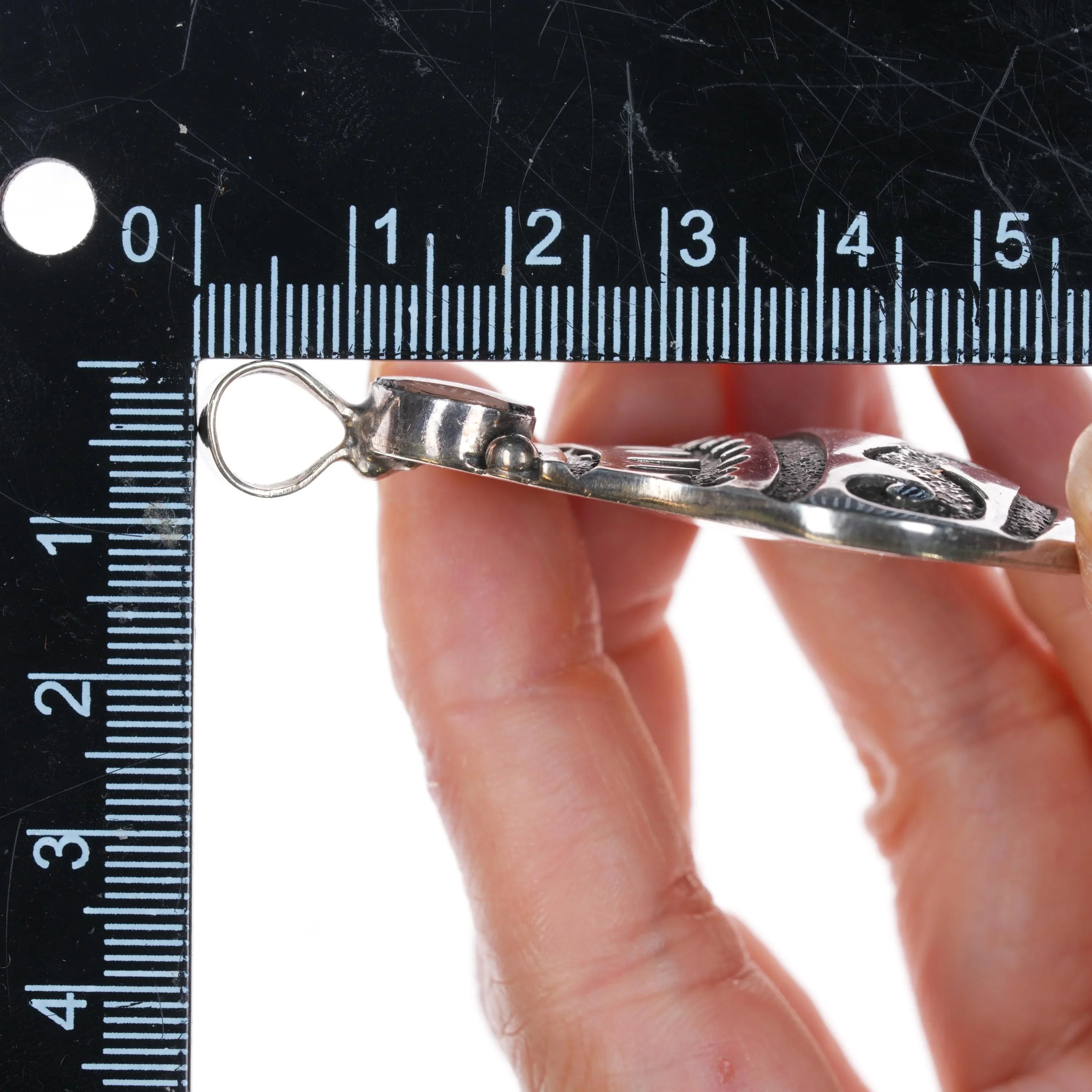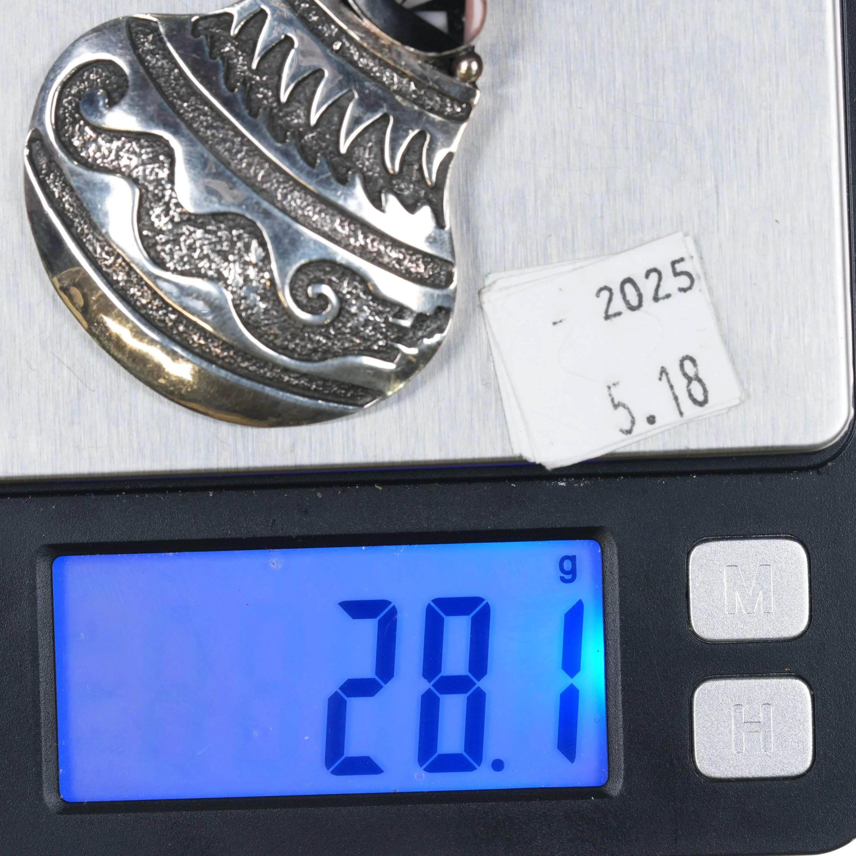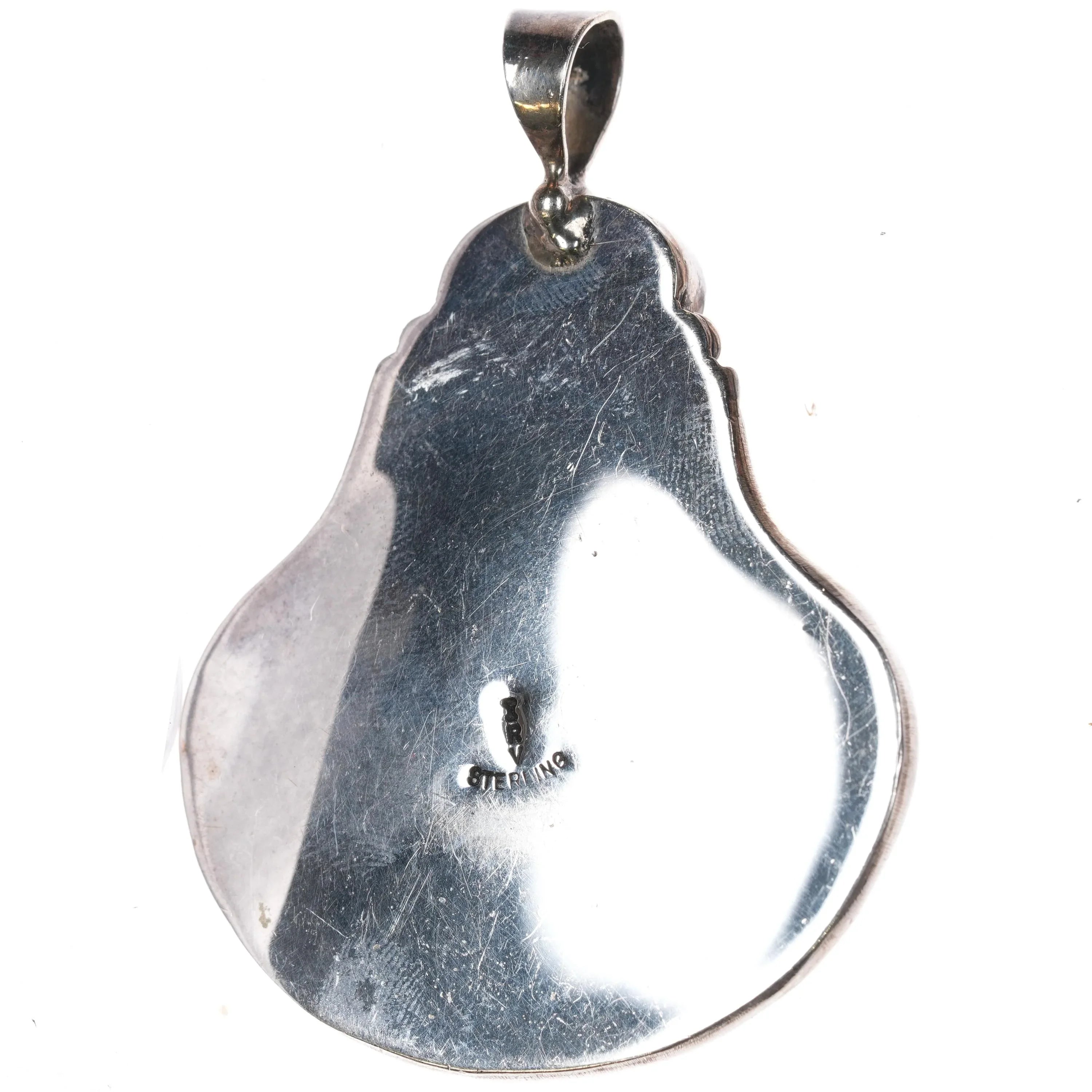 Irv Monte Navajo Sterling silver olla pendant w/jet/coral intarsia inlay