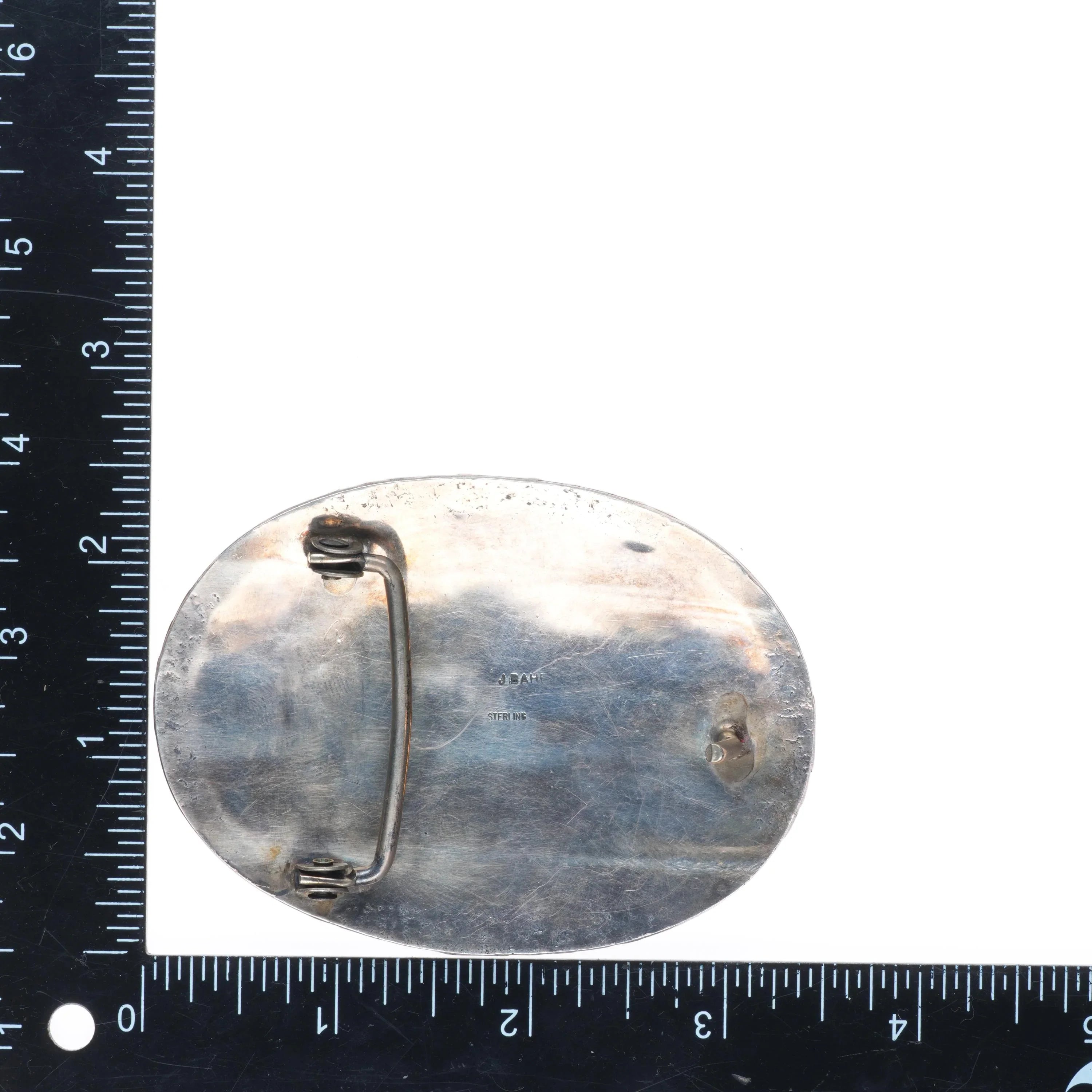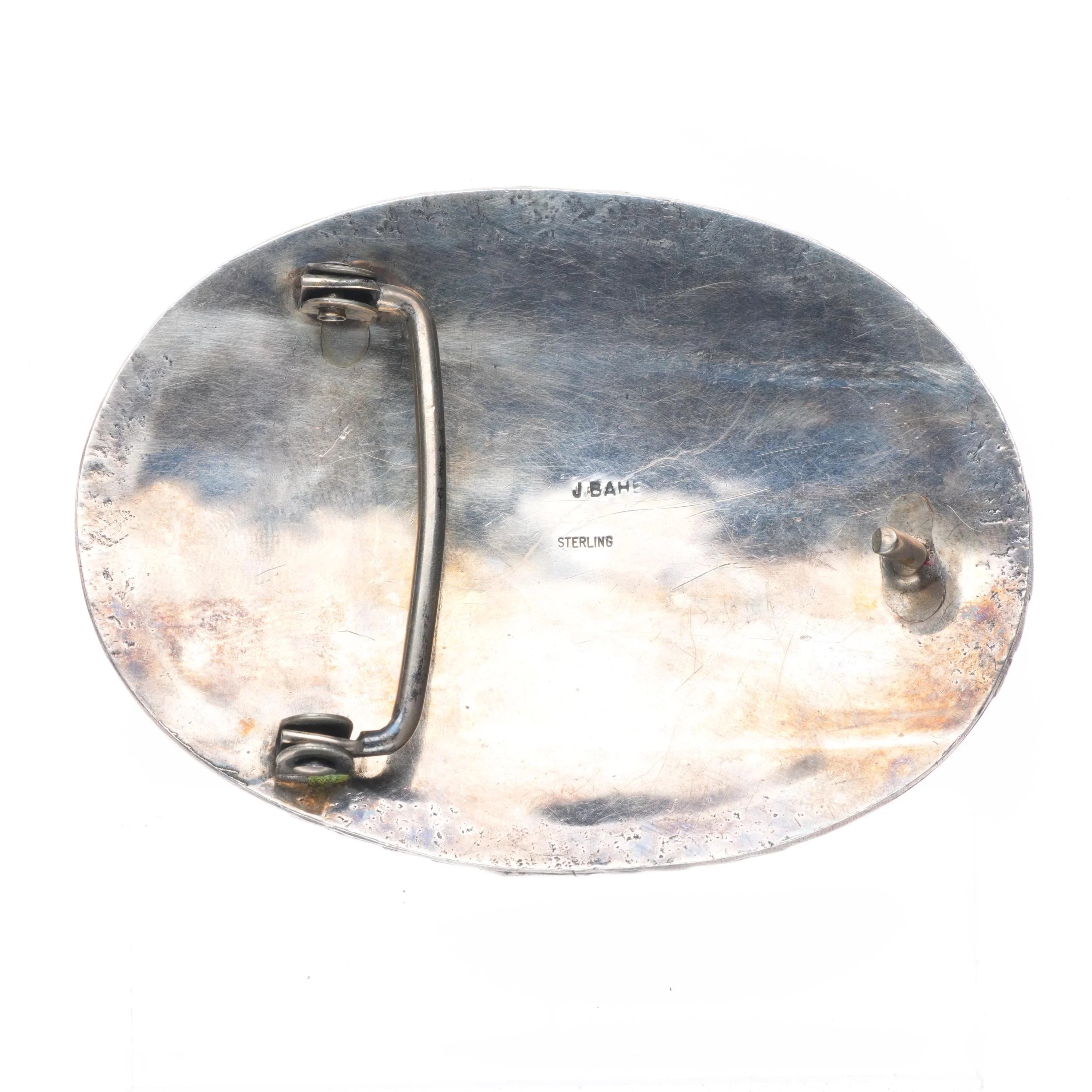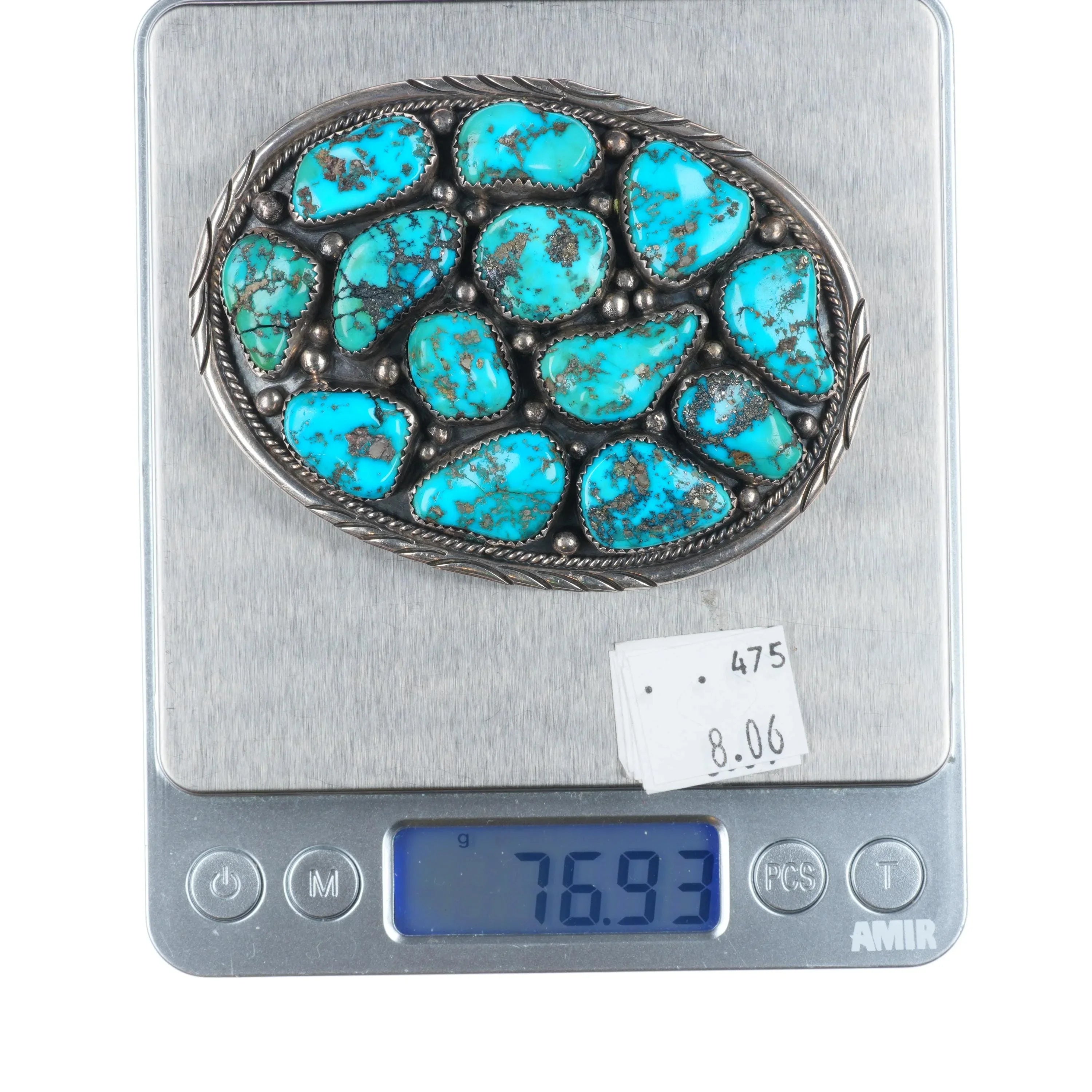 J Bahe vintage Navajo sterling silver pyrite turquoise cluster belt buckle