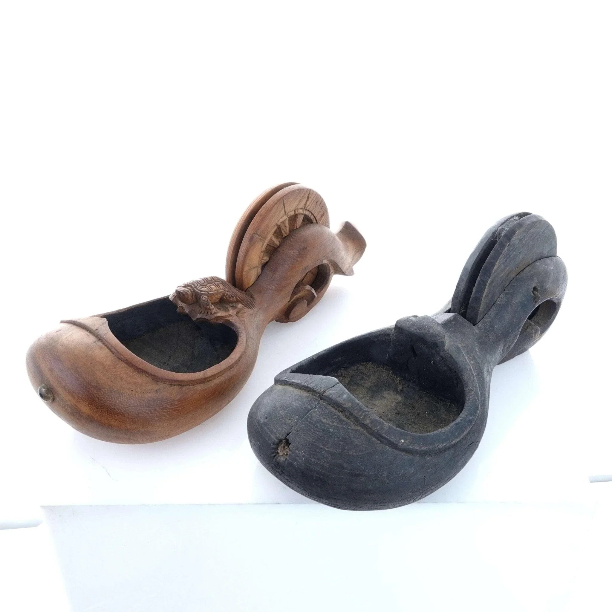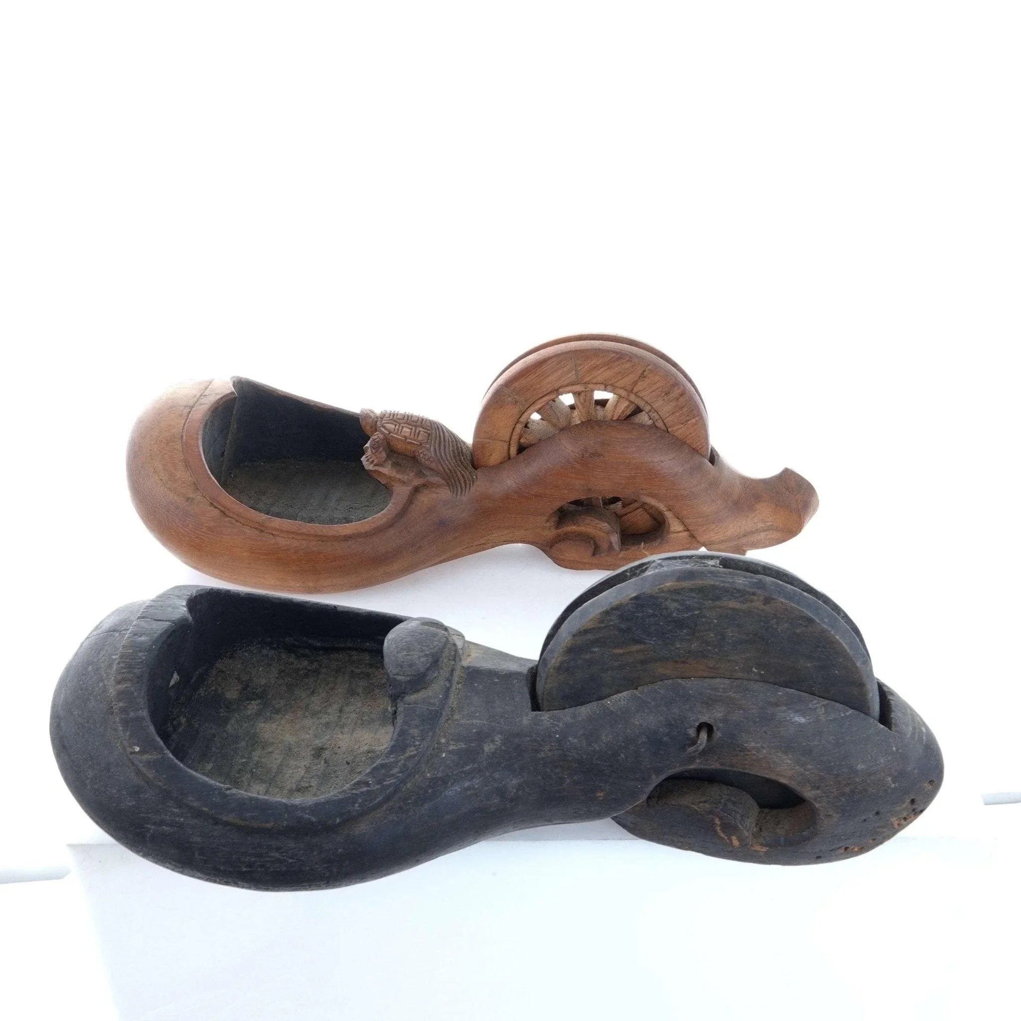 日本Sumitsubo木工粉筆線輪。最長的9.25 英寸長的繩子會穿過裝有粉筆的碗,然後再次穿過碗的末端,那裡有一個洞。黑色的繩子看起來有點舊,至少都是20 世紀上半葉的。