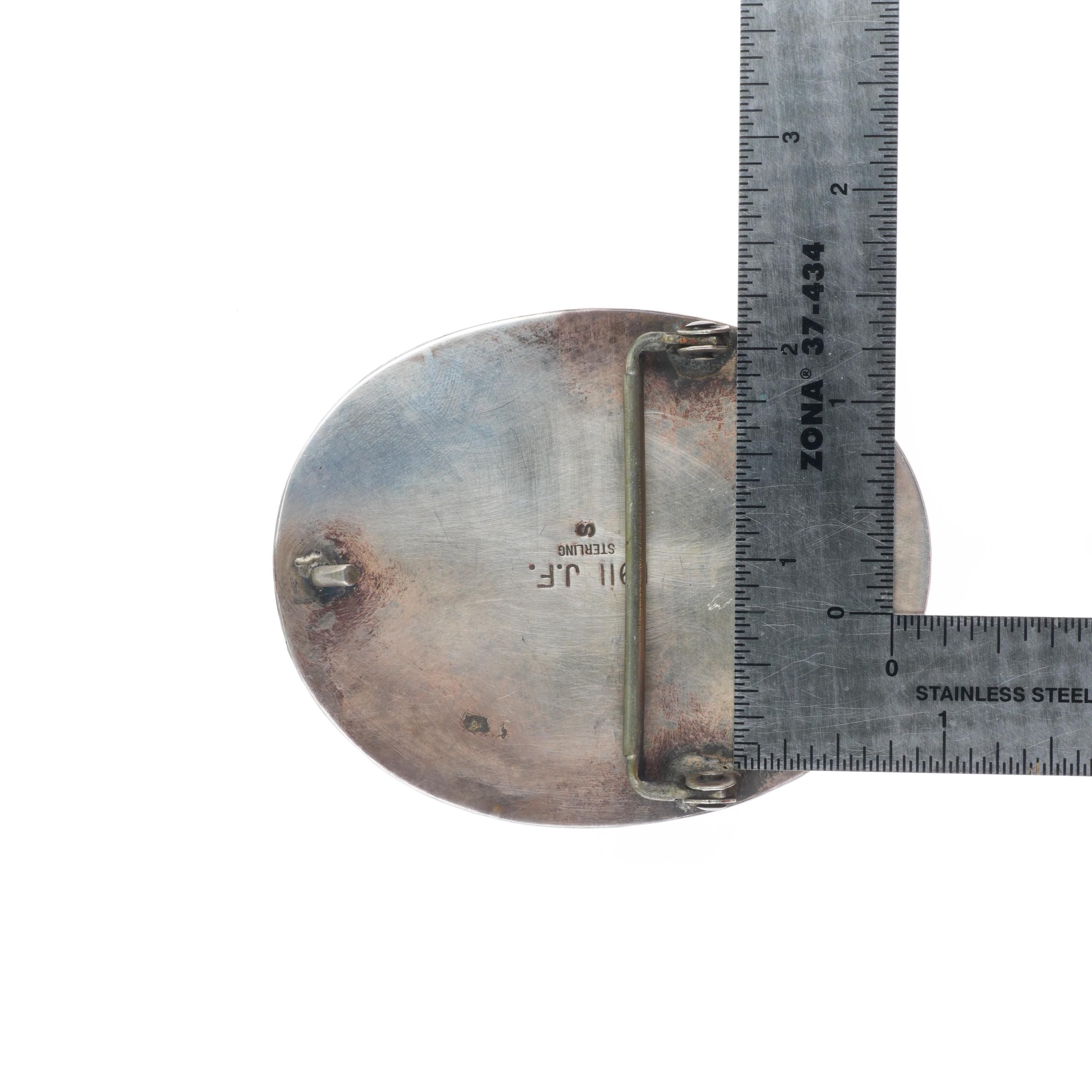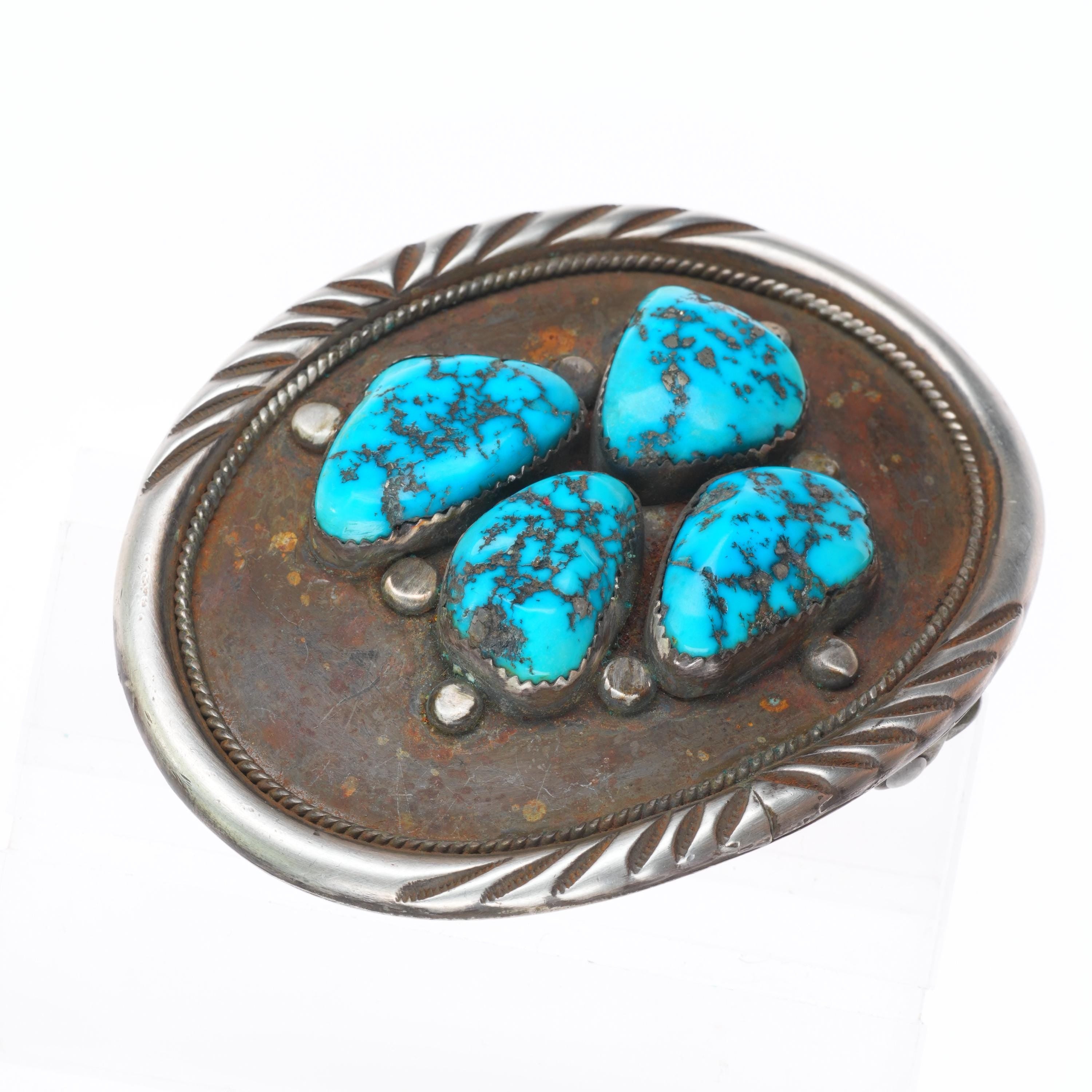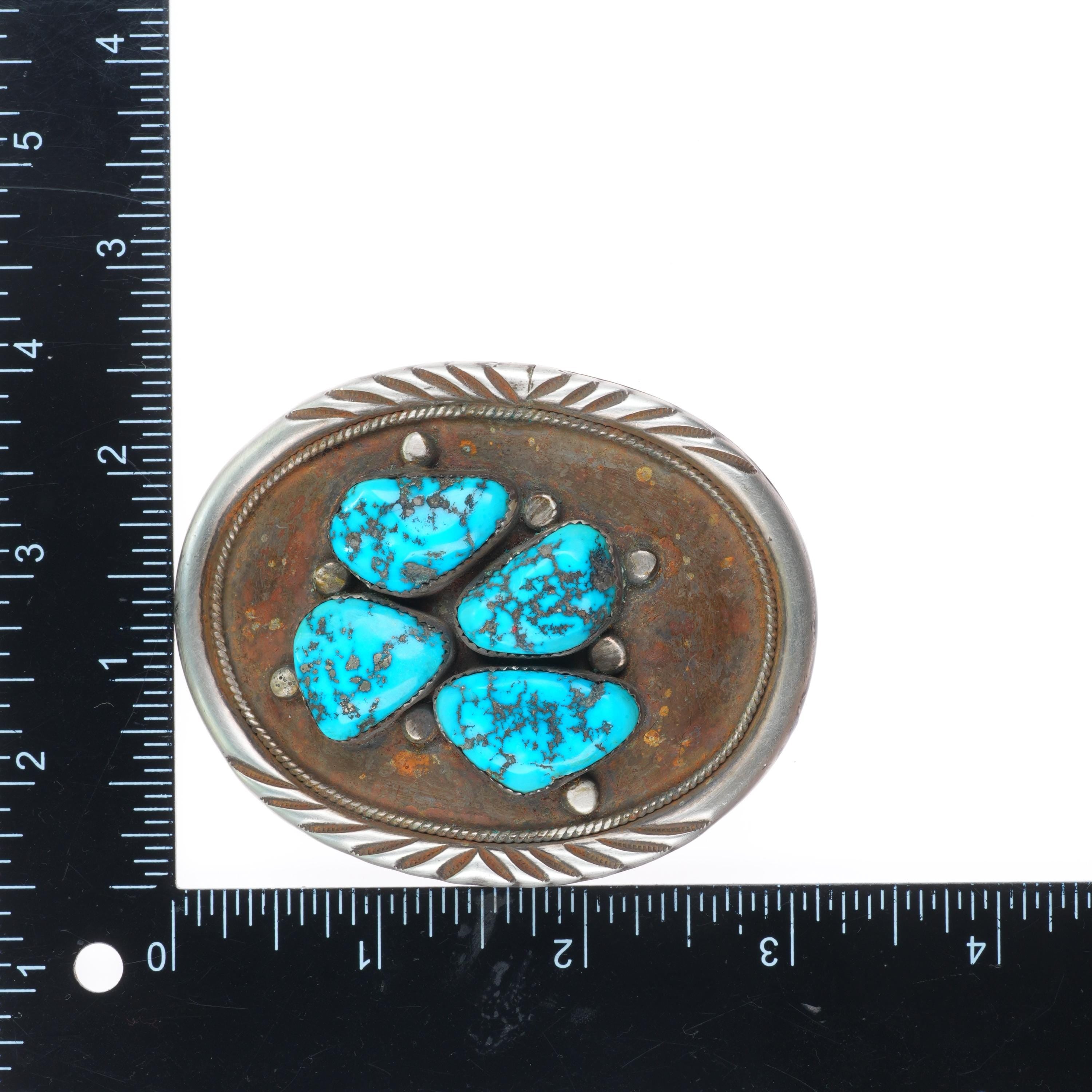 Johnny Frank 1911 Navajo sterling silver belt buckle with turquoise. Tested and guaranteed solid sterling silver with weight and measurements in pictures. Fully functional. All items will likely have some age appropriate/expected wear, the older they are the more wear they should have. Circa last quarter of the 20th century.. Fits a 2" belt.