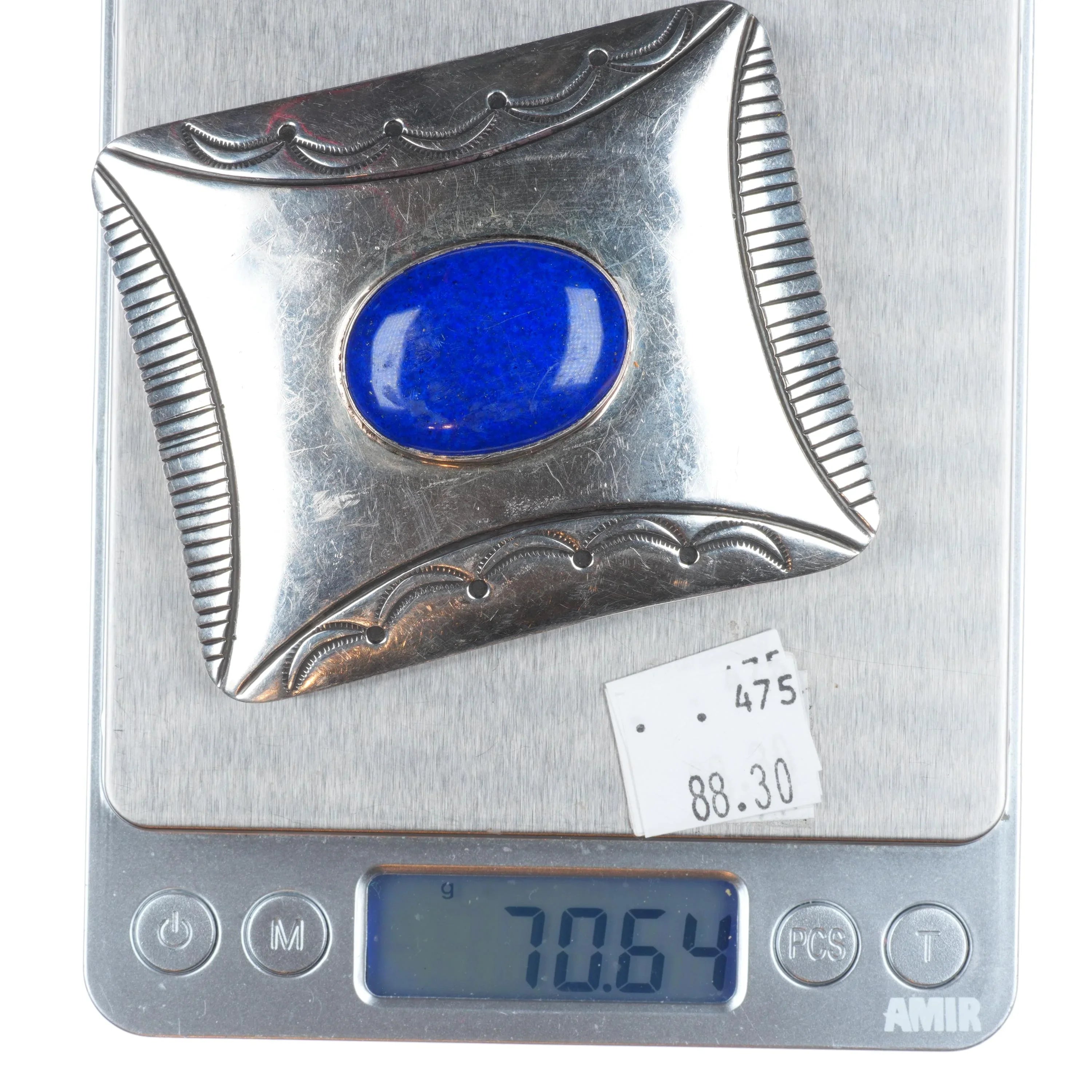 Kee Joe Benally Navajo sterling silver lapis modernist belt buckle vintage, fits up to a 1.5" wide belt. Tested and guaranteed solid sterling silver. Weight and measurements in pictures, circa last quarter of the 20th century.
