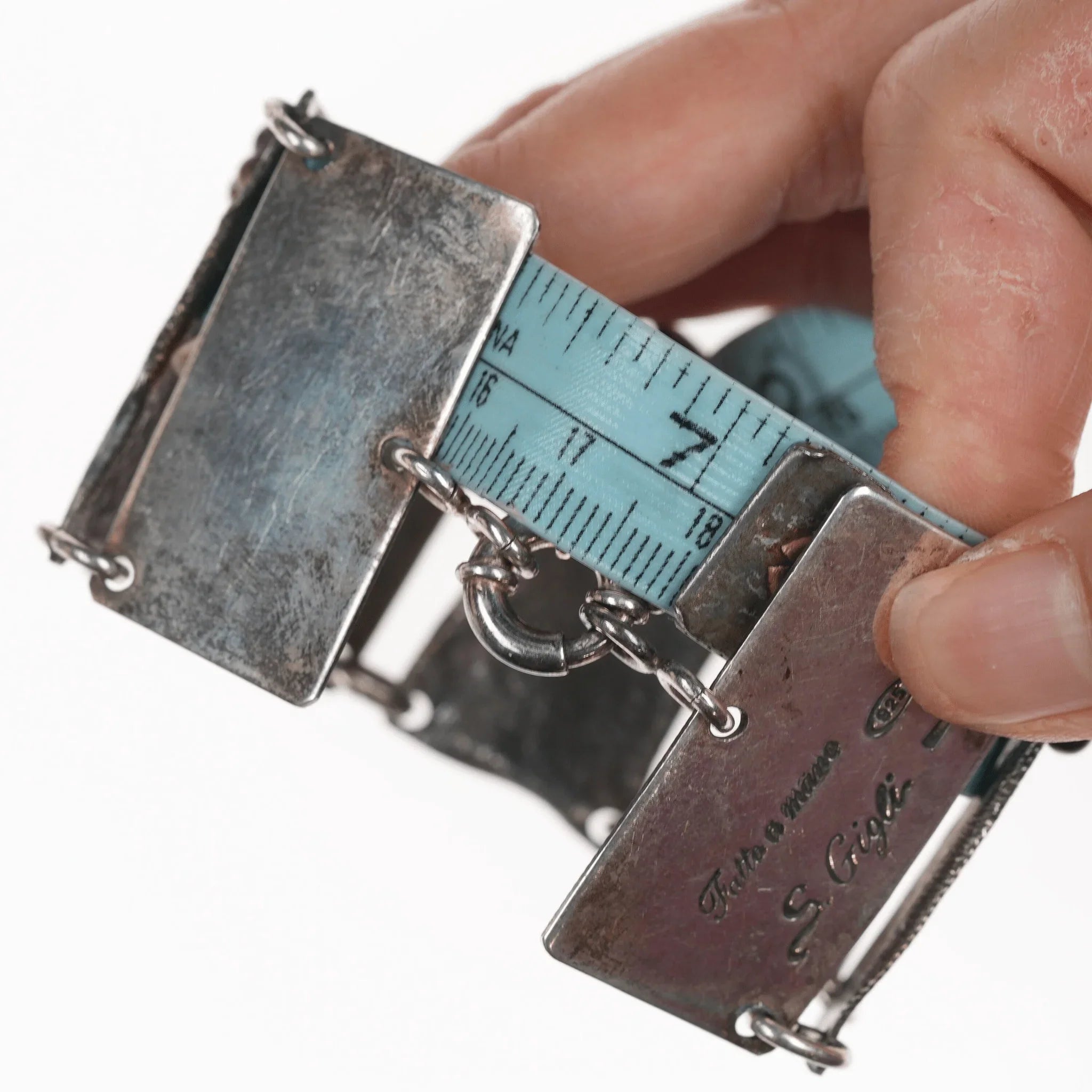 Large Gigli Italian sterling mixed metals bronze accent link bracelet. 1.5" wide, No issues, weight and measurements in pics.