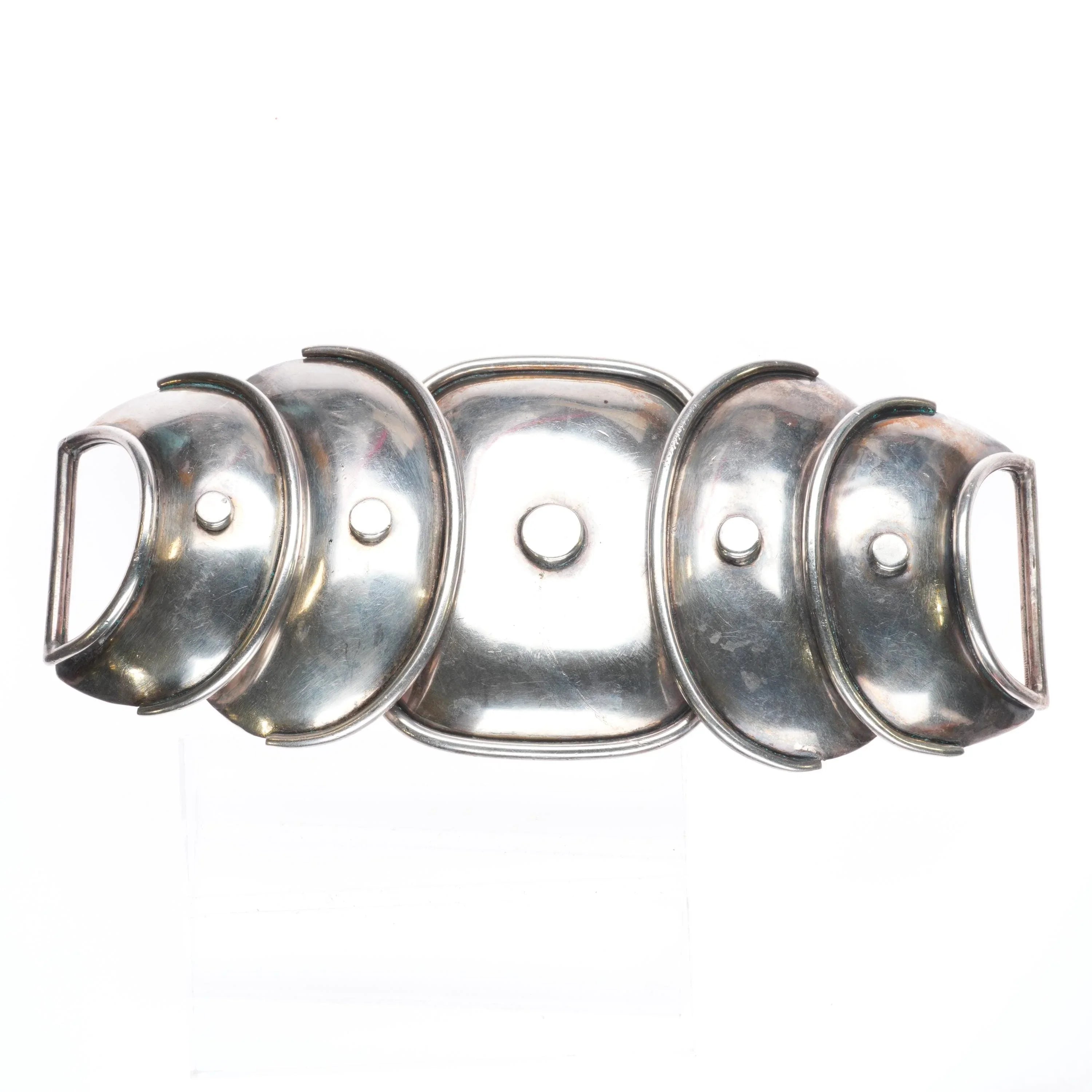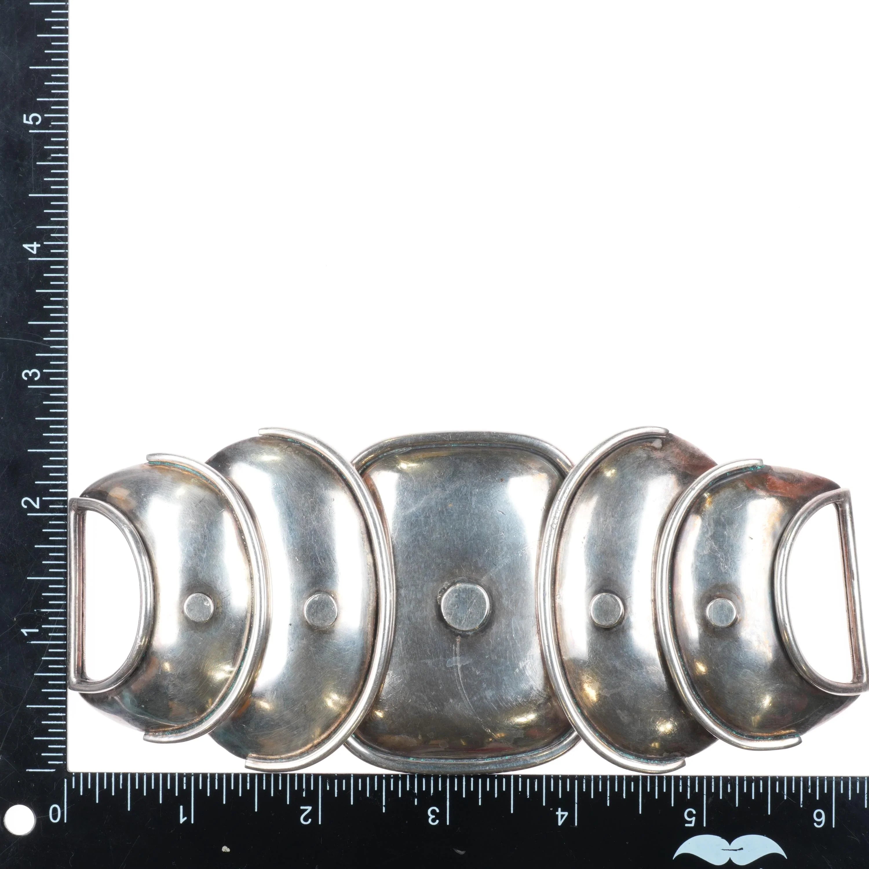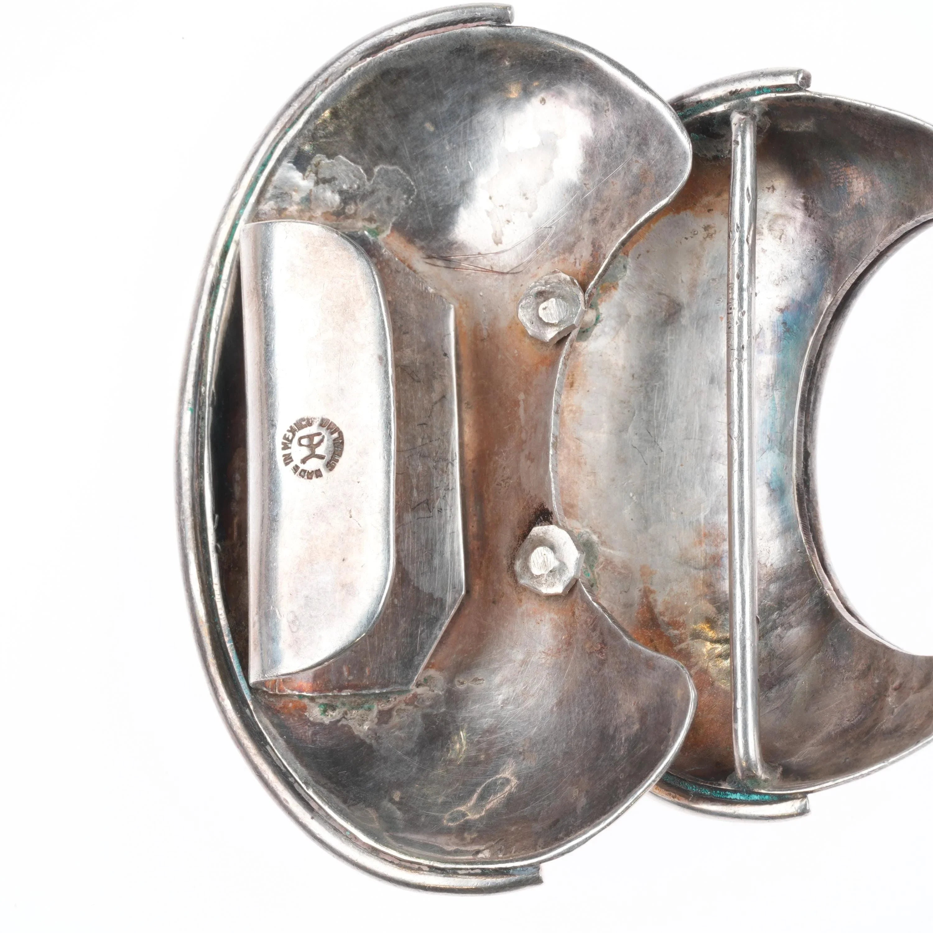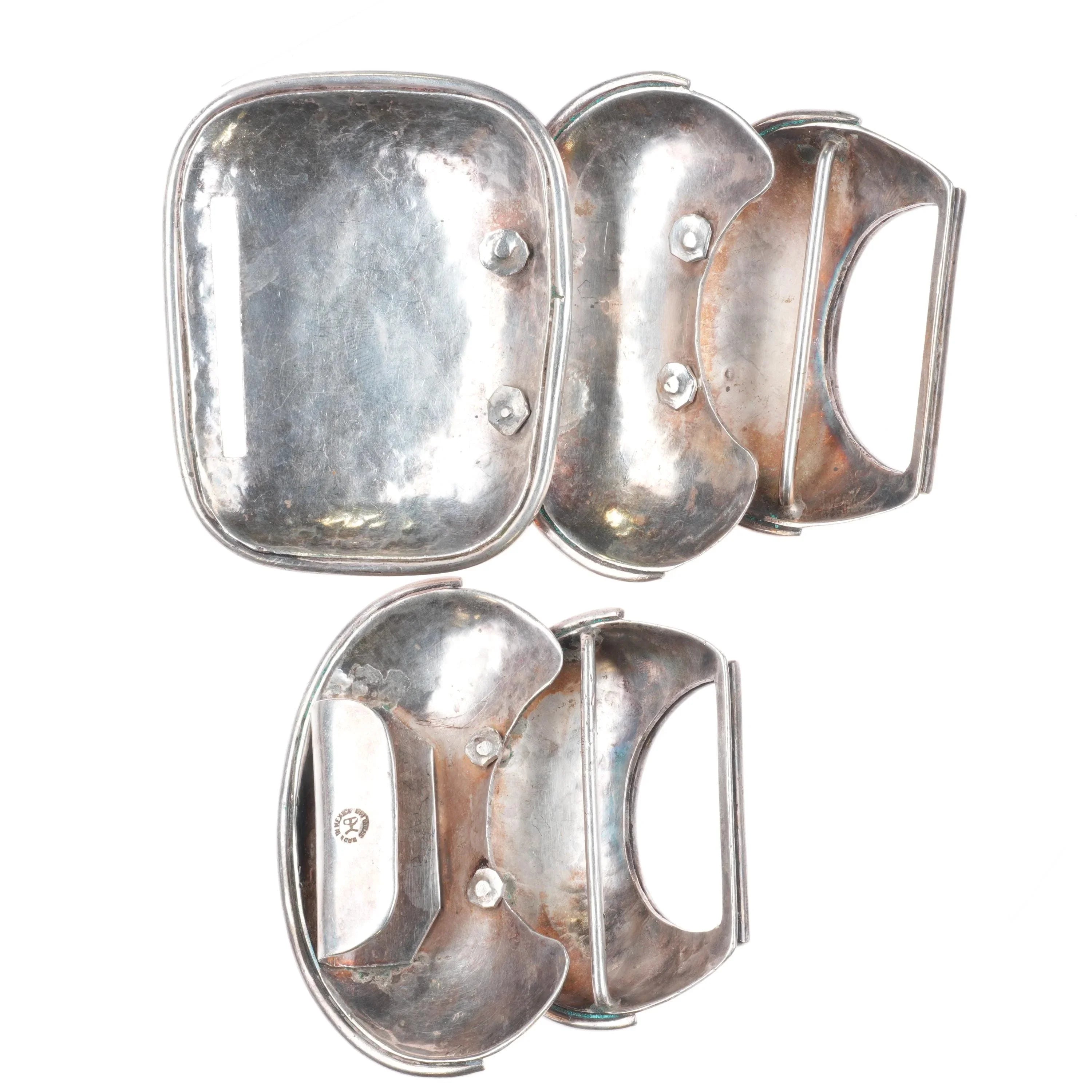 Large Hector Aguilar modernist Mexican sterling silver Armadillo belt buckle