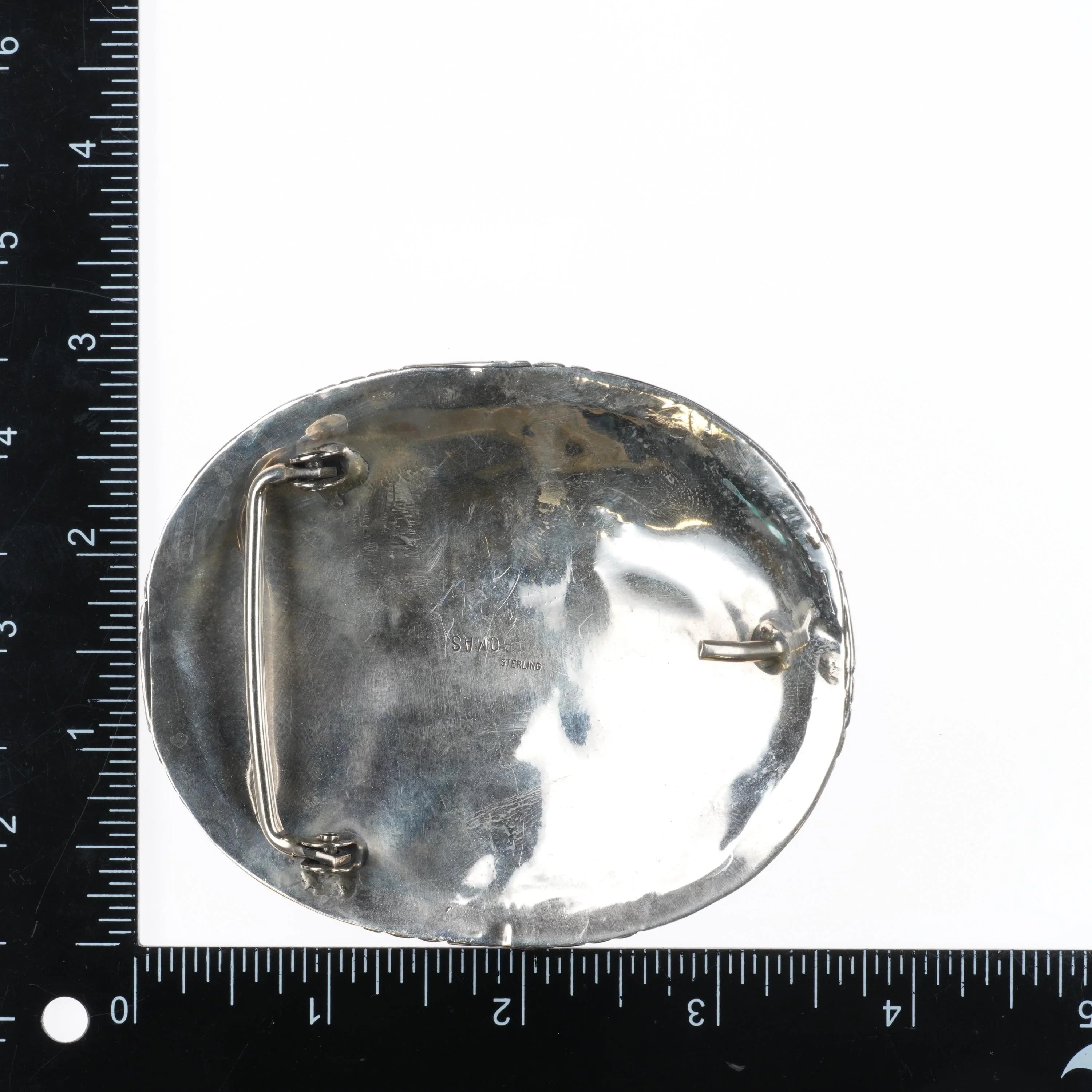 Large Thomas Navajo sterling silver, turquoise, coral bear belt buckle