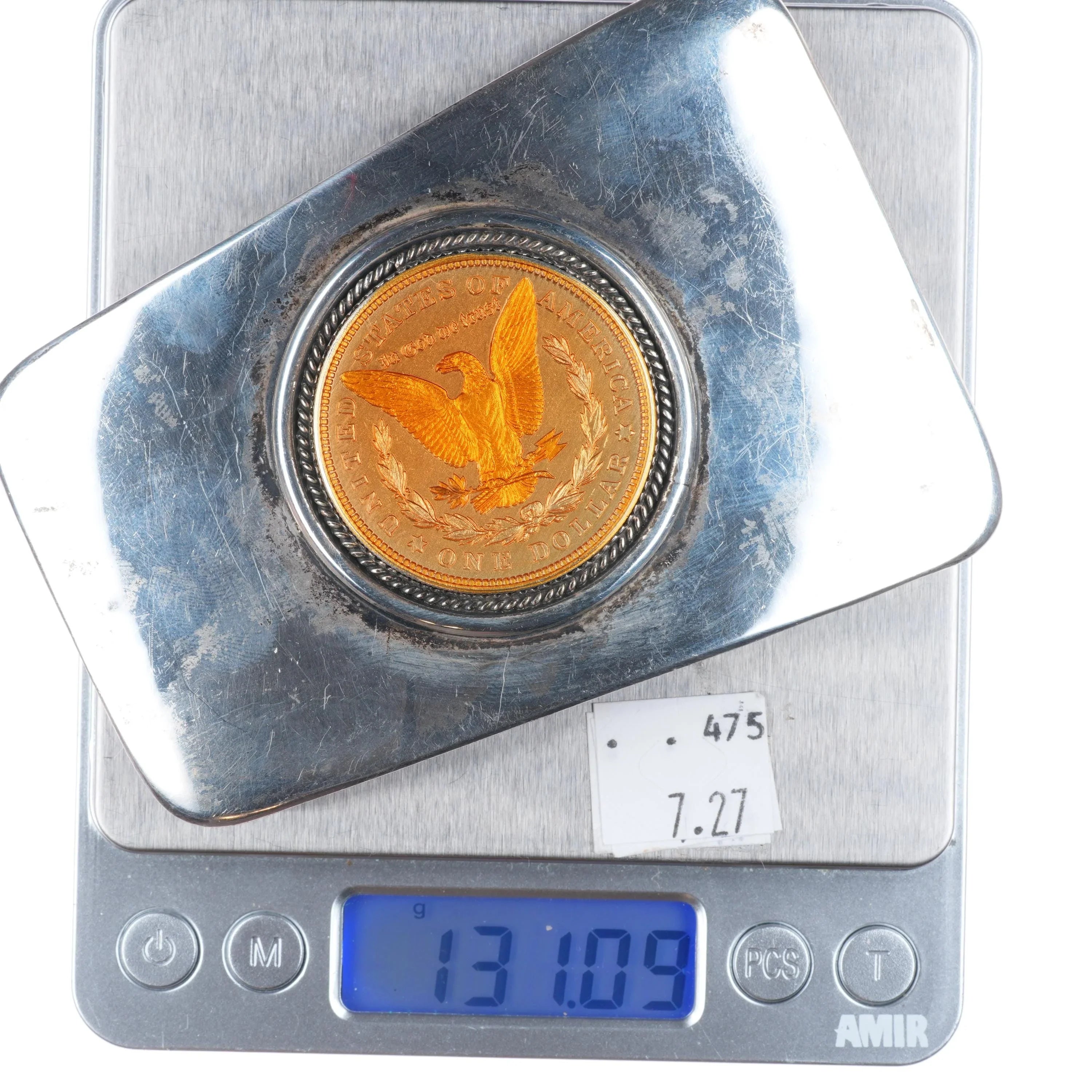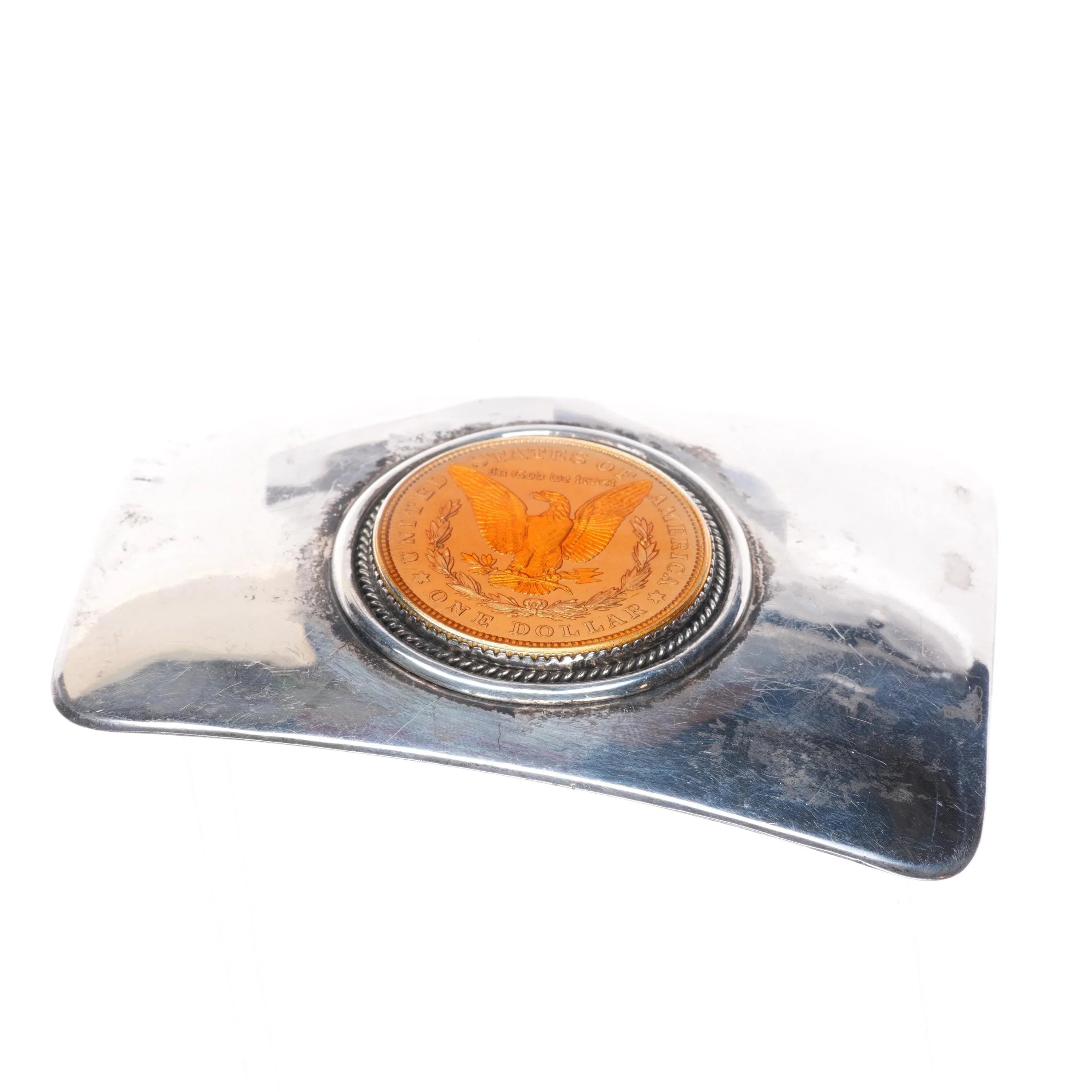 Large Tony Guerro Navajo sterling silver One dollar coin belt buckle