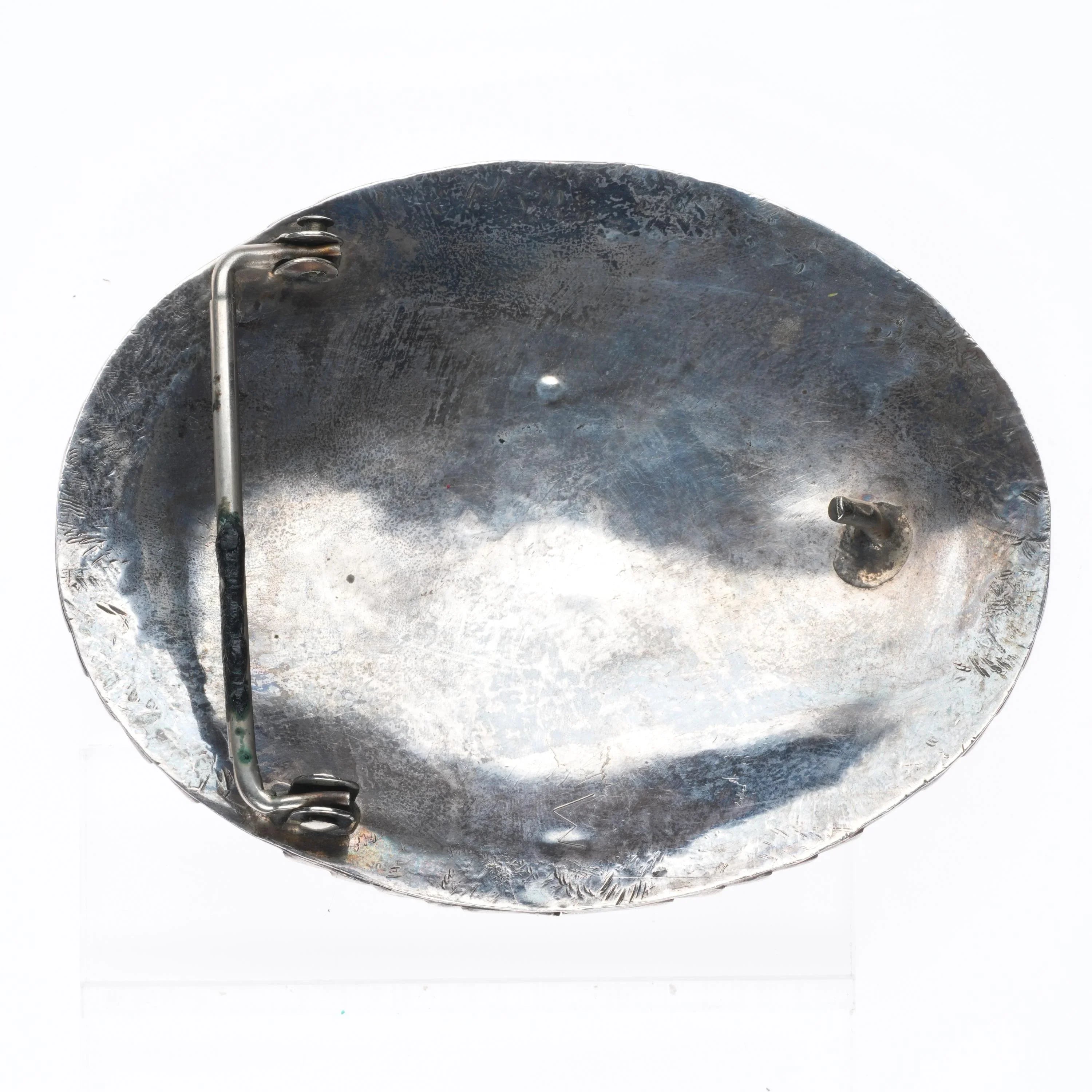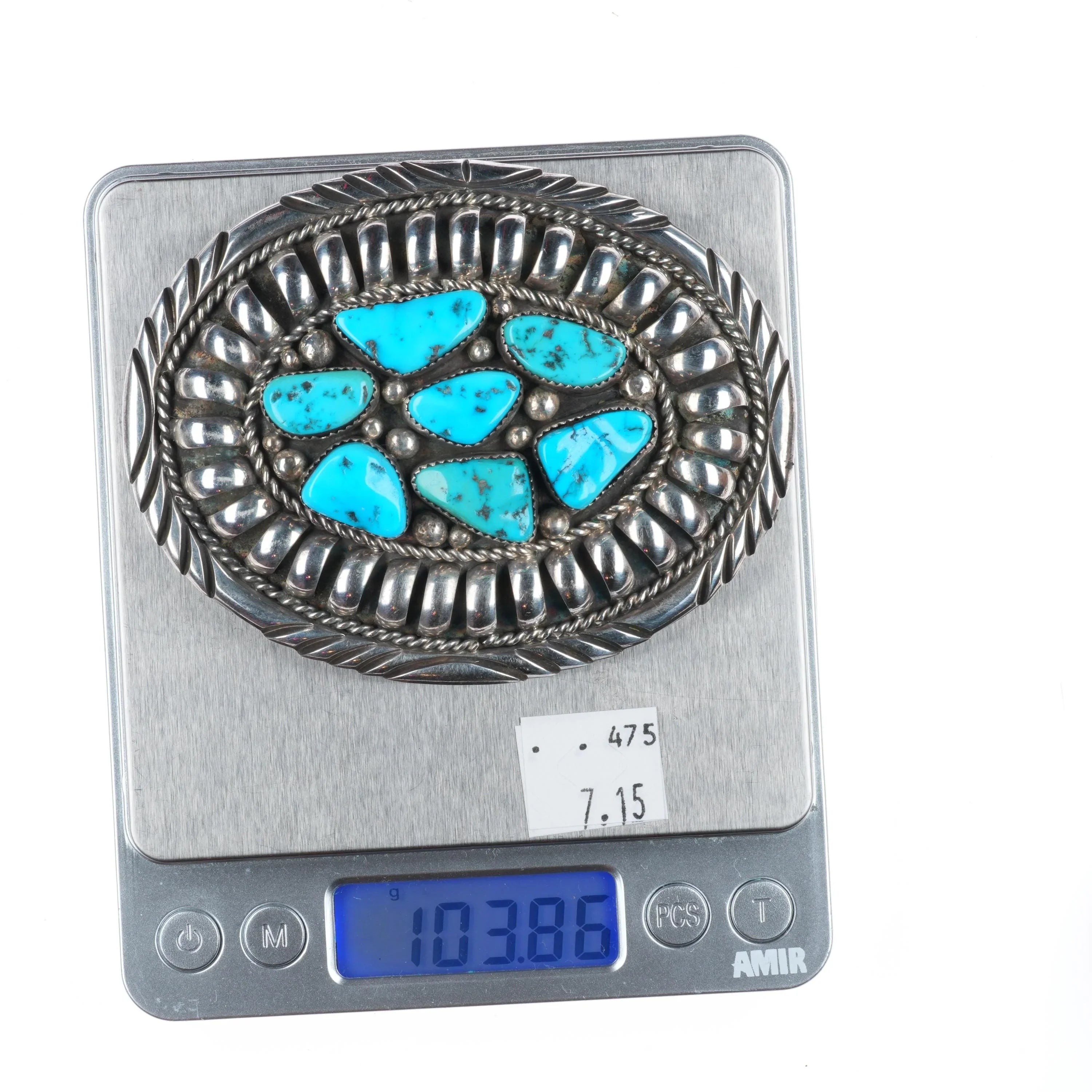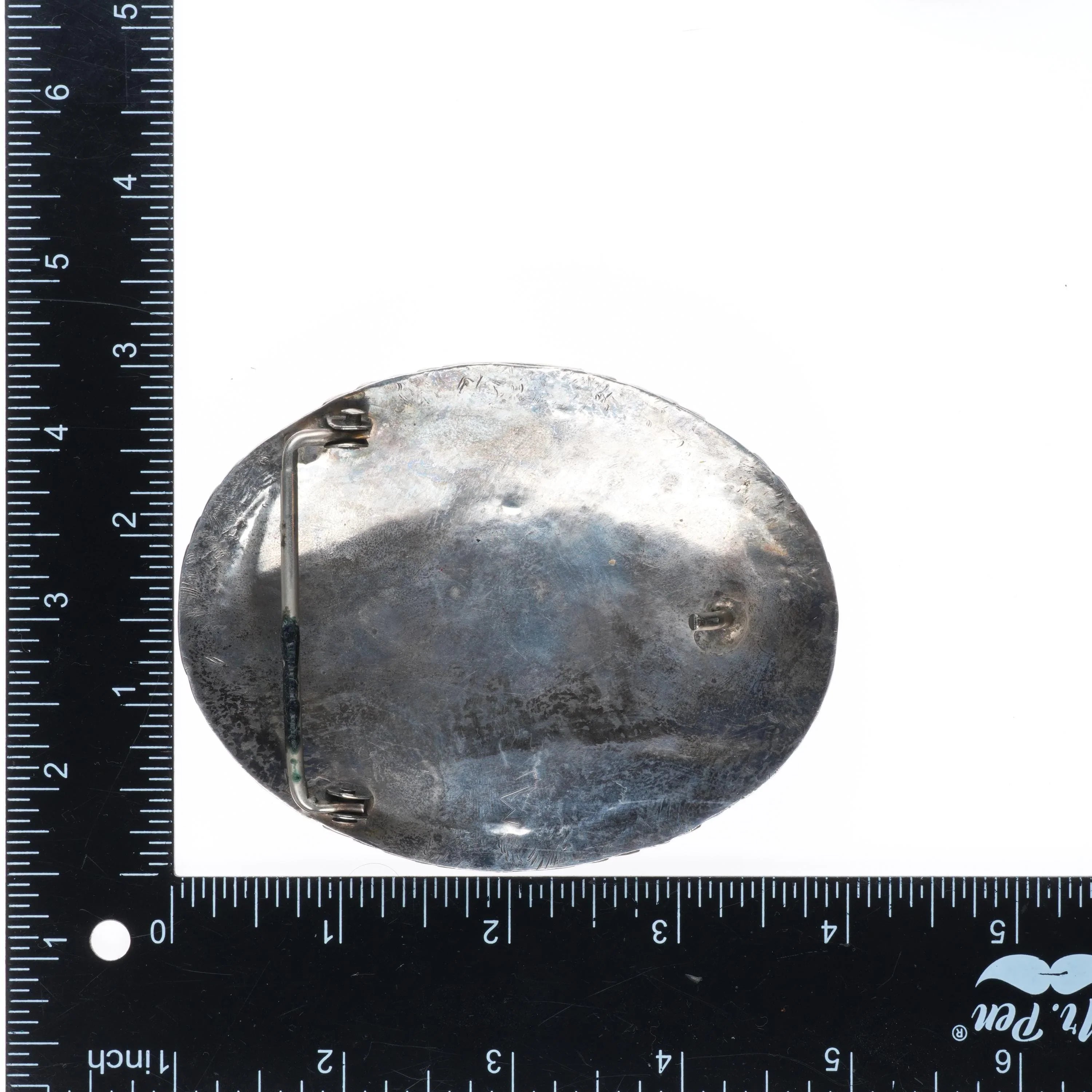 Large Vintage 1960‘s-70‘s Navajo kingman turquoise belt buckle sterling silver. Fits up to a 2" belt. Tested and guaranteed solid sterling silver with weight and measurements in pictures. Fully functional, stones are secure. All items will likely have some expected wear, the older they are the more wear they should have. Circa third quarter of the 20th century. Unmarked, which is common with Native American jewelry of this era.