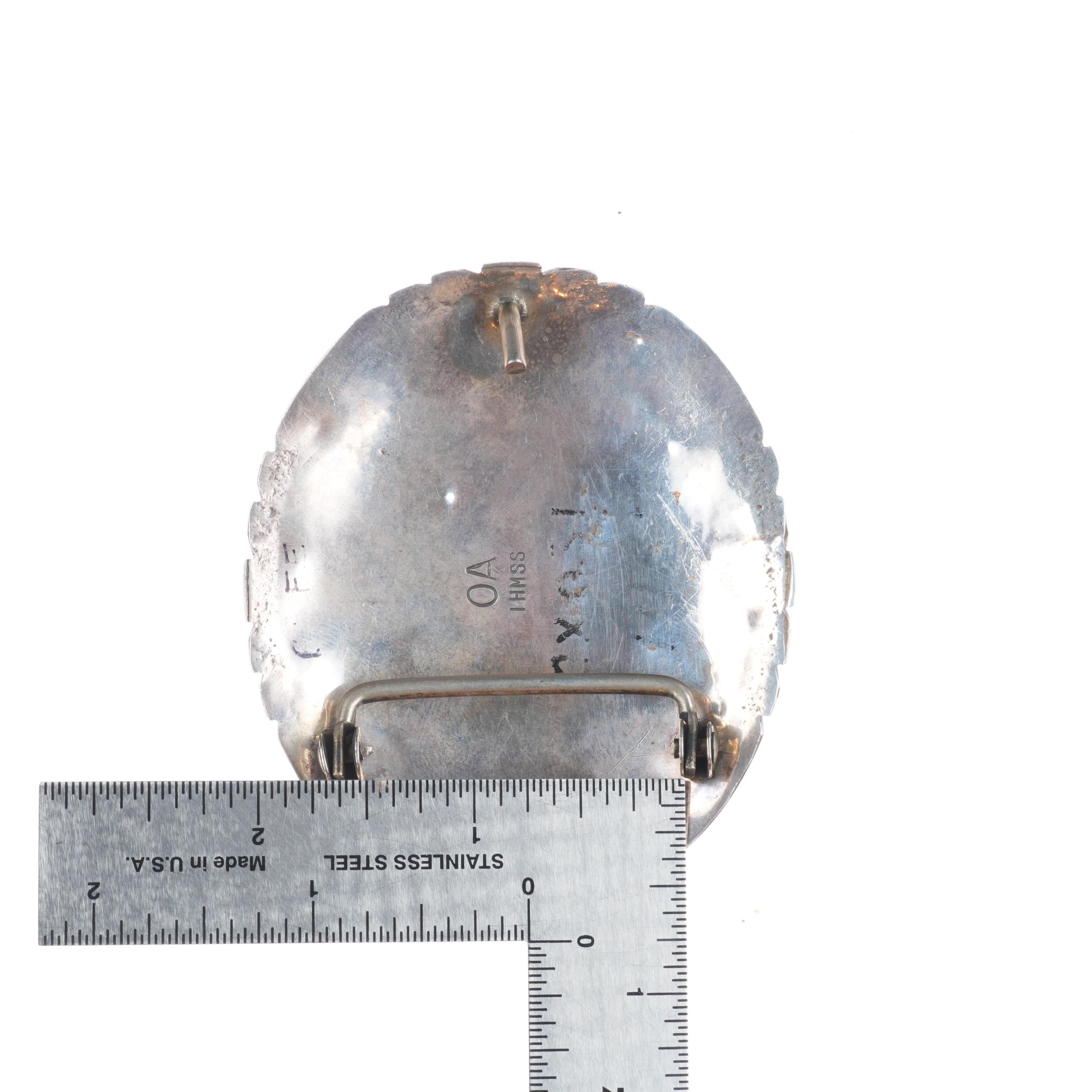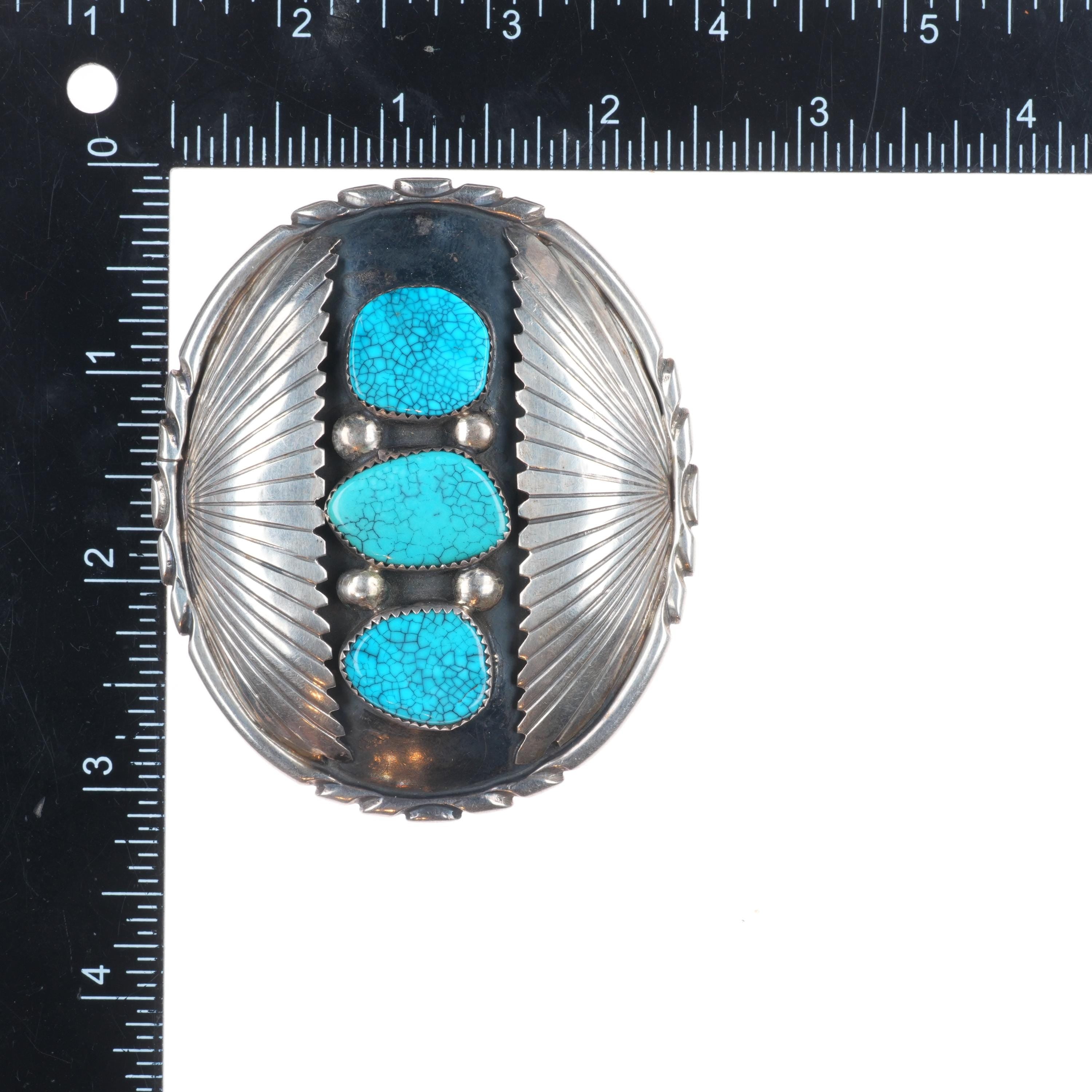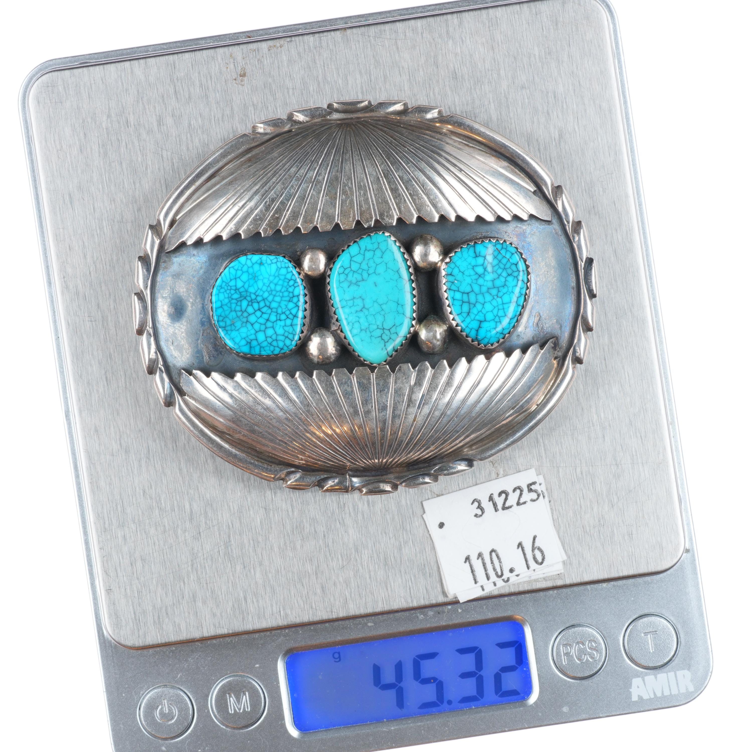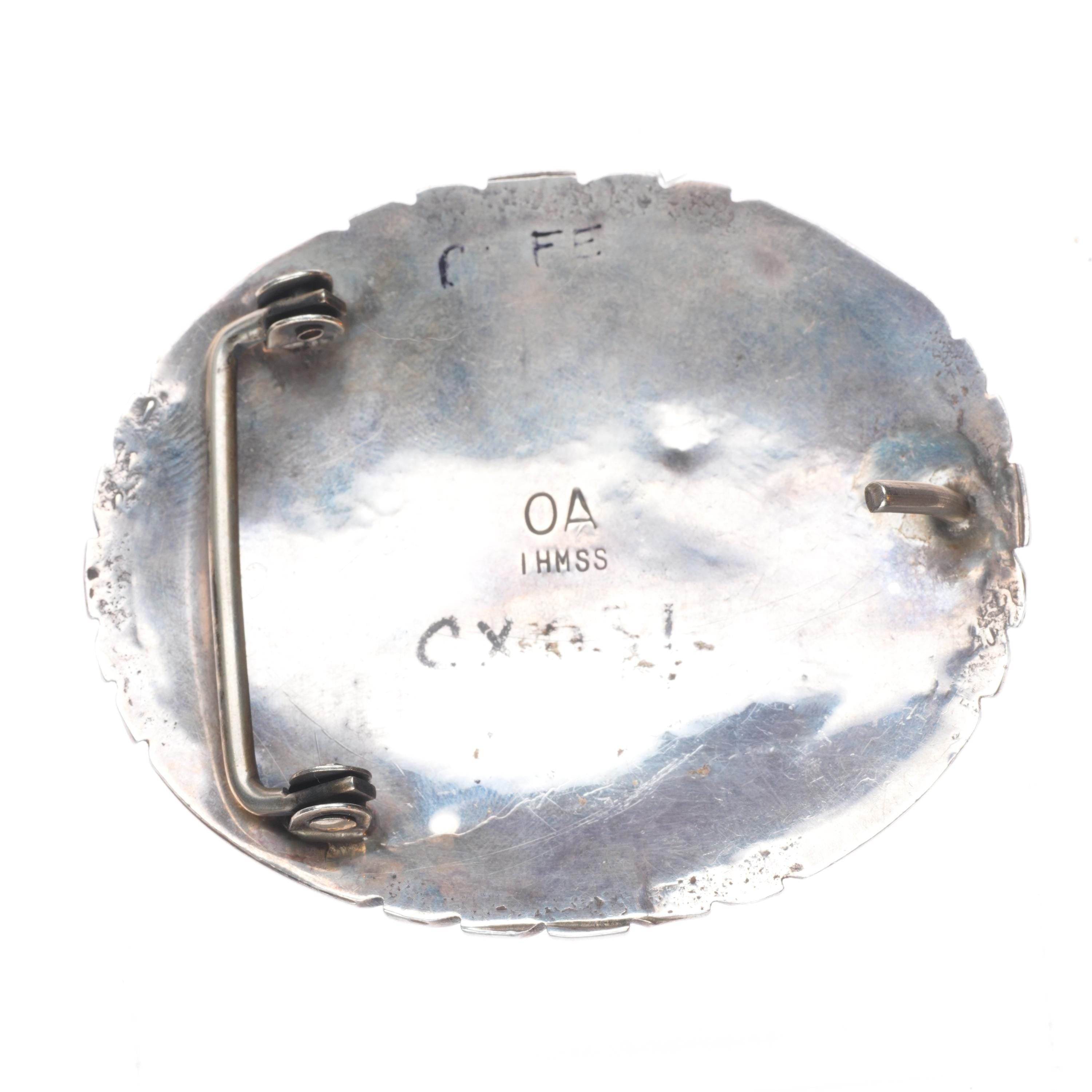 OA Vintage Navajo sterling silver spiderweb turquoise belt buckle