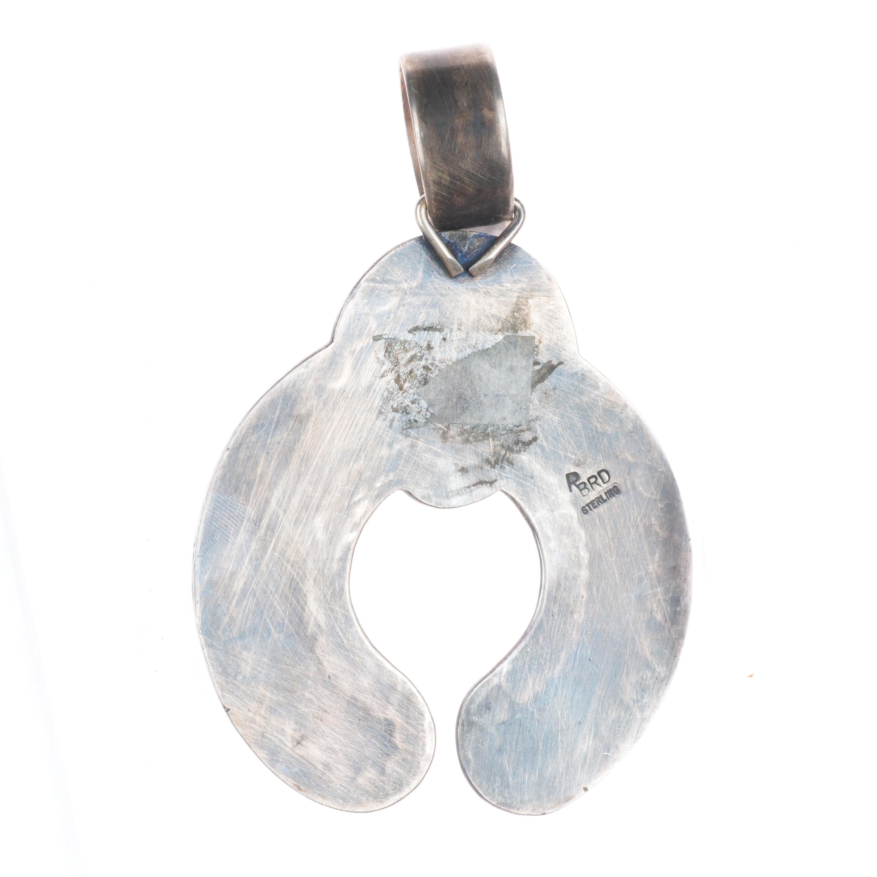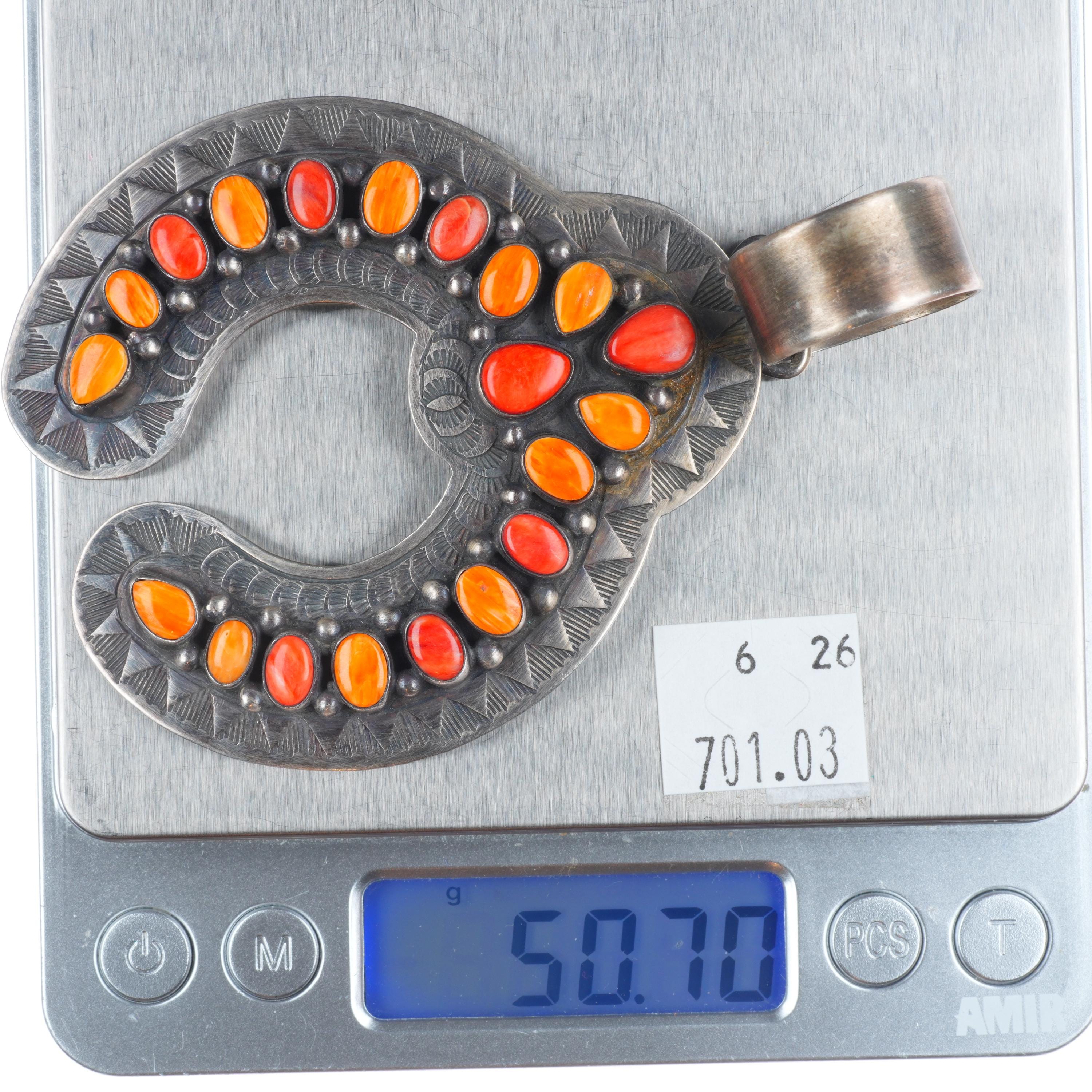 Robert Bird Navajo Large Spiny oyster sterling silver naja cluster pendant, circa last quarter of the 20th century. Selling the pendant shown in good condition with measurements in pictures. Marked as shown, weight and measurements in pictures.