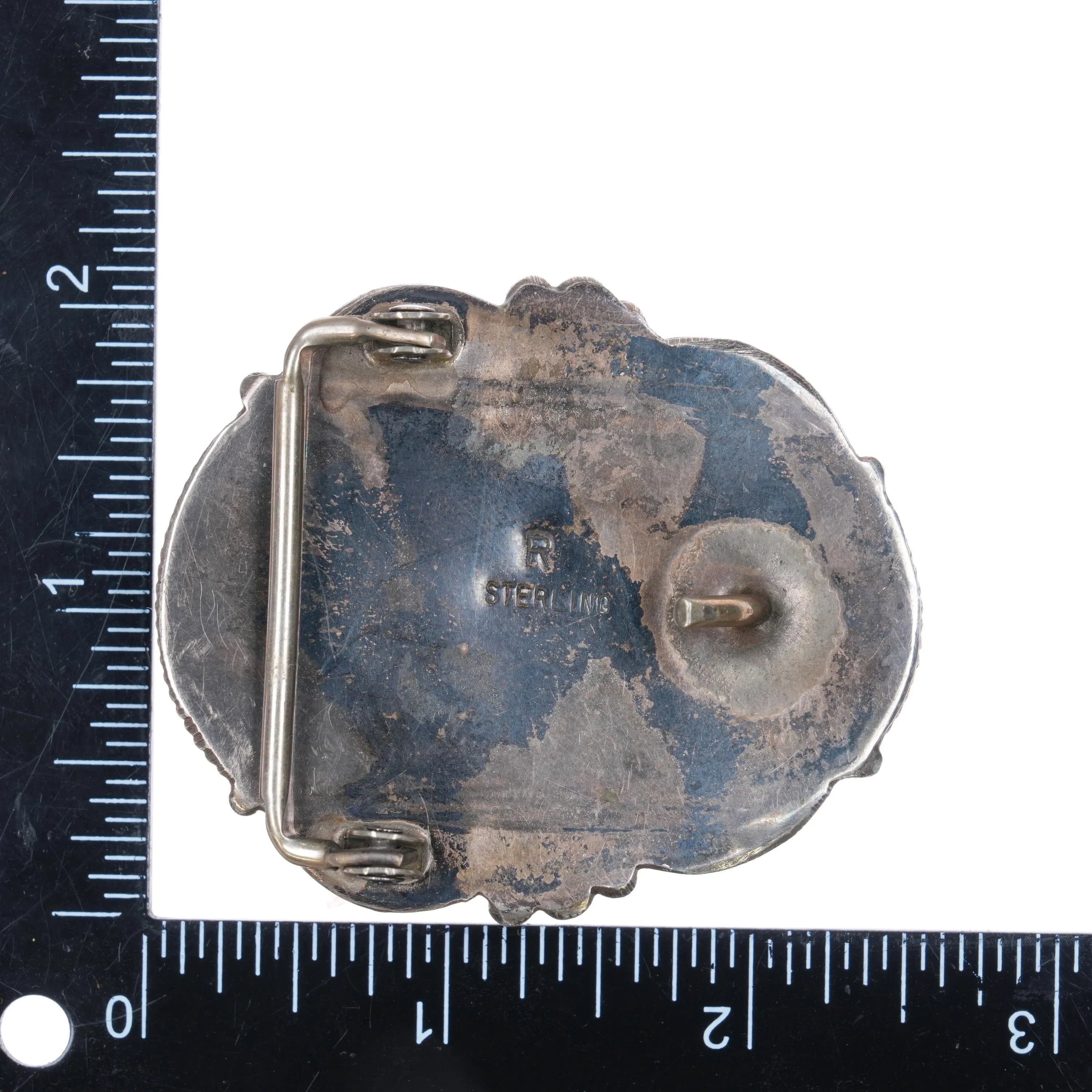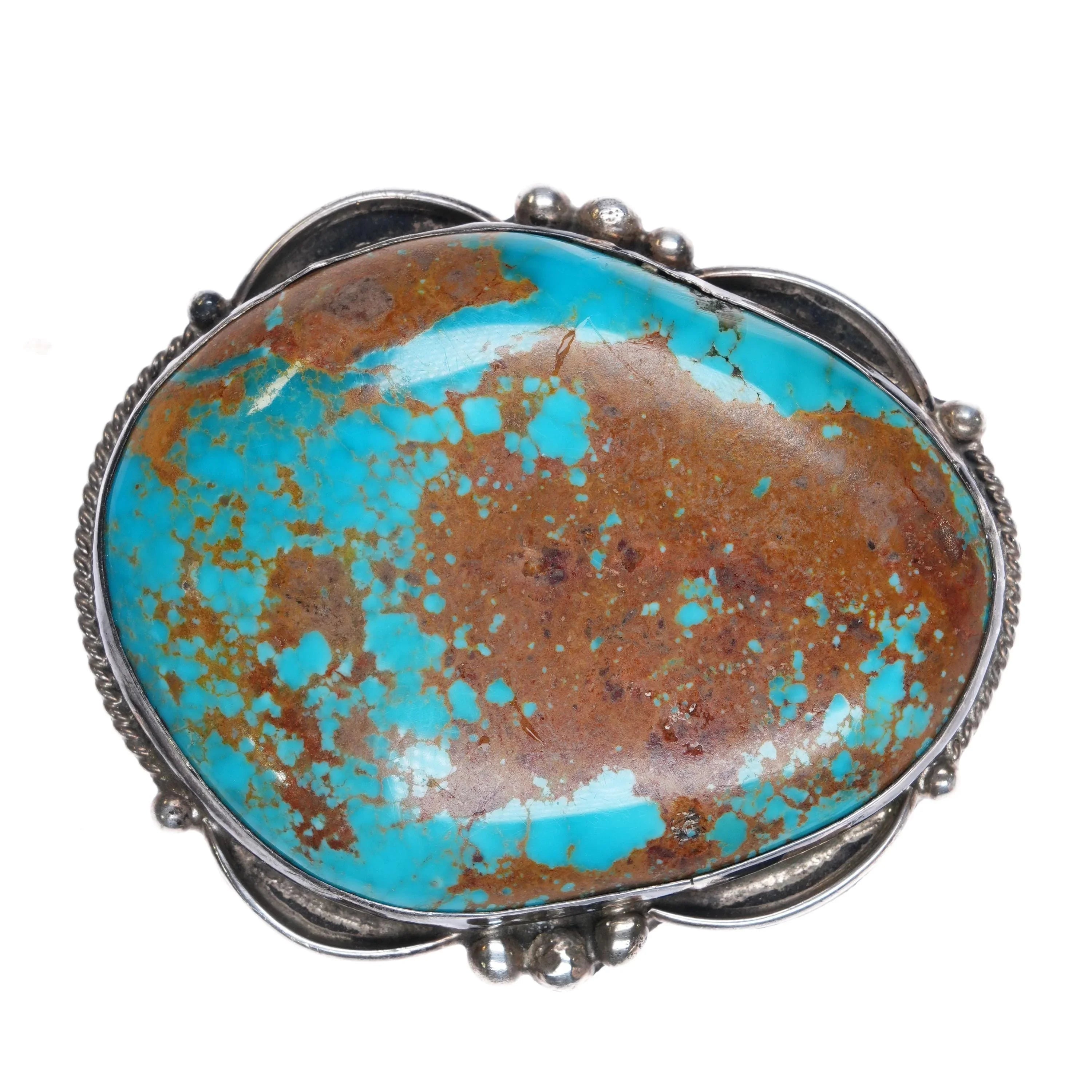 Rosella Paxson-Sandoval Apache nice large turquoise sterling silver belt buckle. Solid sterling silver (tested) buckle with weight and measurements in pictures.. Fits up to a 1.5" belt. No issues, good condition with no significant wear. Circa 1980‘s-90‘s, very attractive turquoise stone that appears to be Ceremonial Kingman turquoise.