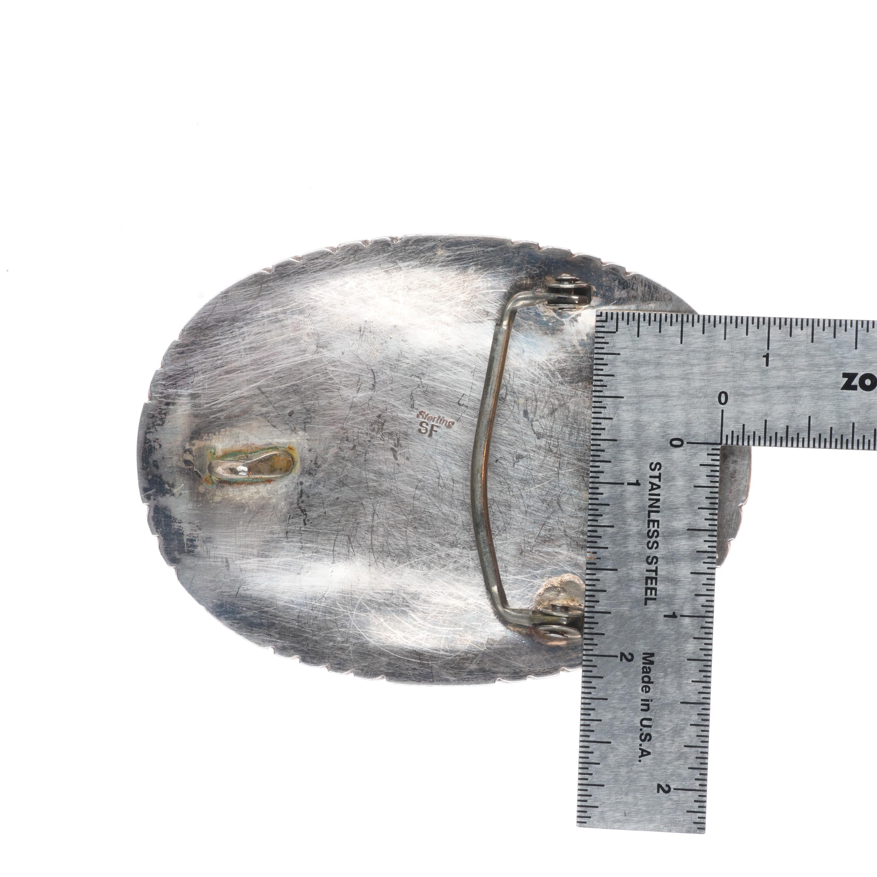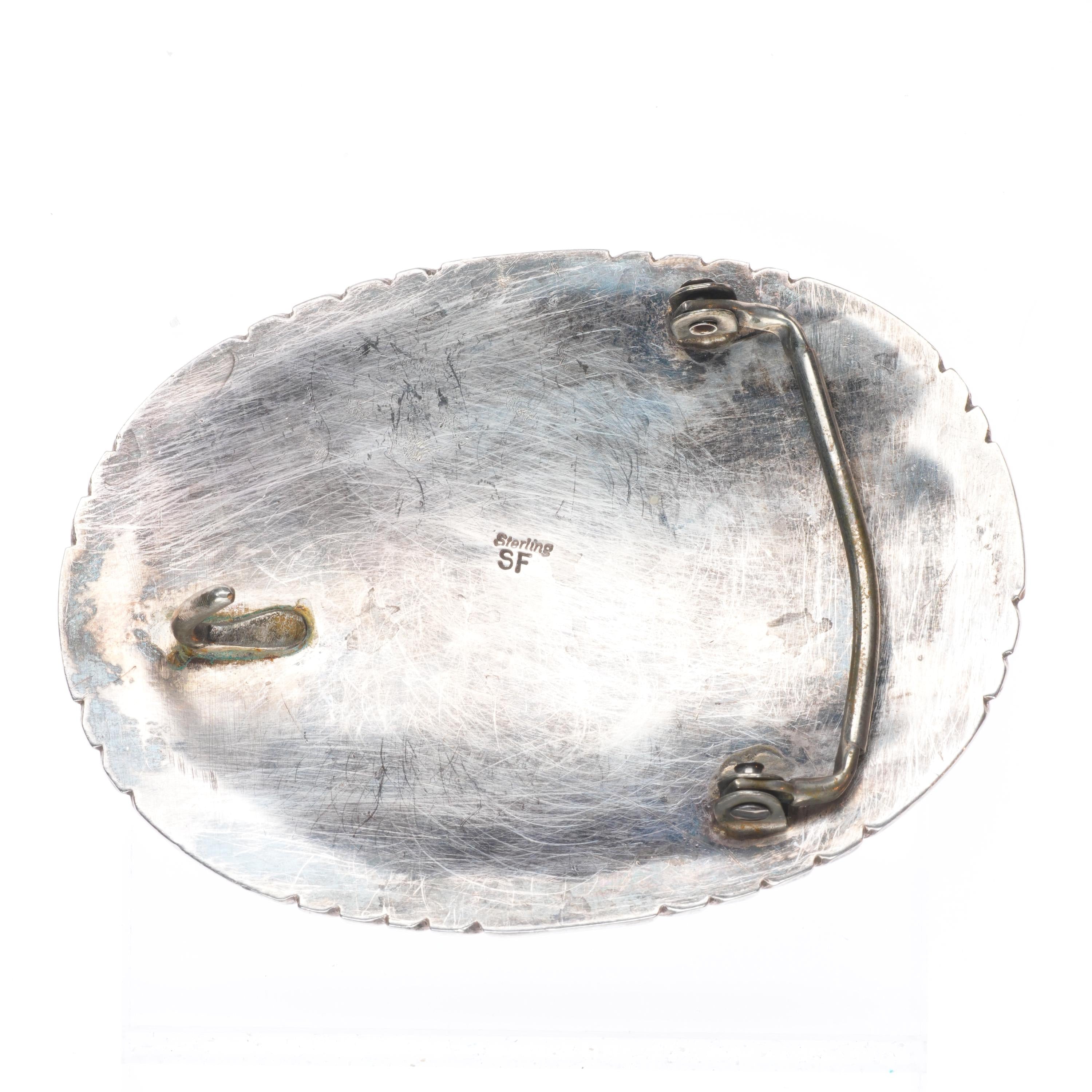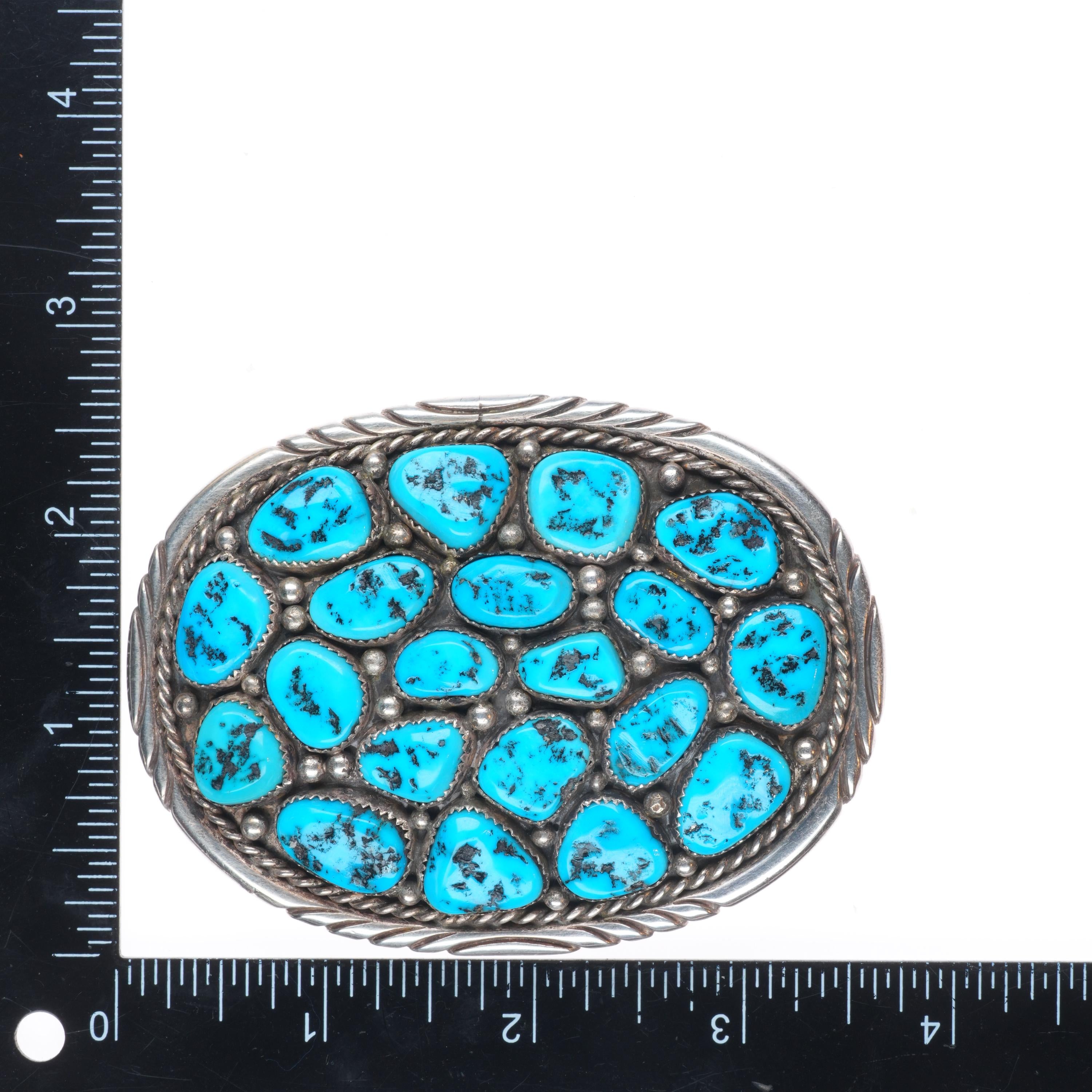 SF Navajo Vintage sterling silver Kingman turquoise cluster belt buckle