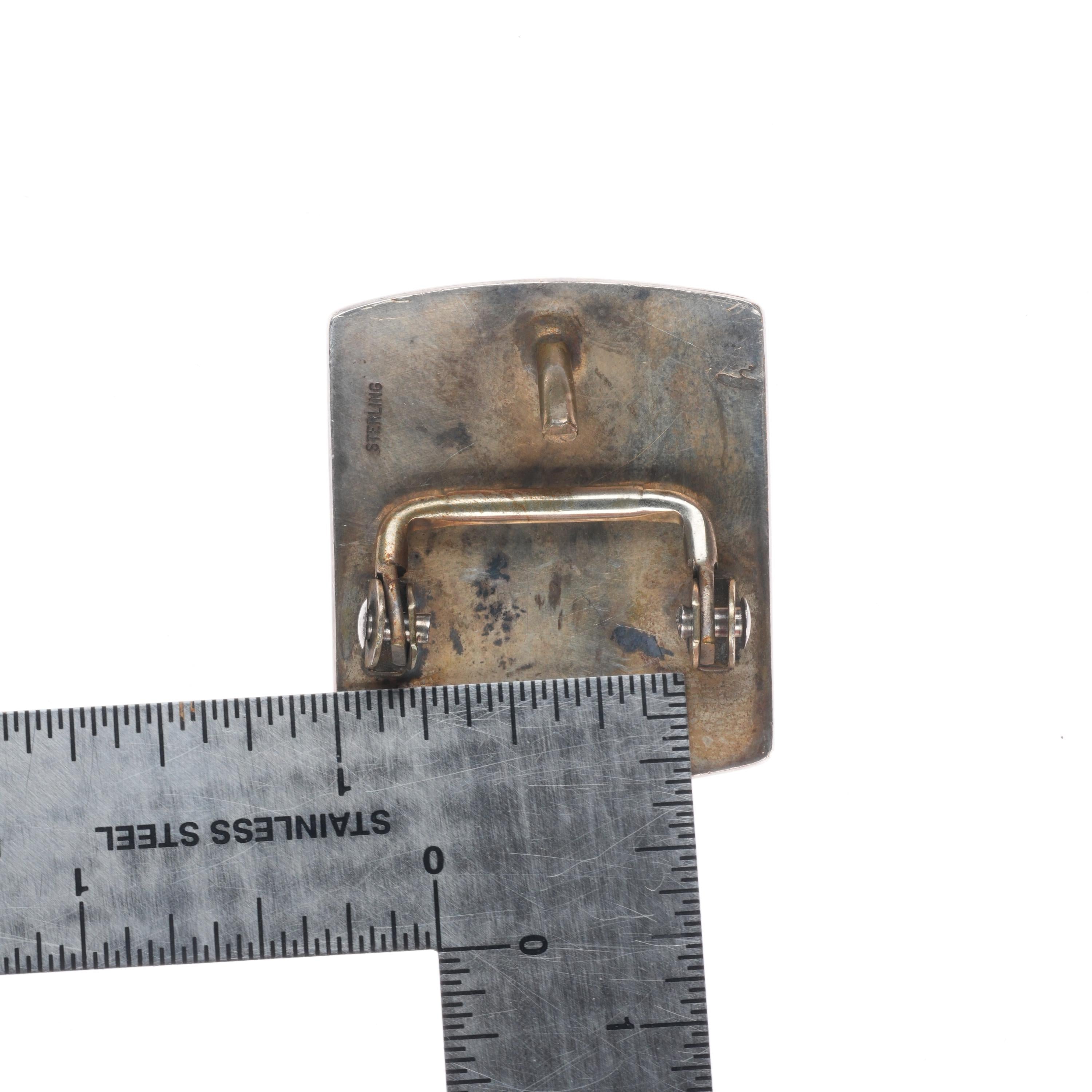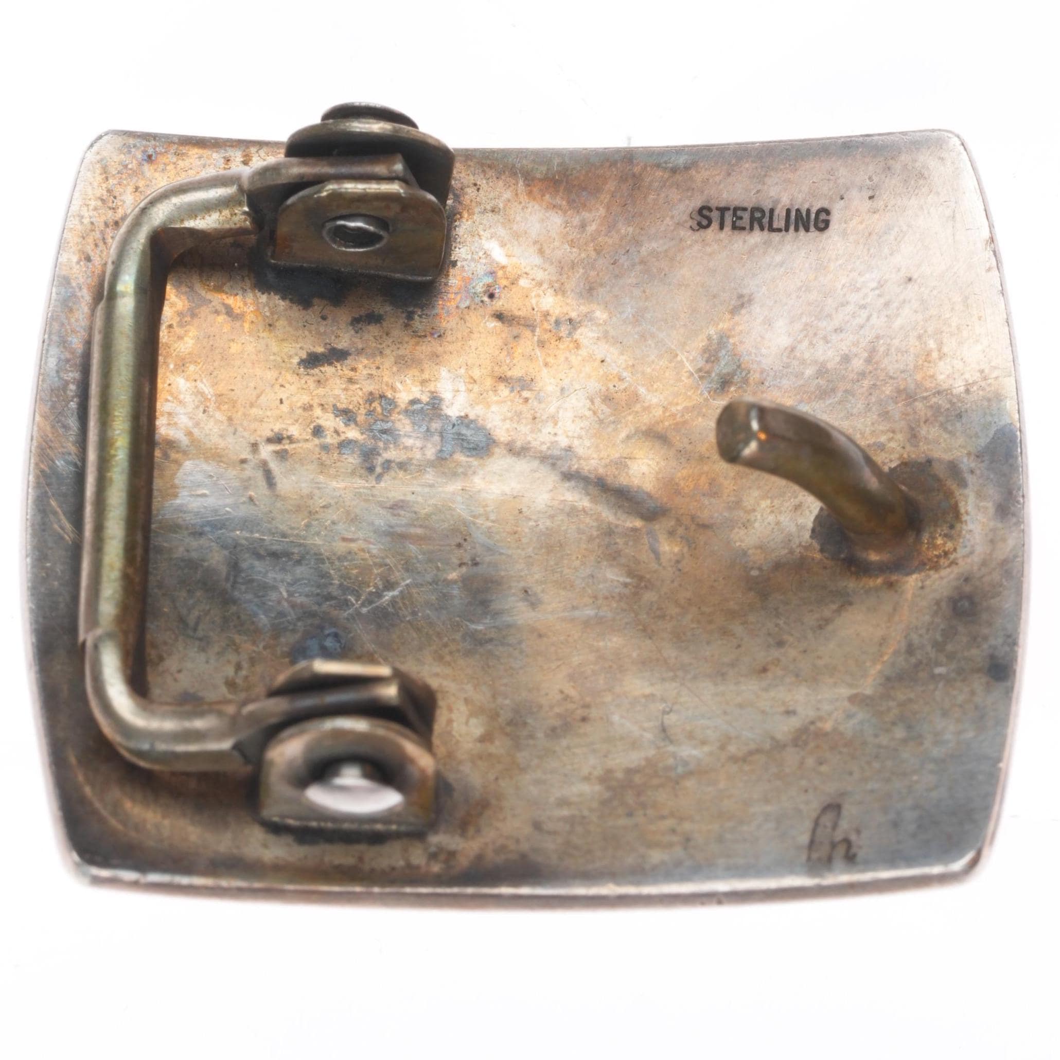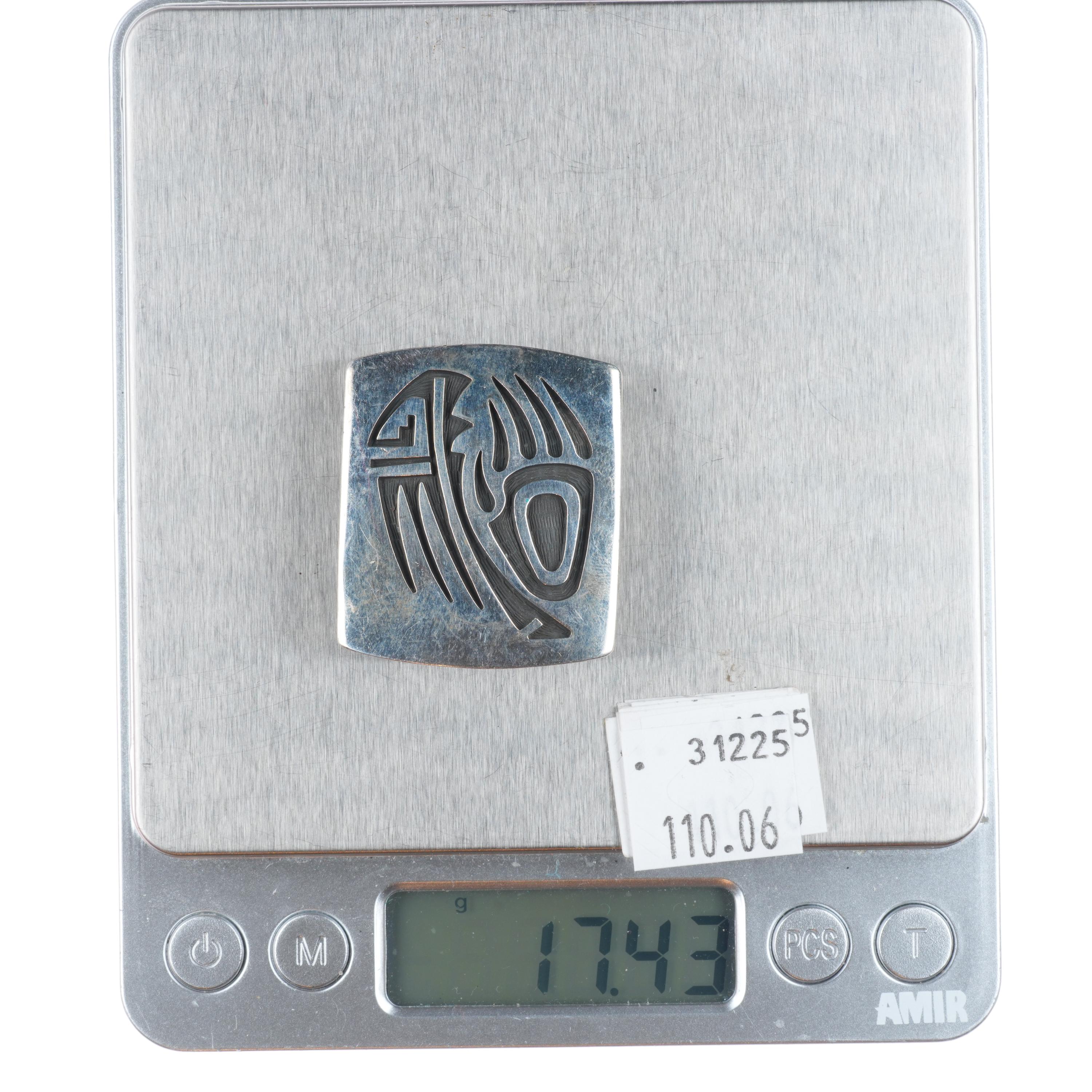 small vintage Hopi overlay bear paw sterling silver belt buckle. Tested and guaranteed solid sterling silver. Weight and measurements in pictures, circa fourth quarter of the 20th century. Fits a .75" belt. Unidentified picto-hallmark at base of picture of back of buckle.