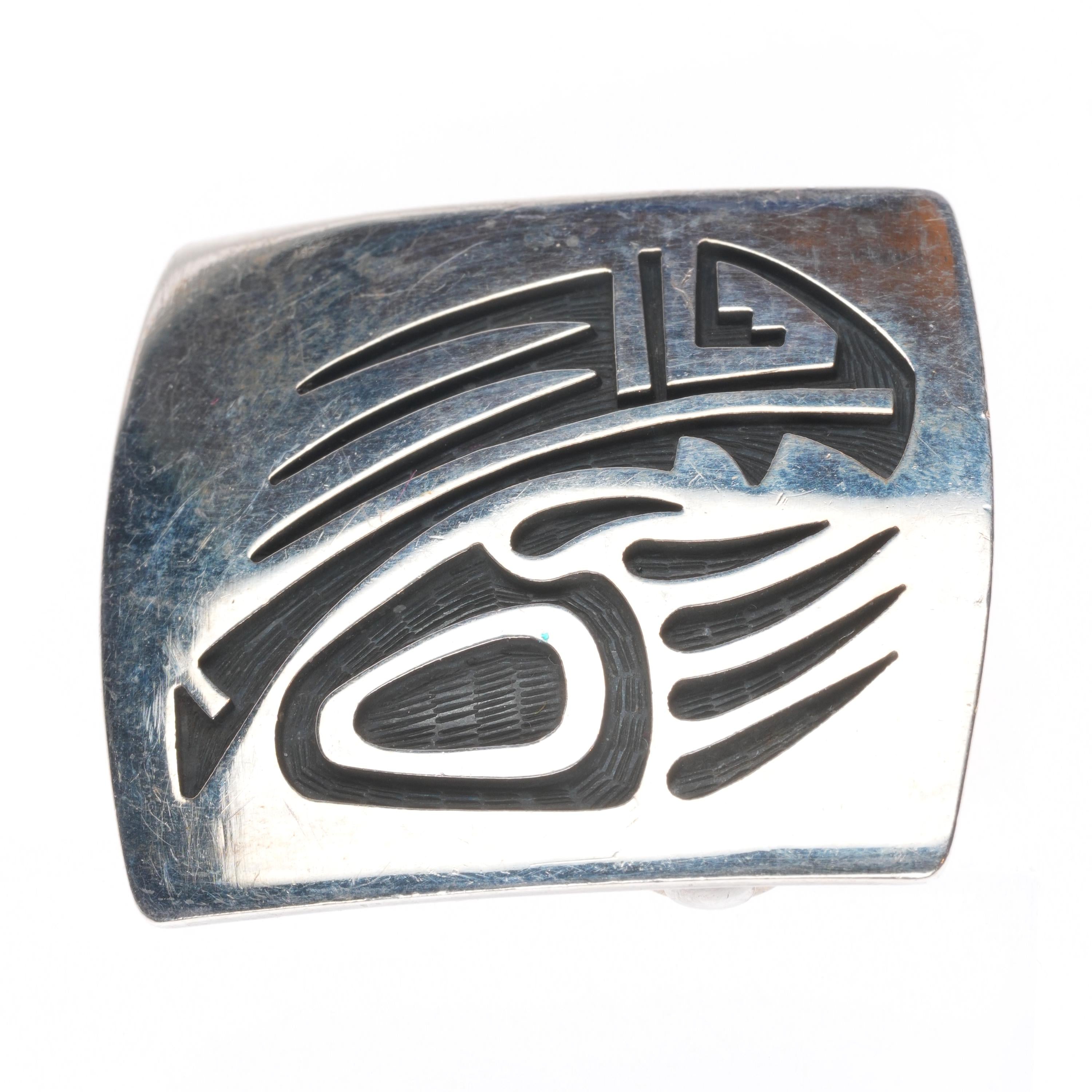 small vintage Hopi overlay bear paw sterling silver belt buckle