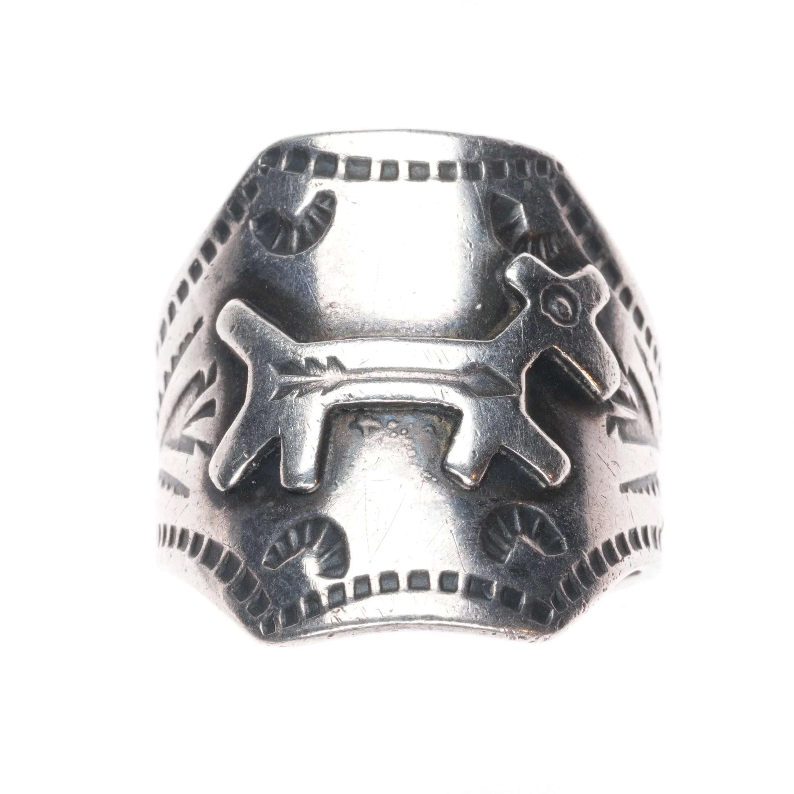 sz10 c1940's Navajo hand stamped Fred Harvey Dog ring sterling silver size 10