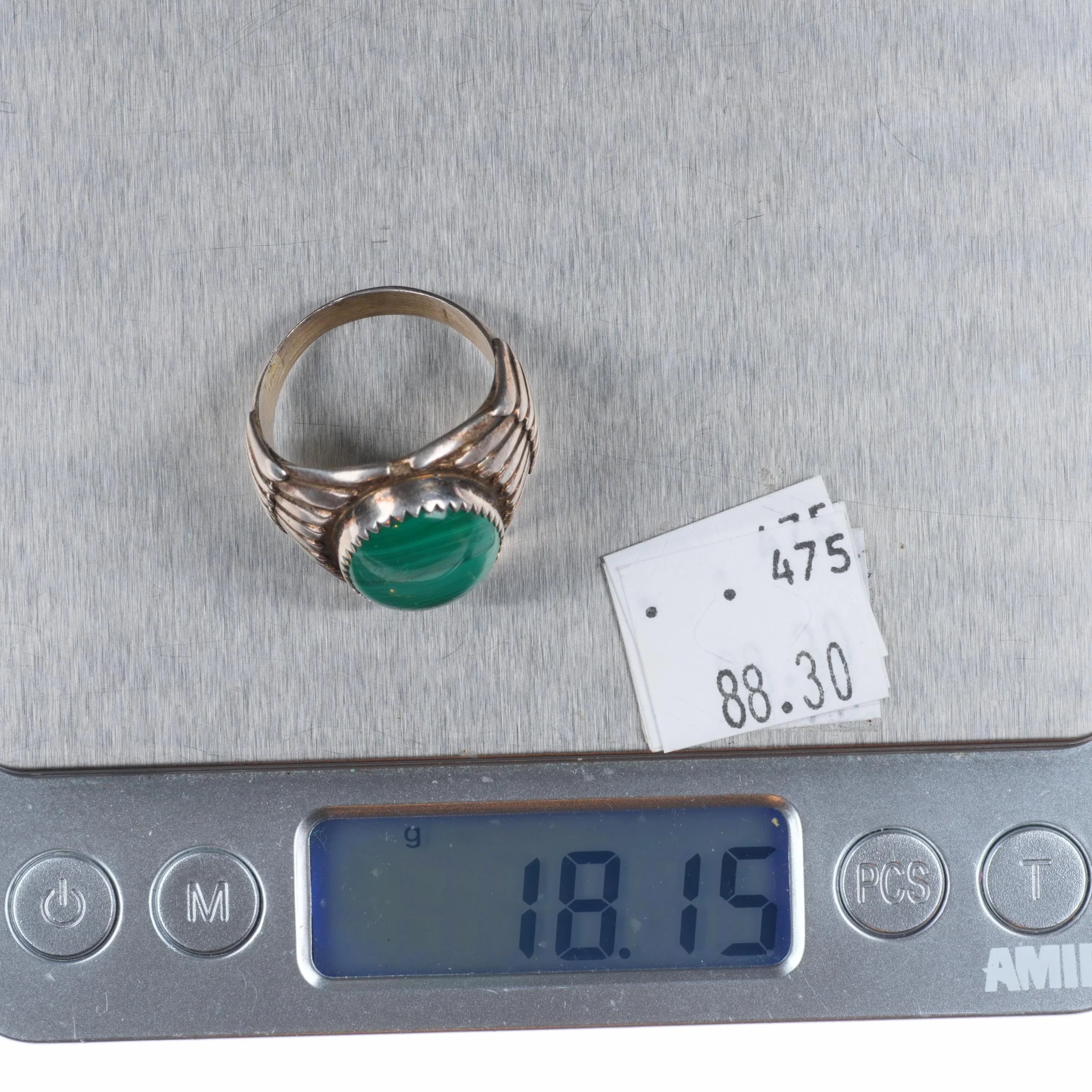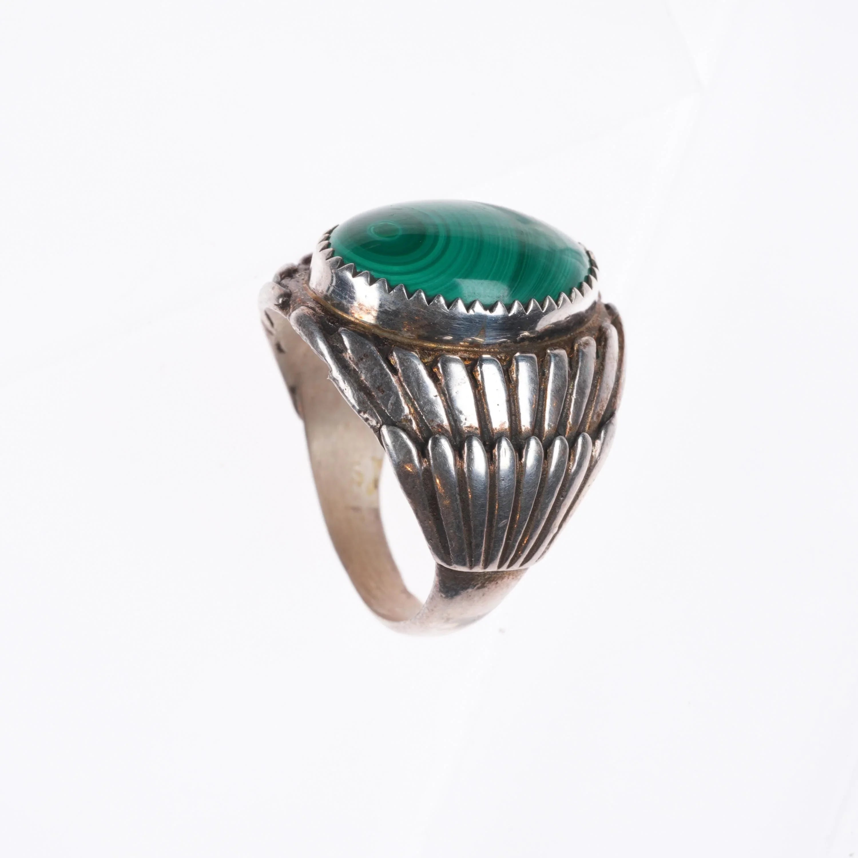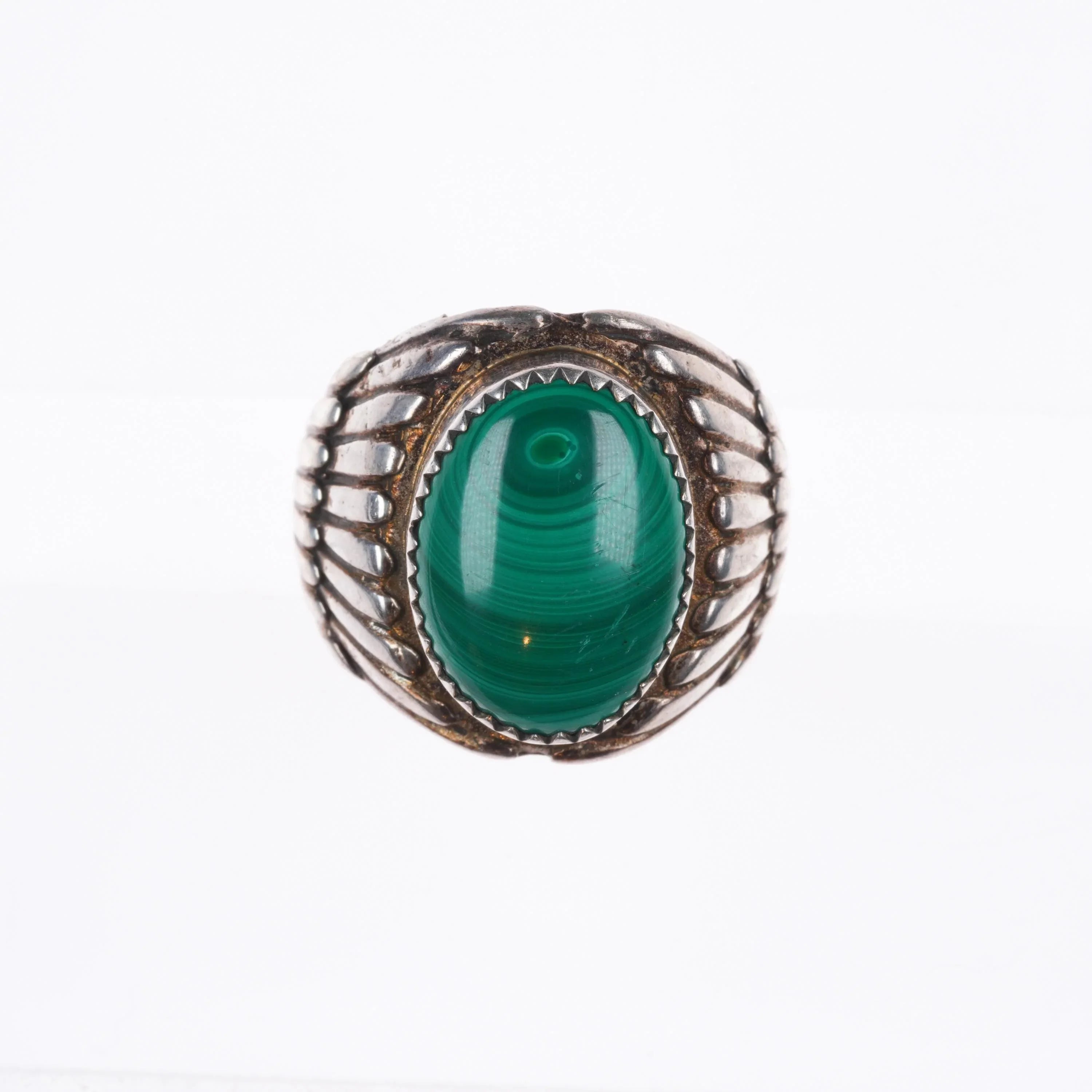 sz10 Vintage Navajo sterling silver malachite men's ring