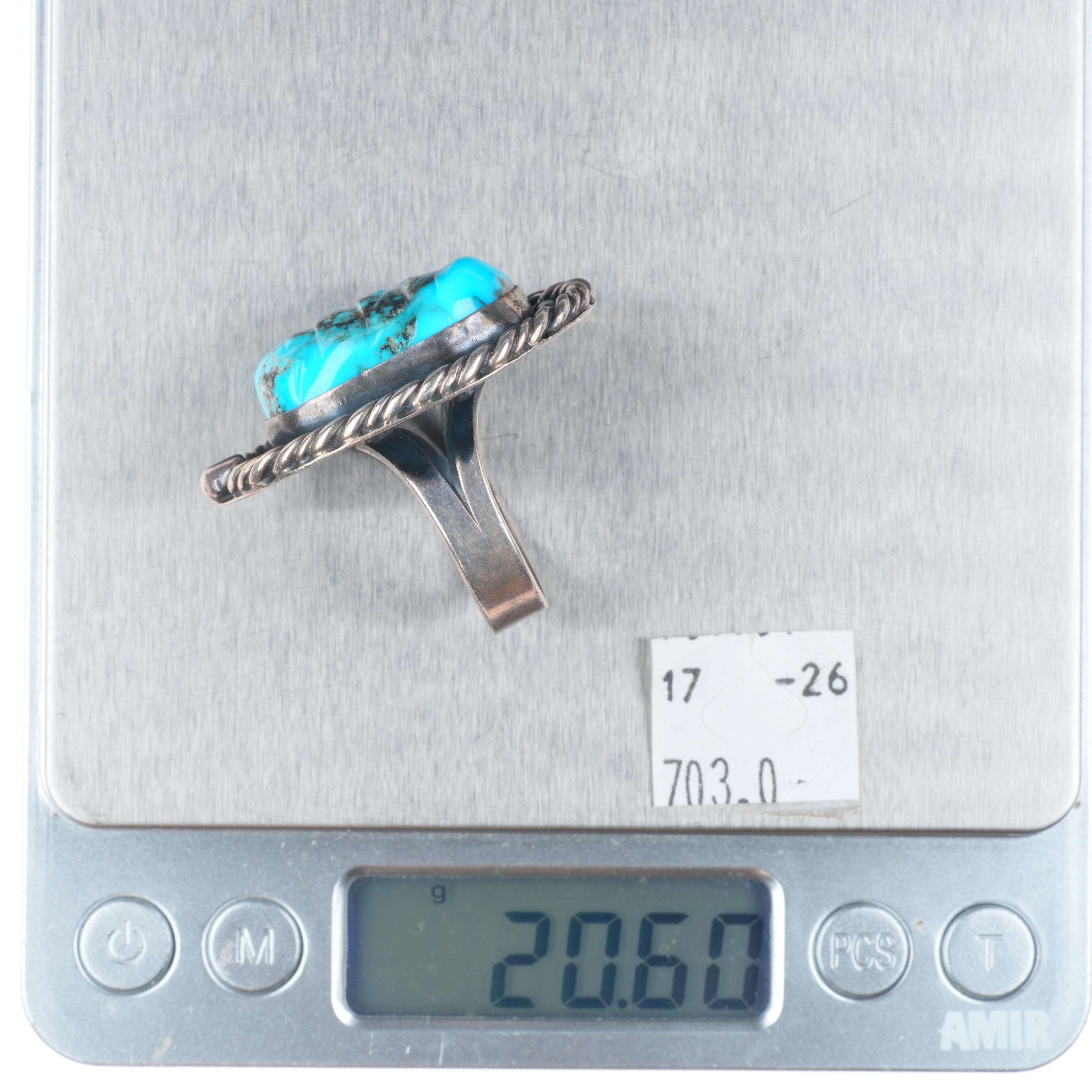 sz11 vintage Navajo carved turquoise sterling silver ring with nice matrix. Tested and guaranteed solid sterling silver, circa third quarter... 閱讀更多