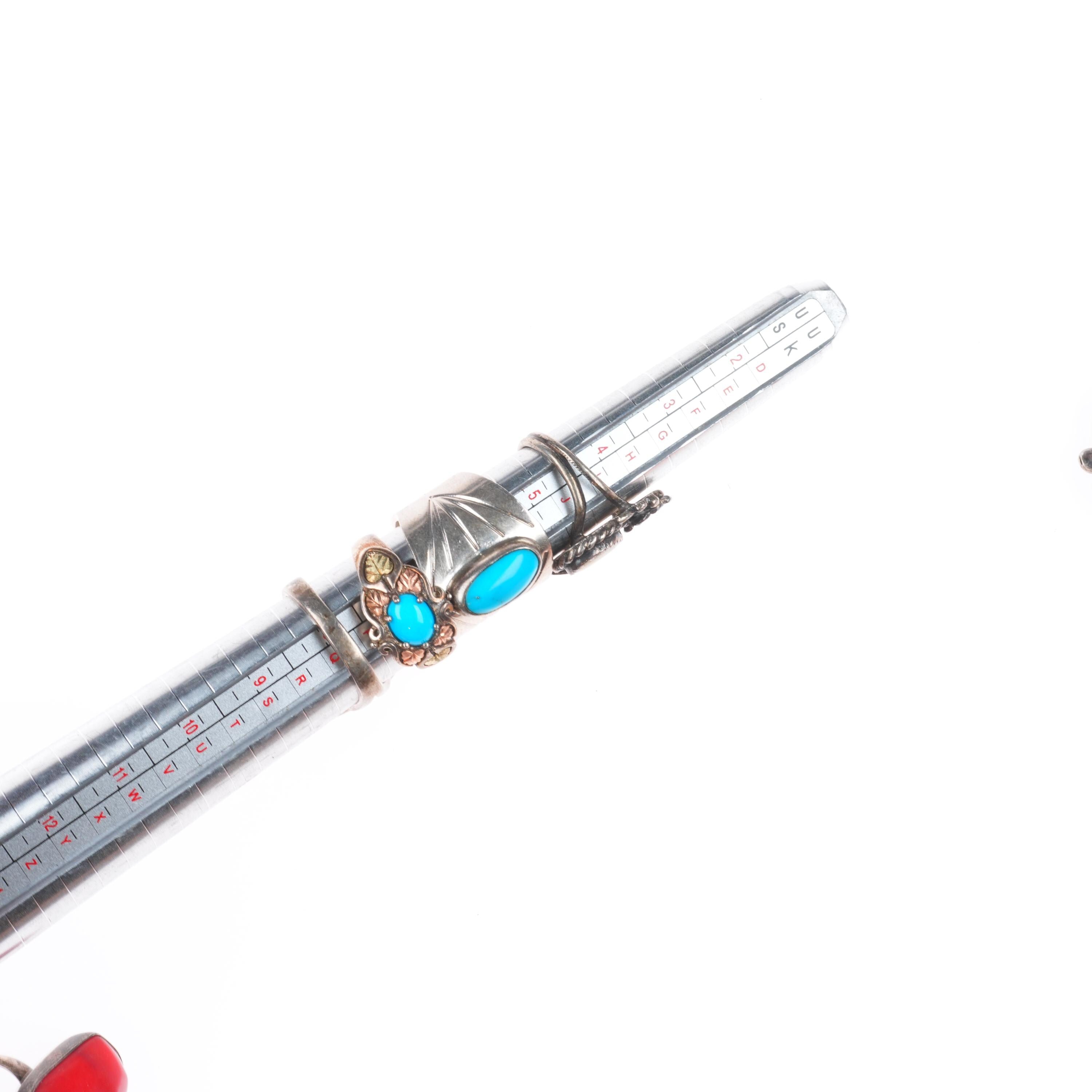 sz4-8 vintage Navajo/Zuni/southwestern style sterling silver turquoise rings lot. Nice ring lot from the last half of the 20th century.