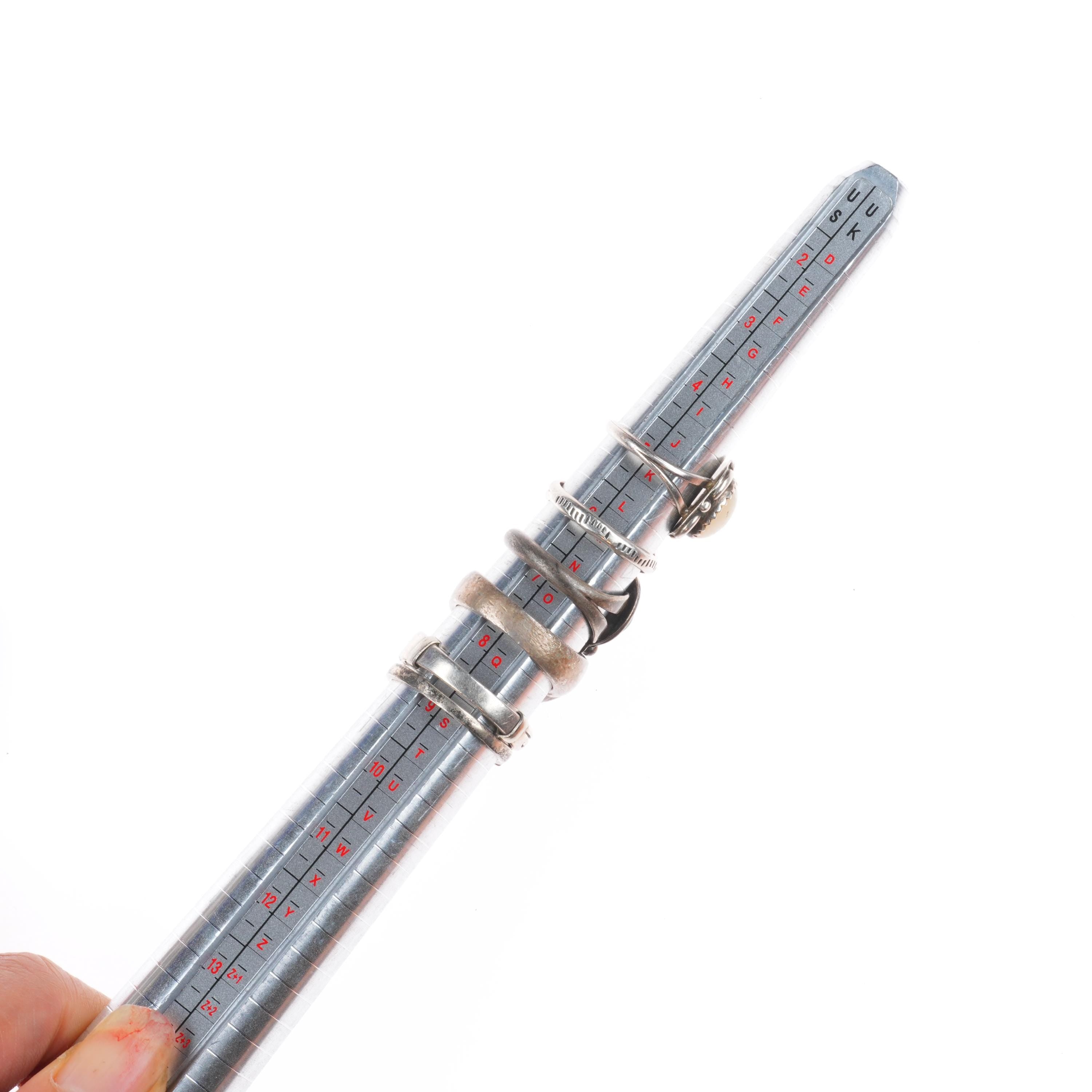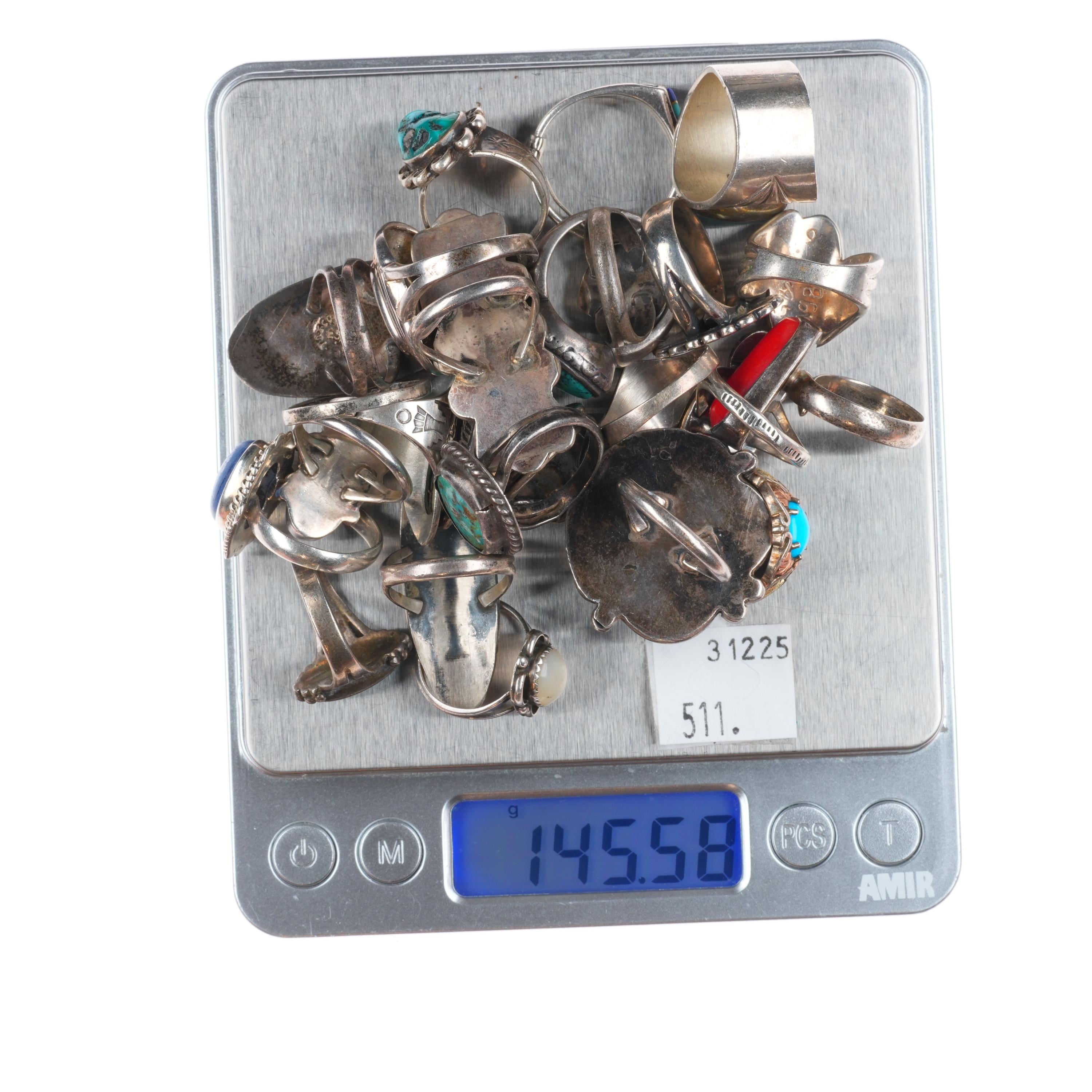 Selling the exact rings shown with weight and measurements in pictures, shown on sizers. Age appropriate wear. Some marked, some not marked. We are making lots of these lots with my wife photographing and me listing. We are listing in lots due to time limitations, so we are not heavily scrutinizing each ring. Most are going to be Native American made, but there will likely be some southwestern style rings mixed in each lot. Or one two totally unrelated but still sterling. My wife who is making the lots doesn‘t know the difference as she‘s Vietnamese. Please look at the pictures and make up your own mind for condition, etc. There may be dents, cracked stones, etc. I tried to weed out any junk before I gave them to her, but we are in a hurry. Time is the number one consideration when making these lots so there will be some surprises, hopefully more good than bad :)