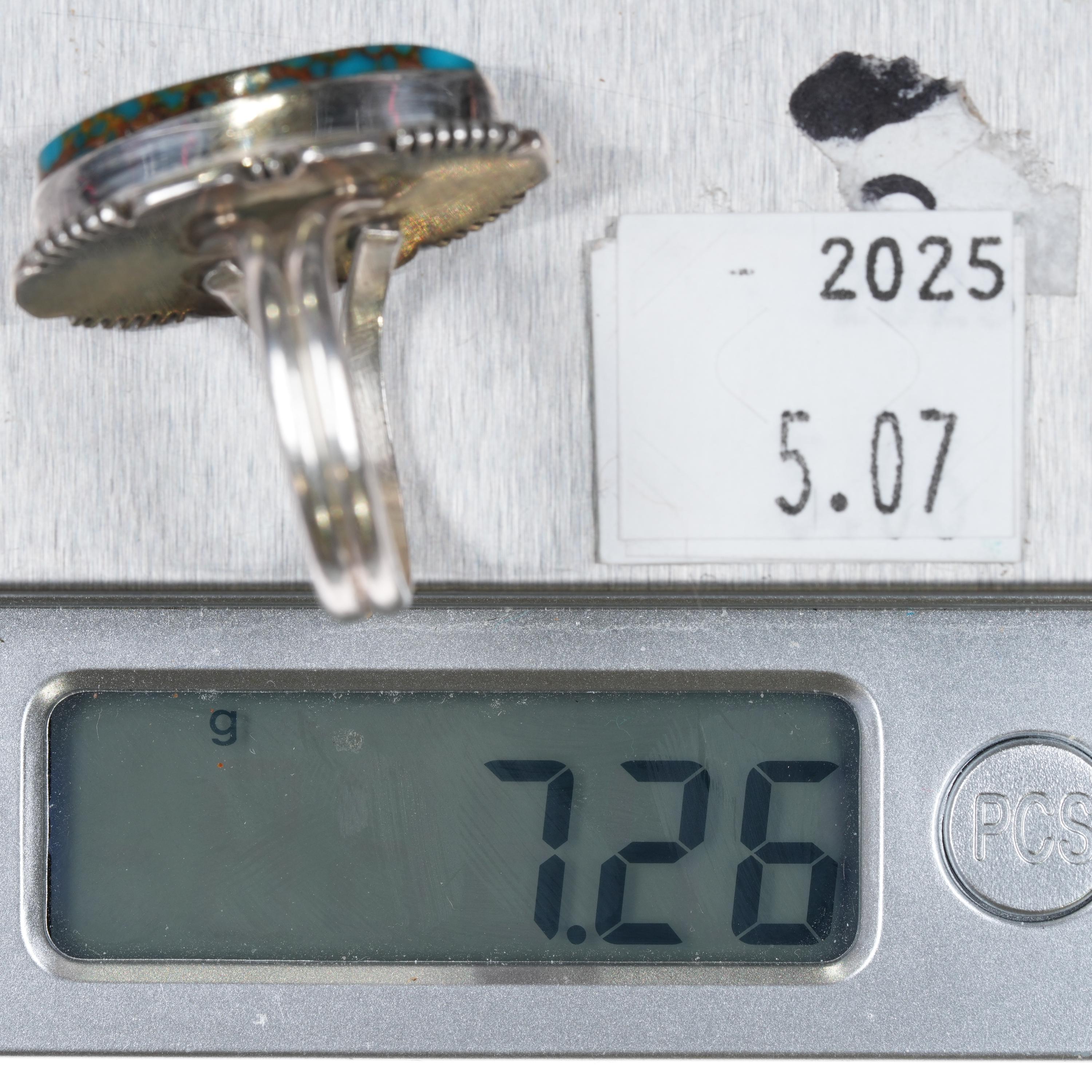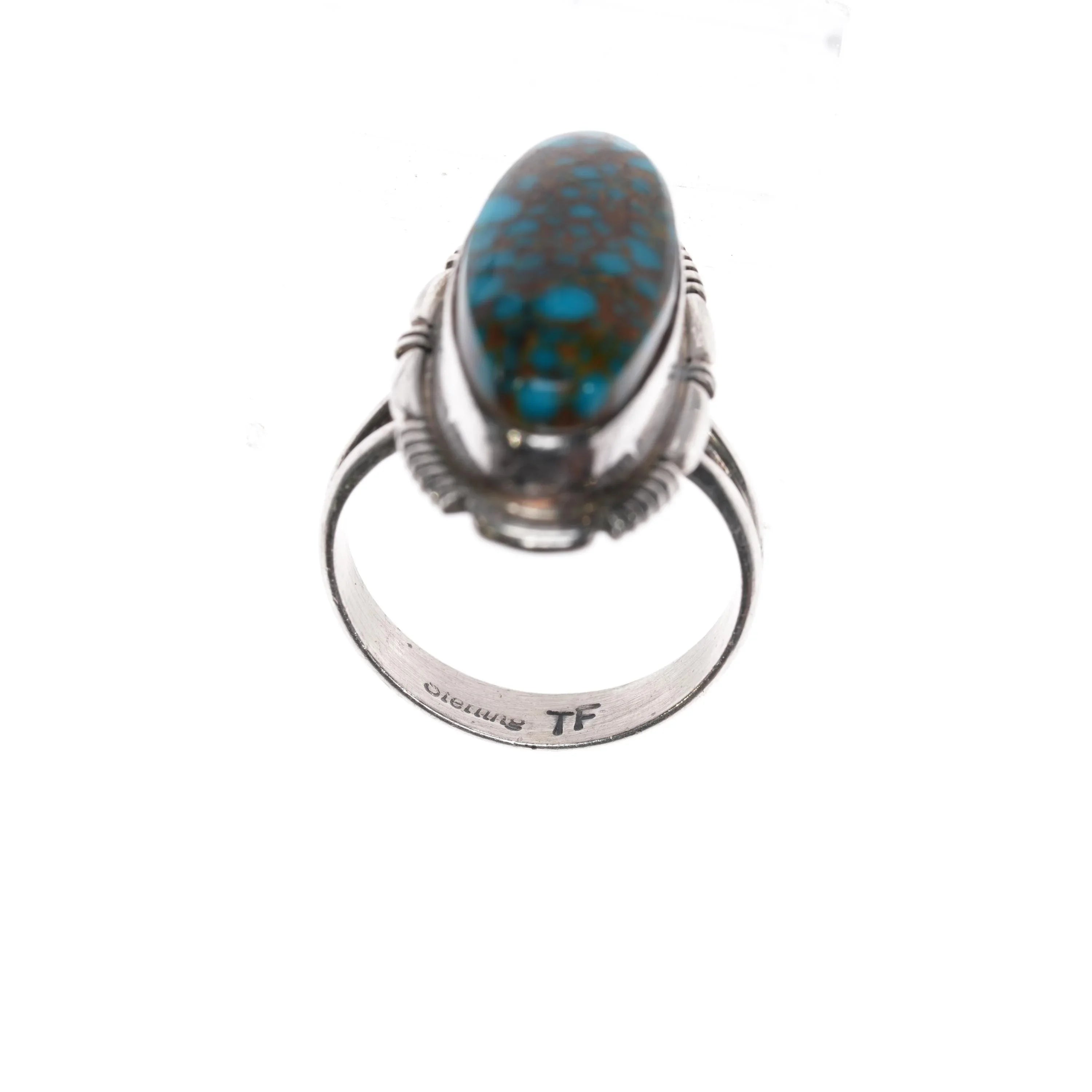 sz8.5 TF Navajo sterling silver spiderweb Candelaria Turquoise ring