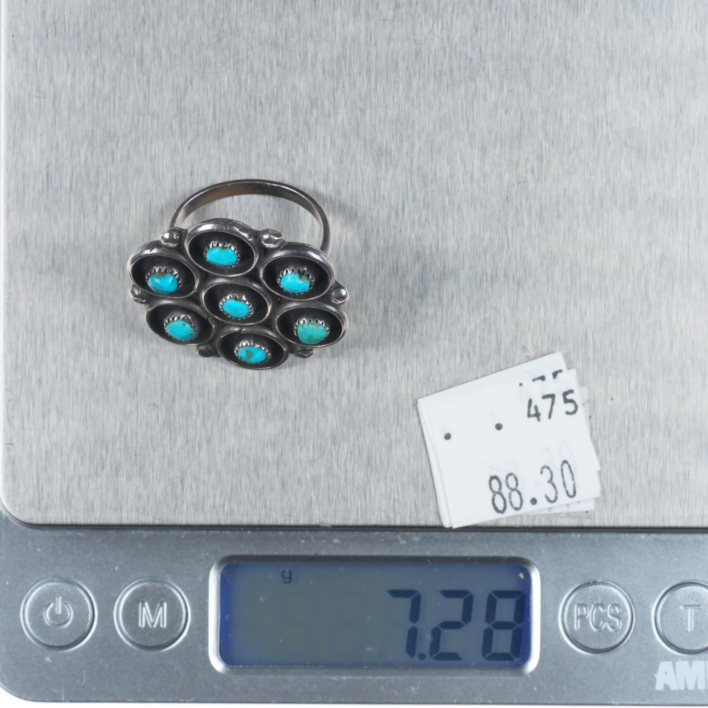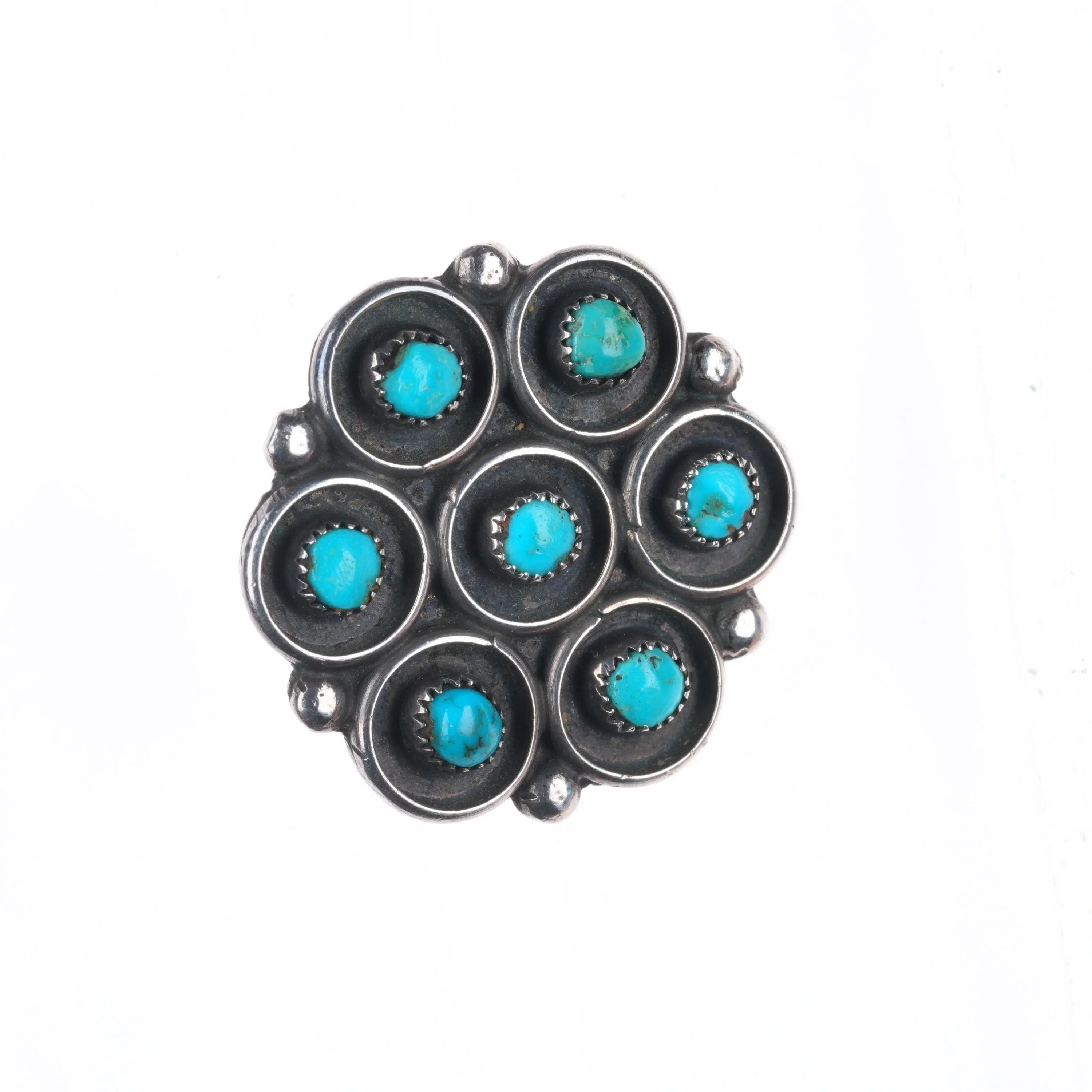 sz8 Vintage Zuni sterling silver 7 stone snake eye turquoise cluster ring