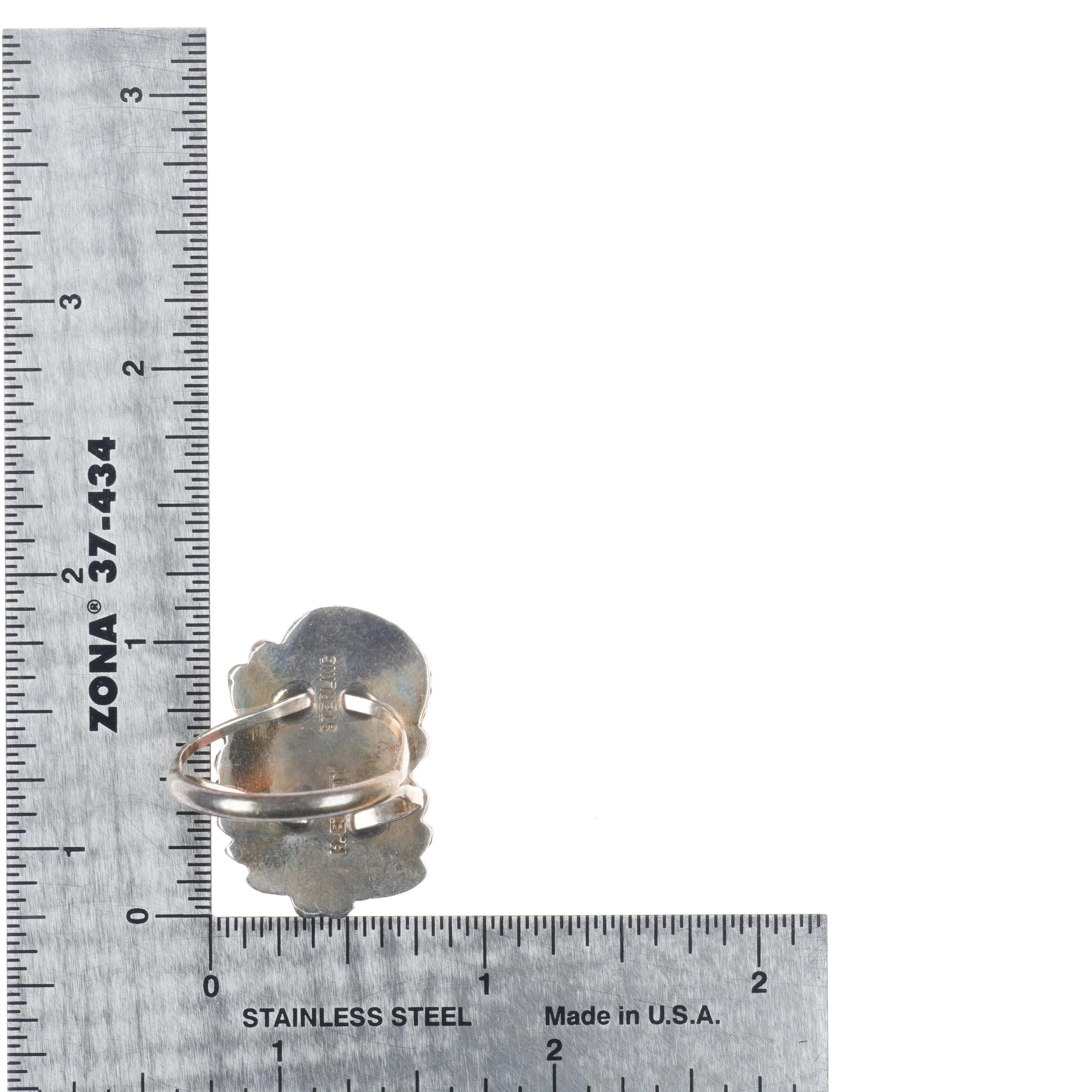 sz9 M Etsitty Navajo sterling silver white buffalo feather design ring